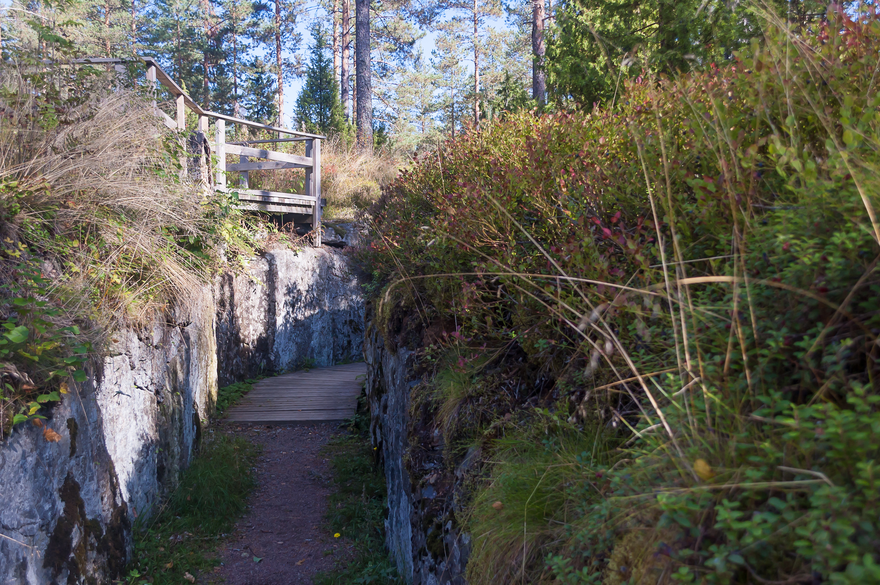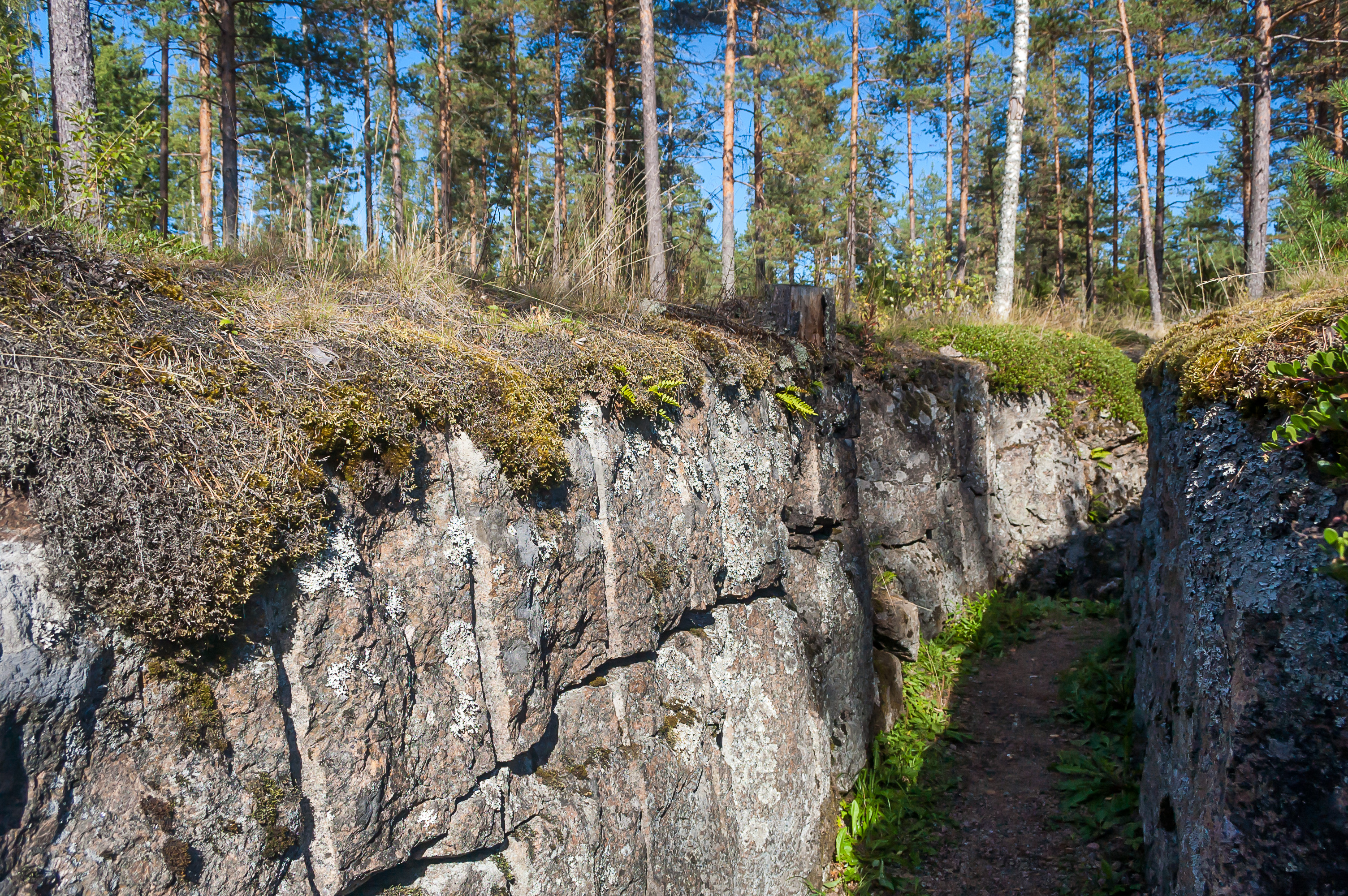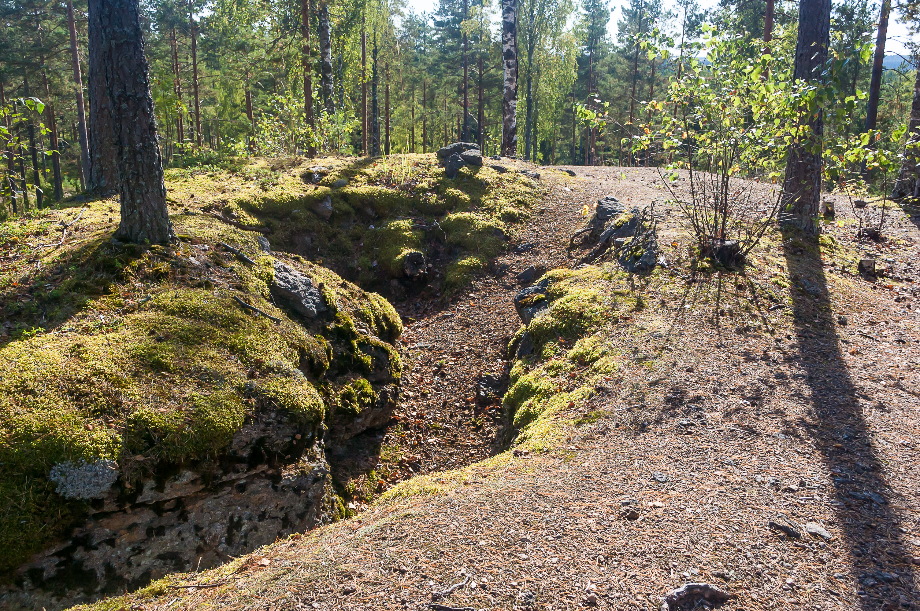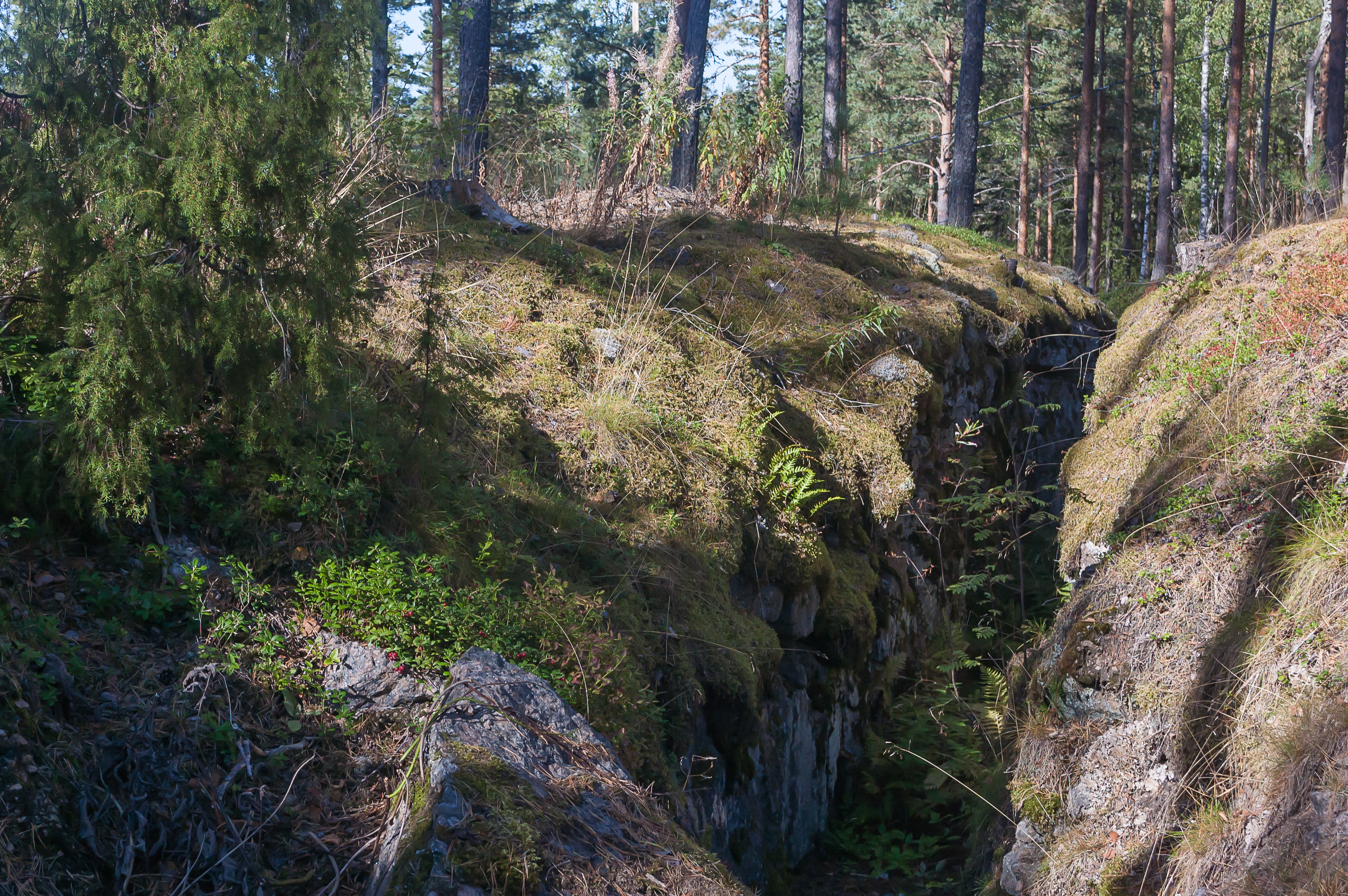 5. Траншеи в участке линии, где организован музей, образуют довольно плотную сеть. Одни из них выкопаны в земле и укреплены досками, другие попросту вырезаны в скалах, которых здесь, как и во всей Южной Финляндии, более чем достаточно.