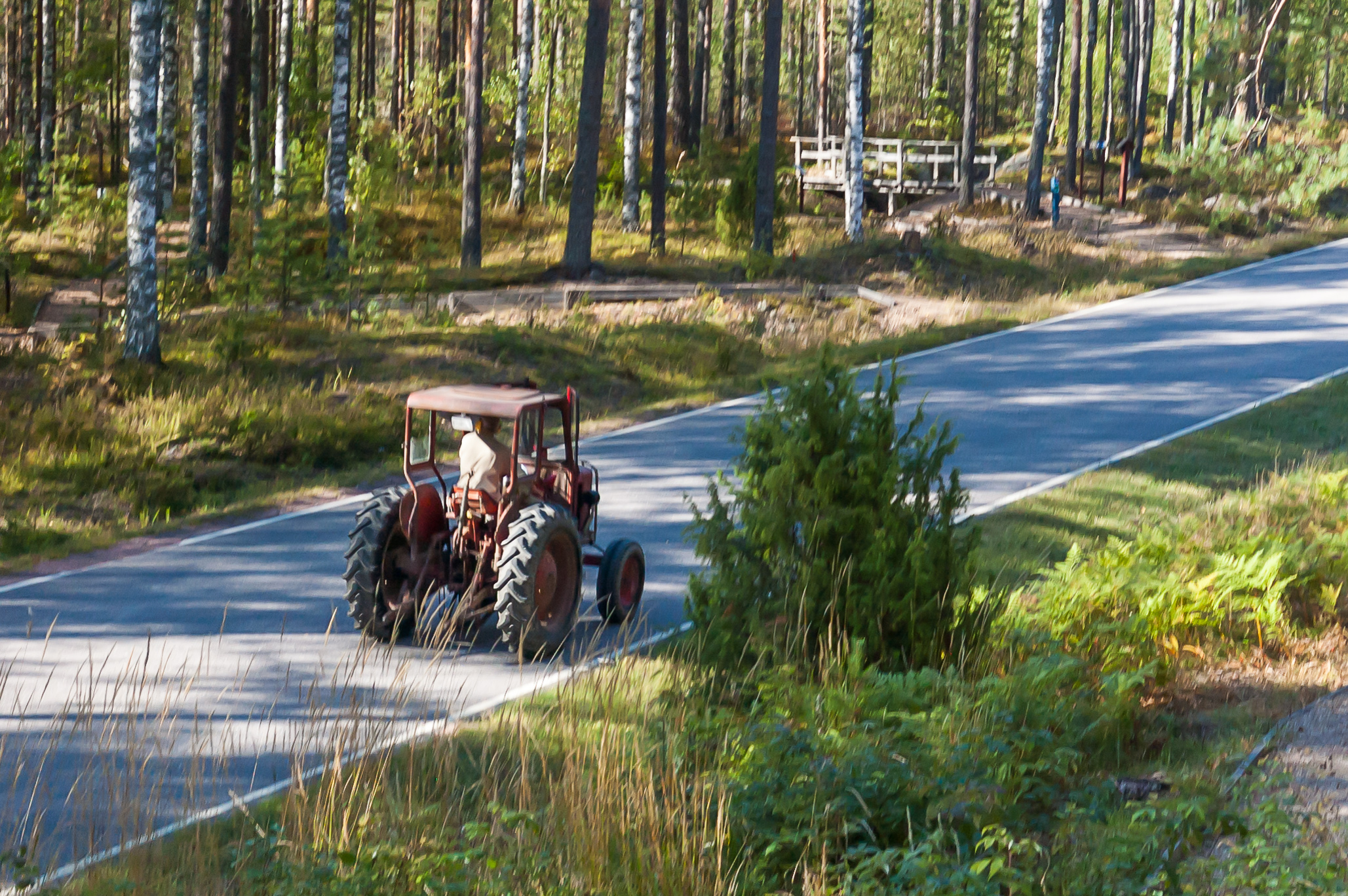 47. А мимо по дороге 384 едет себе какой-то финн на тракторе. Мне нравится, что у них все трактористы в наушниках ездят от шума. Дорога, если вам интересно, идет дальше до Тааветти (Taavetti), маленького городка между Коуволой и Лаппеенрантой.