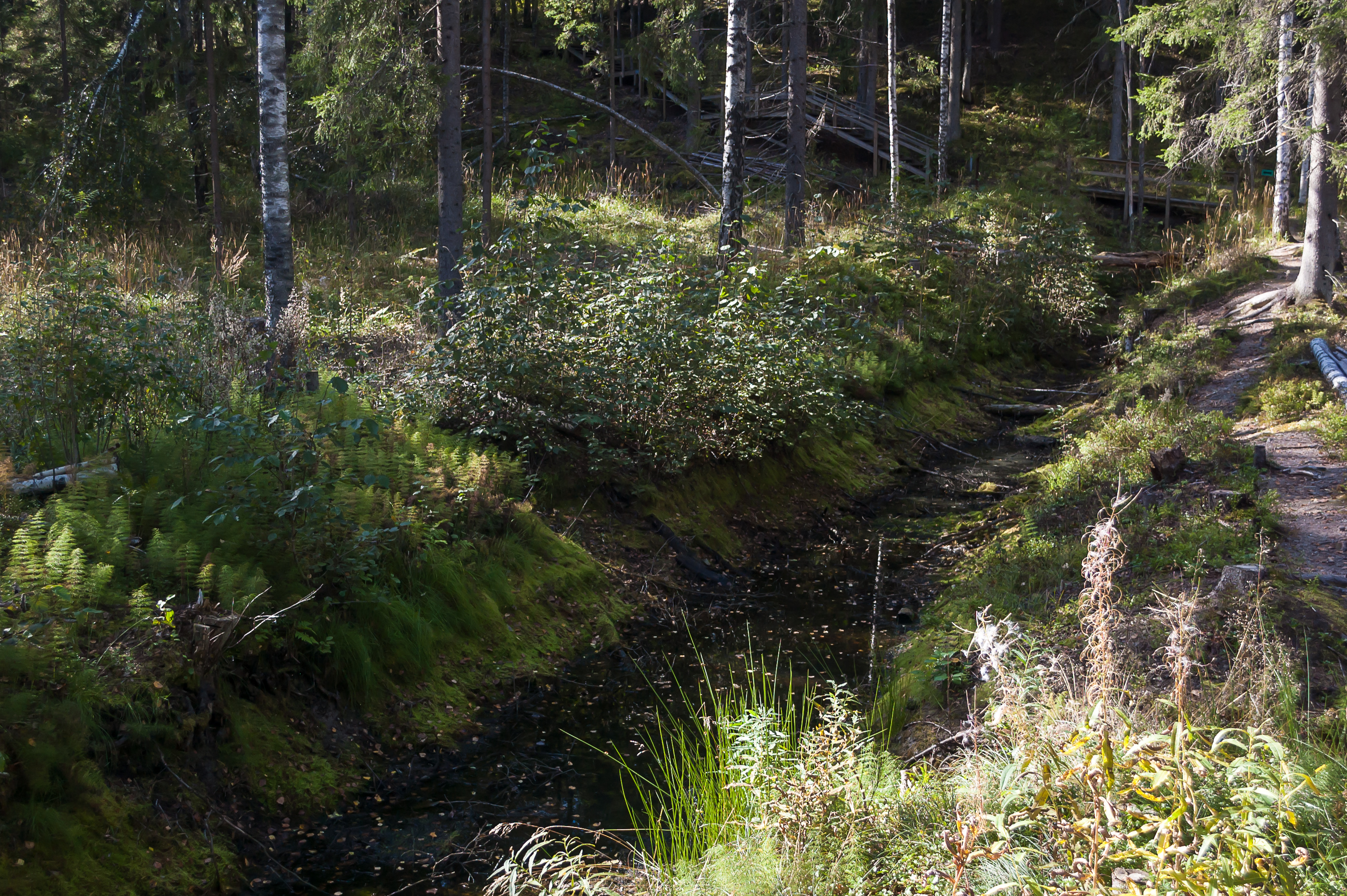6. Весь музей расположен посреди светлого соснового леса, в этот сентябрьский полдень выглядевшего особенно радостно. Спелые ягоды нависают прямо над траншеями.