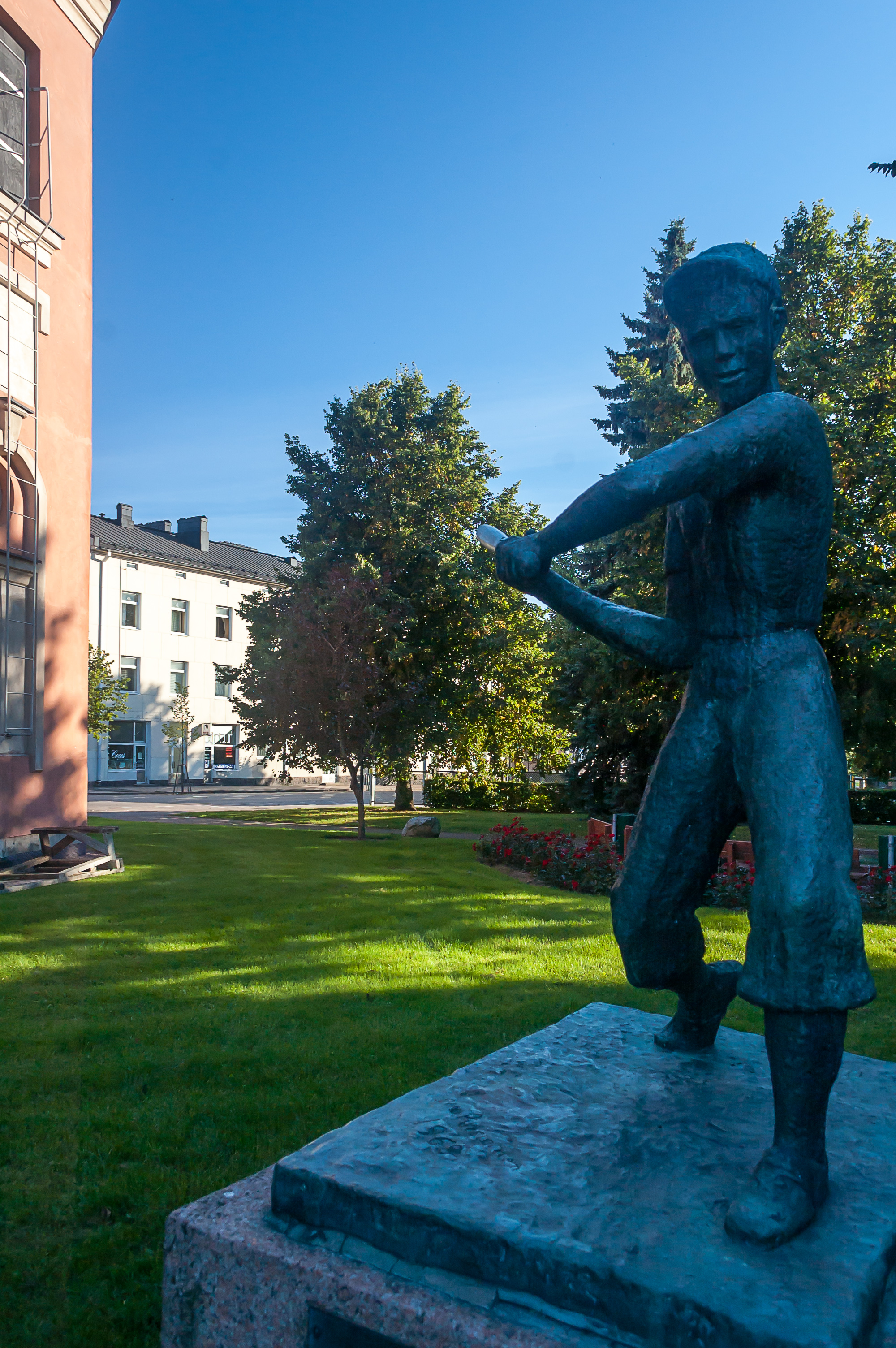 29. Рядом с Флаговой башней — статуя мальчика, как будто бы играющего в бейсбол. На самом деле это не американский бейсбол, а так называемая финская лапта, или песяпалло (pesäpallo), упоротый вид спорта, кроме финнов никому особо не интересный. Лапта-песяпалло и впрямь основана на бейсболе, но по сравнению с бейсболом она упрощена и сделана более динамичной.
