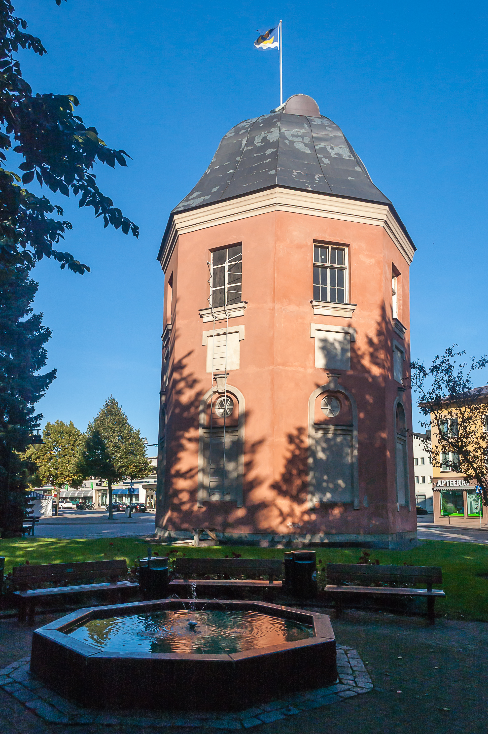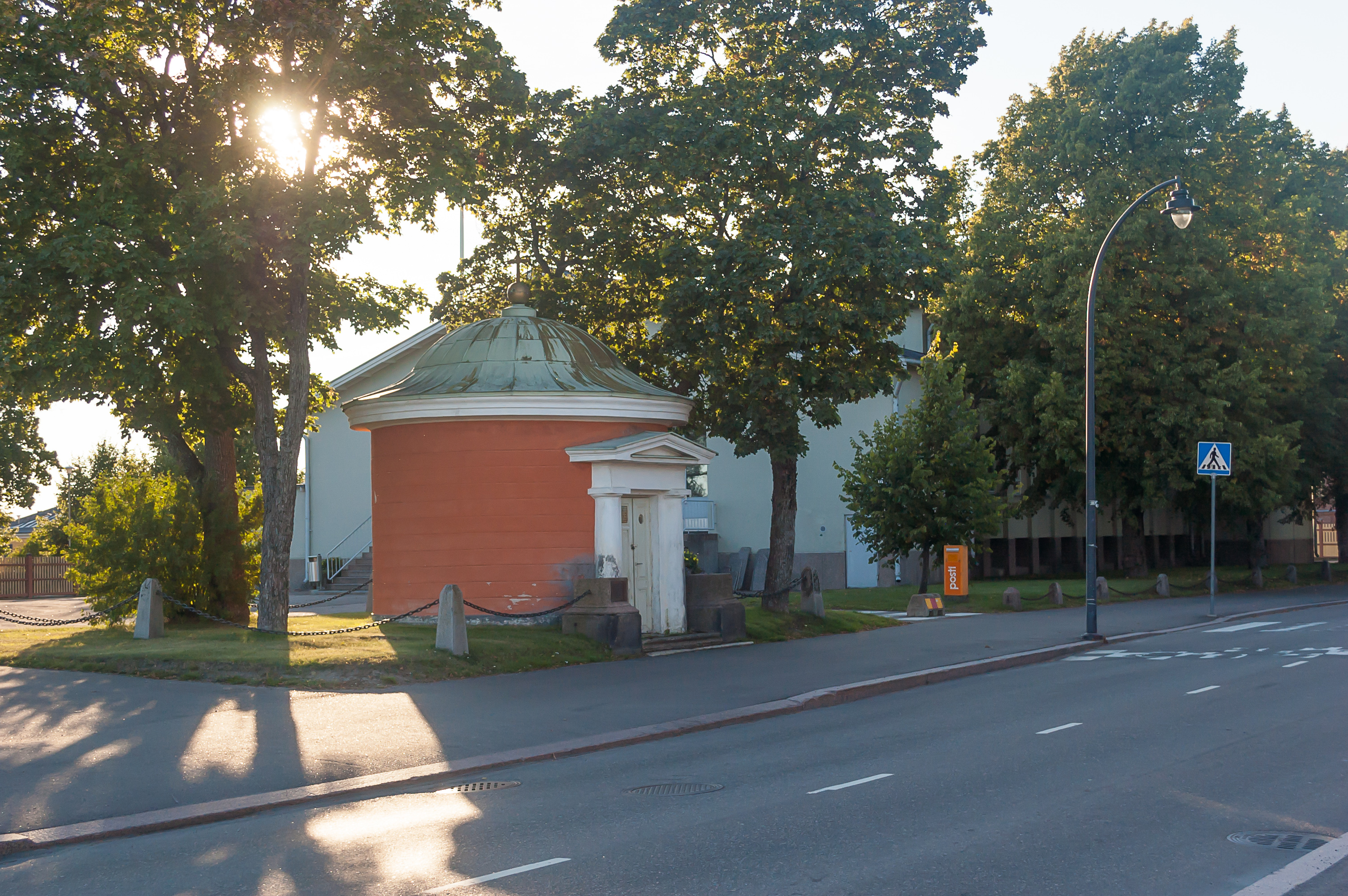 28. Пойдем в другую сторону города. Рядом с рыночной площадью — Флаговая башня (Lipputorni, Липпуторни; 1790), на месте бывшего бастиона Хельсинки. Я почему-то всегда был уверен, что Фридрихсгамский мир 1809 года был подписан именно в этой башне (прочитал что ли где-то когда-то?), и был удивлен и даже немного обижен, не найдя об этом никакой даже самой завалящей таблички. Оказывается, на самом деле договор подписали в доме коменданта, позже снесенном и замененном церковью Св. Иоанна. И там вполне себе и памятник есть, который я сам не заметил.