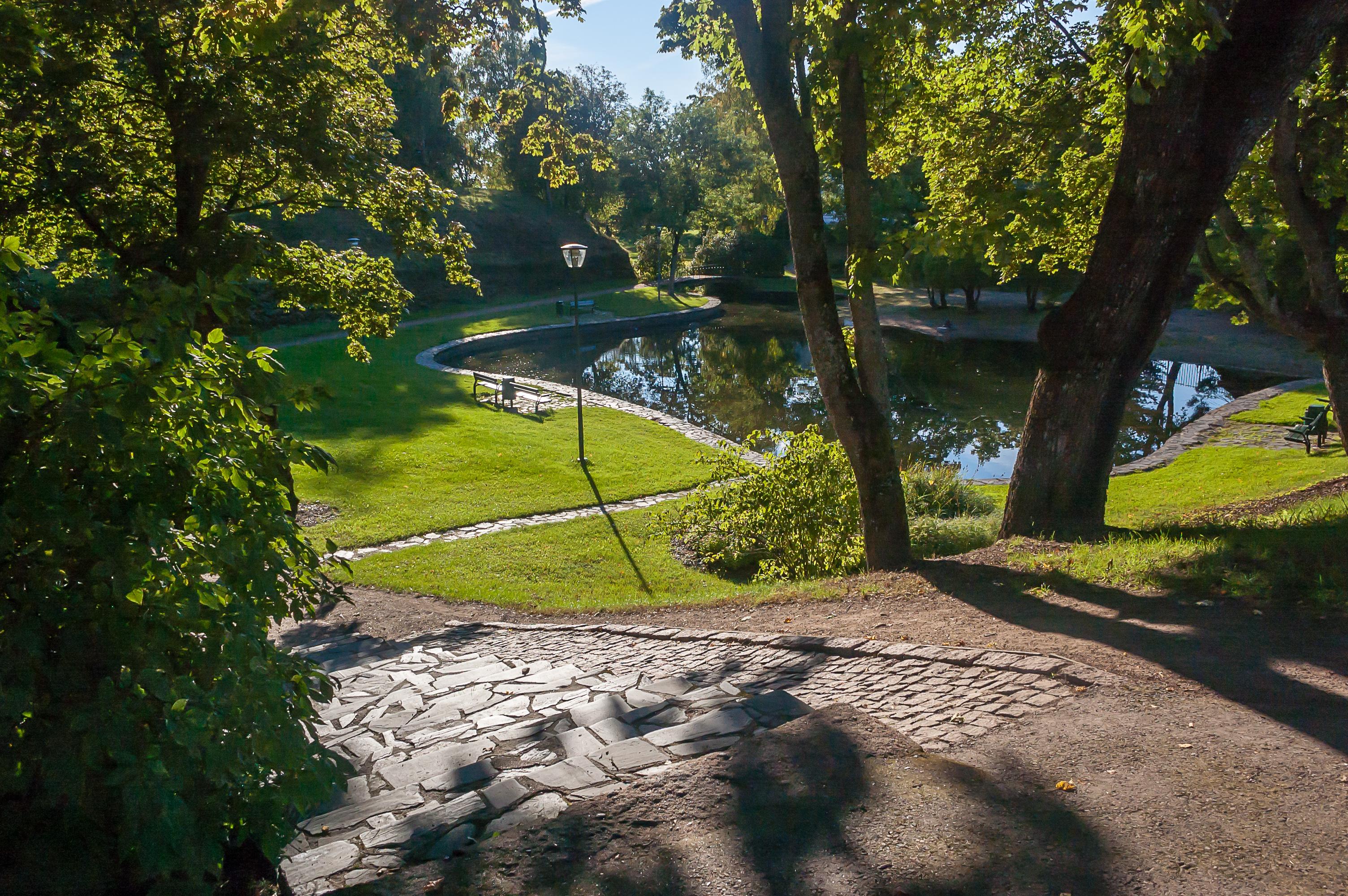 19. В парке устроен приятный маленький прудик. На заднем плане виден вал бастиона.