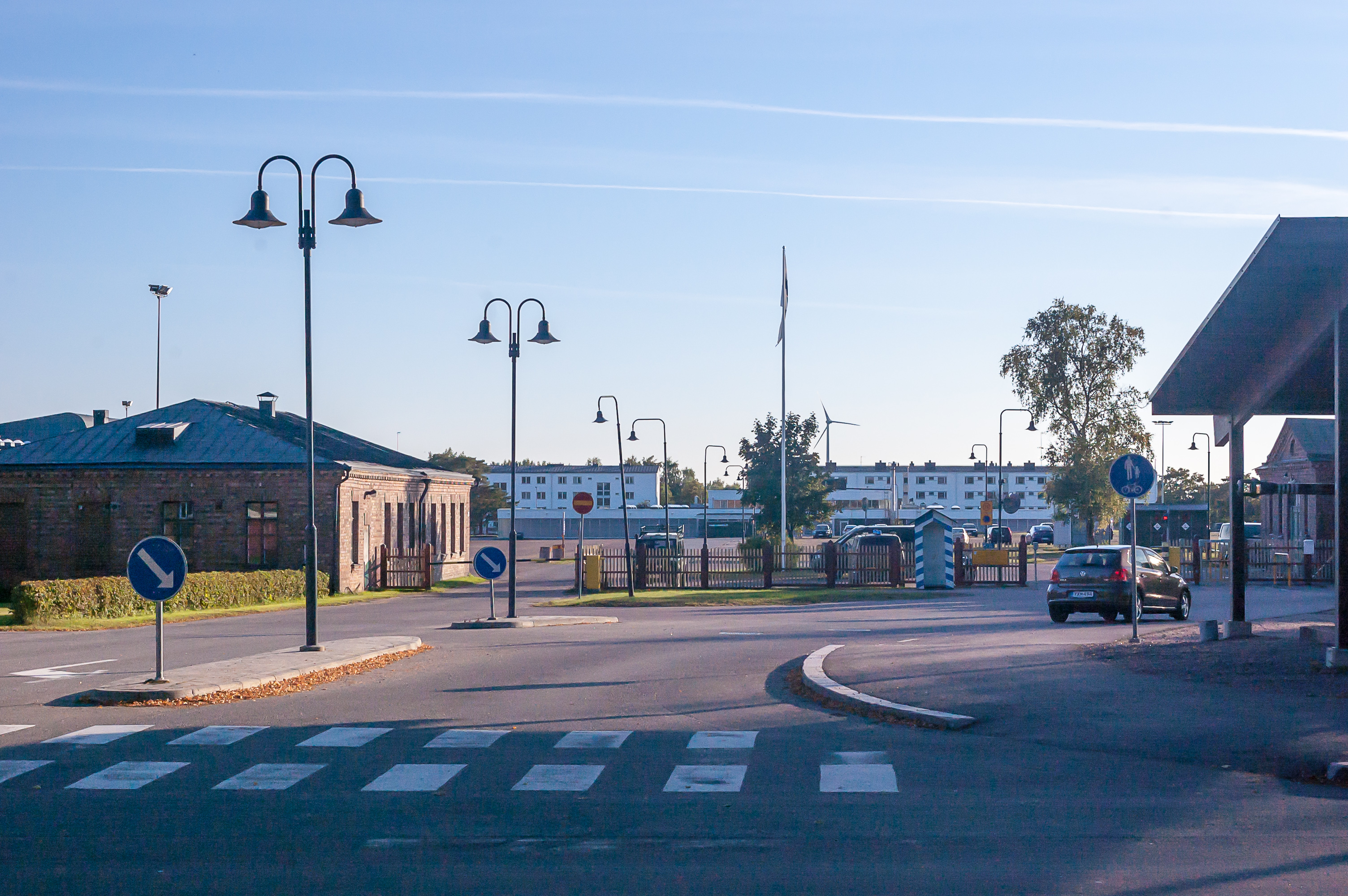 Главное здание Школы мы увидим чуть позже, а это просто какие-то старые кирпичные казармы на близлежащих улицах, тоже, по идее, относящиеся к ней. Несмотря на то, что в сентябре Школа вроде бы работать не должна (курсы начинаются в середине октября), на улицах Хамины я видел довольно много молодых блондинов с квадратными челюстями, одетых в зеленую форму. Один из них мешок яблок куда-то нес даже. Жалко, что мне не удалось сфотографировать ни одного из них, хотя под конец я даже начал думать, может, мне тупо подойти к кому-нибудь и попросить попозировать (никогда в жизни так не делал) — настолько фотогеничные были.