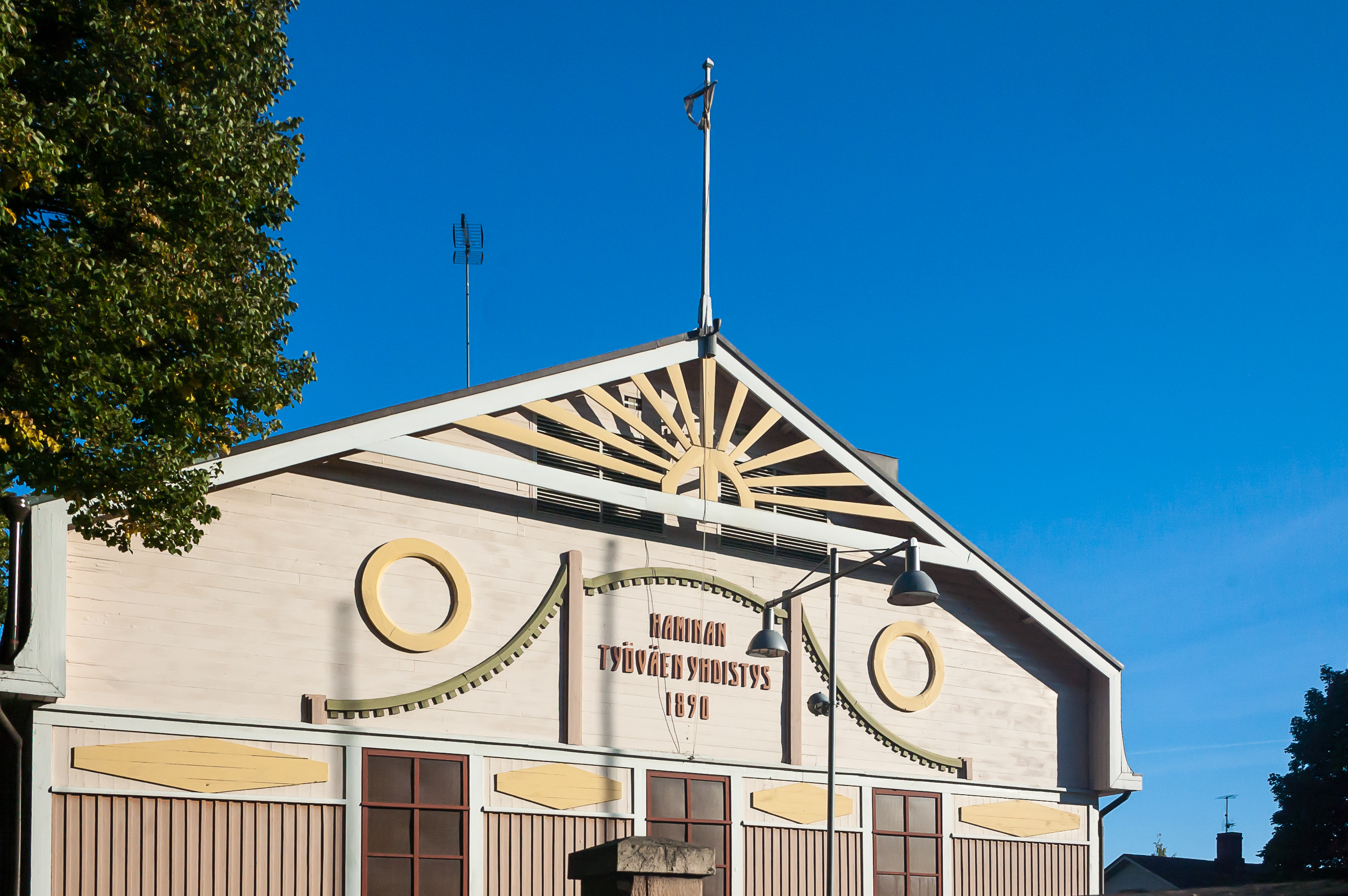 31. Дом Профсоюзов. Обратите внимание на восьмиугольник на фронтоне. Восьмиугольник Хамины также встречается на логотипах некоторых местных мелких бизнесов.