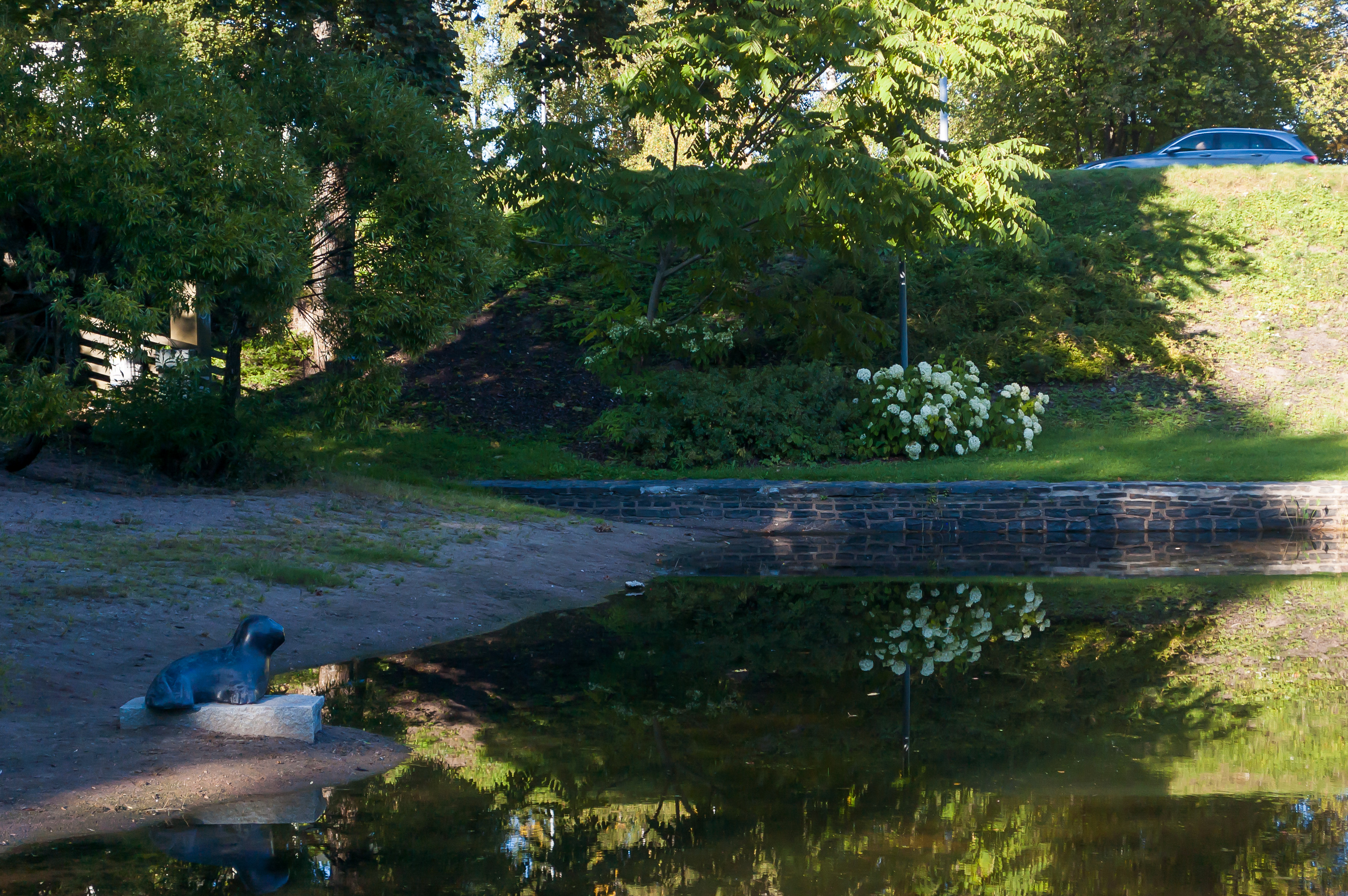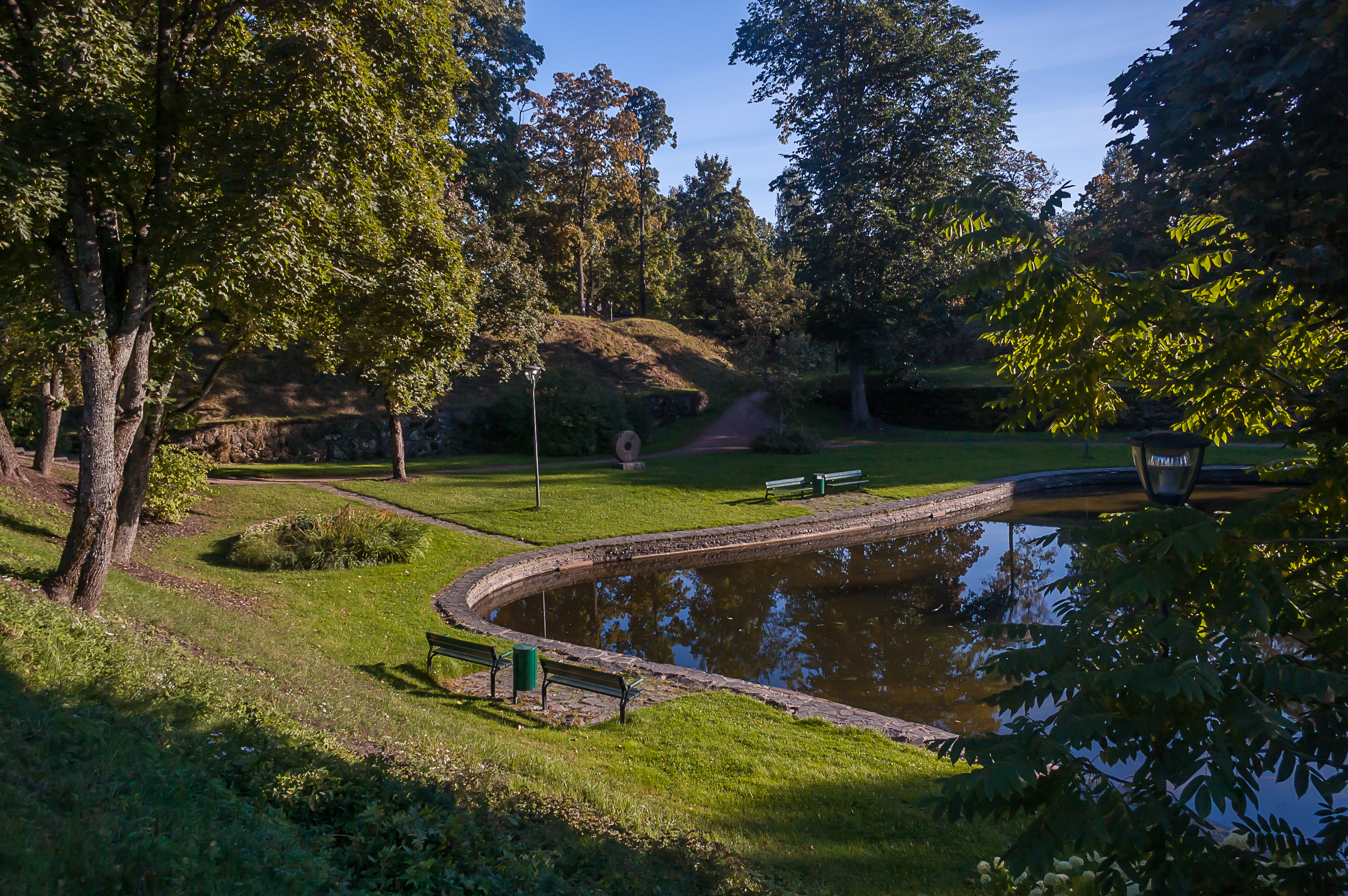 18. На месте следующего бастиона, бастиона Лаппеенранта, разбит городской парк. Вал бастиона сохранился, но на фоне деревьев кажется крошечным. Это последний бастион из трех, доступных для посещения; три других (названных в честь Турку, Савонлинны и Хамины — последний тезка того большого бастиона Хамина) находятся в запретной зоне, принадлежащей военным, но издали мы их все же увидим дальше.
