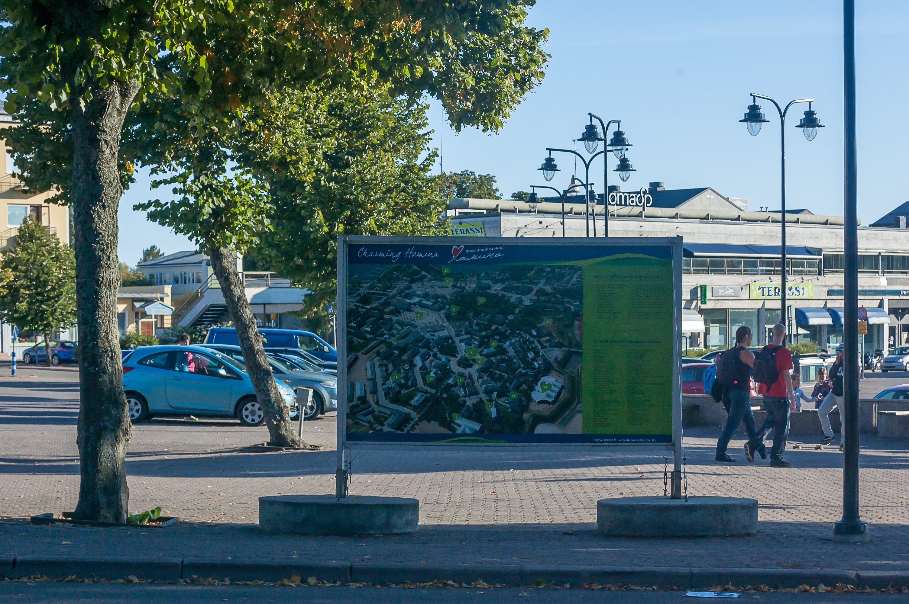 27. Восьмиугольная планировка Хамины хорошо видна на фотографии на информационном щите. Мне еще нравится, какой они придумали логотип для российских туристов — с буквой Х в слове Хамина, превращенной в сердечко. Жалко, что со словом Hamina такой фокус уже не прокатит.