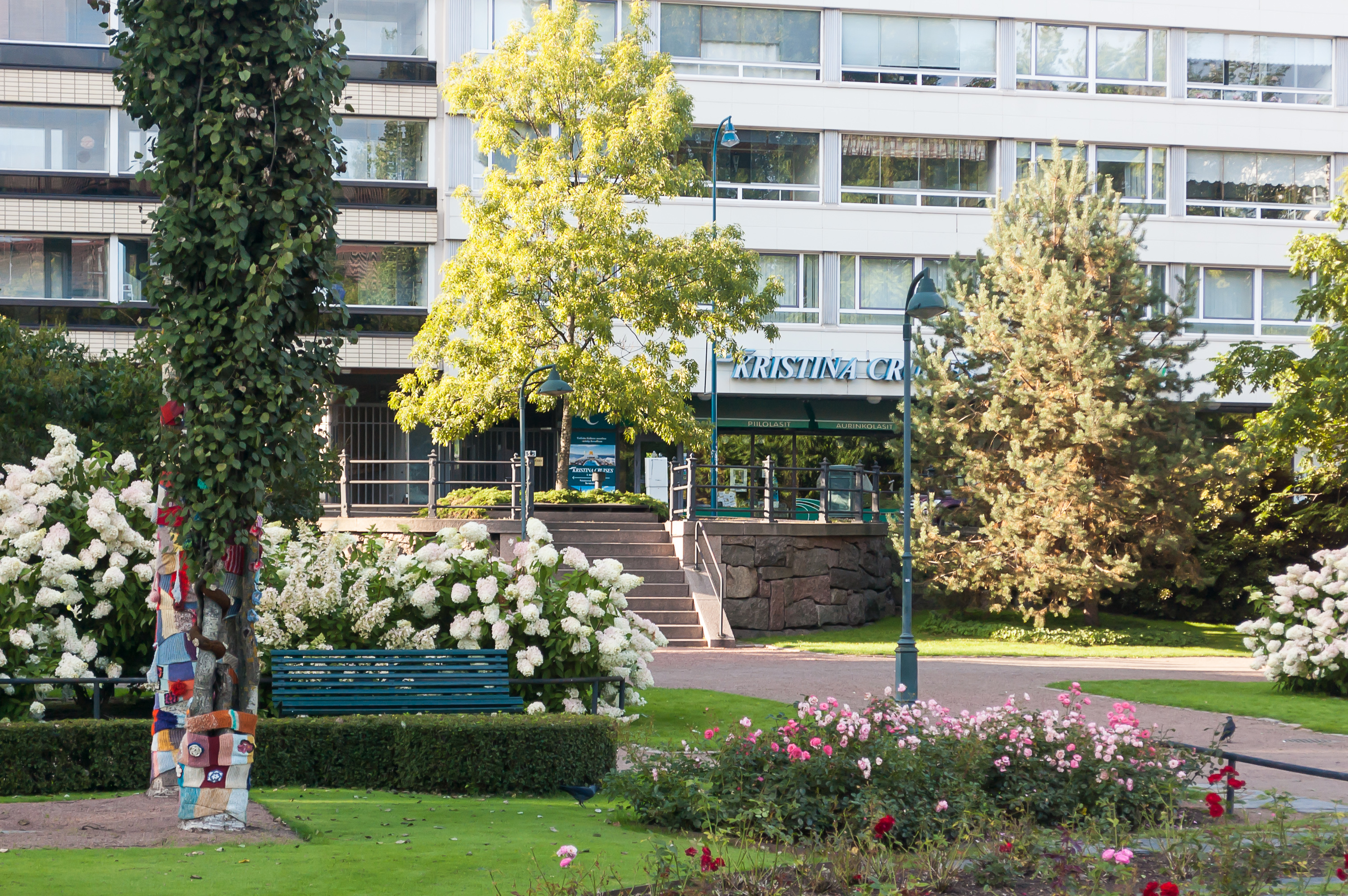 50. В парке Сибелиуса все цвело, несмотря на сентябрь месяц. На заднем плане виден офис компании Кристина-Крузес (Kristina Cruises). У этой местной компании, основанной в 1985 году, был свой маленький флот круизных судов, но в 2014 году они продали последнее, «Кристина Катарина» (Kristina Katarina), и теперь работают более-менее как обычная турфирма, продавая круизы на чужих судах.