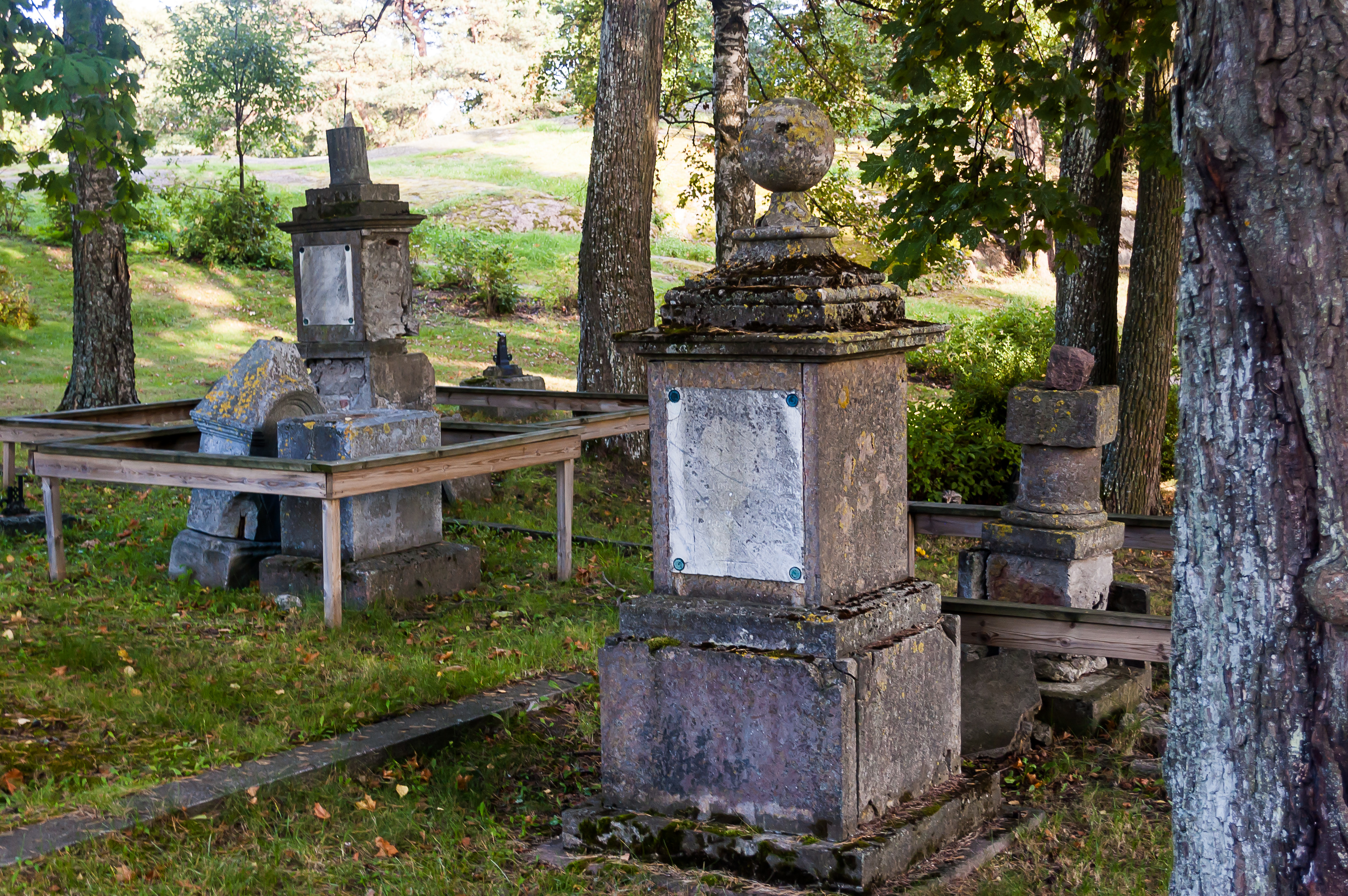 56. В 1948 году были обнаружены останки одного из русских фрегатов, потопленных во Второй Роченсальмской битве, «Святой Николай». Фрегат сохранился довольно неплохо, и с морского дна удалось поднять пушки и ряд других артефактов, занявших свои места в музеях. Этот процесс занял много лет, и со временем, в 1975 году, были подняты также останки экипажа, и захоронены тут же на старом русском кладбище со всеми почестями.