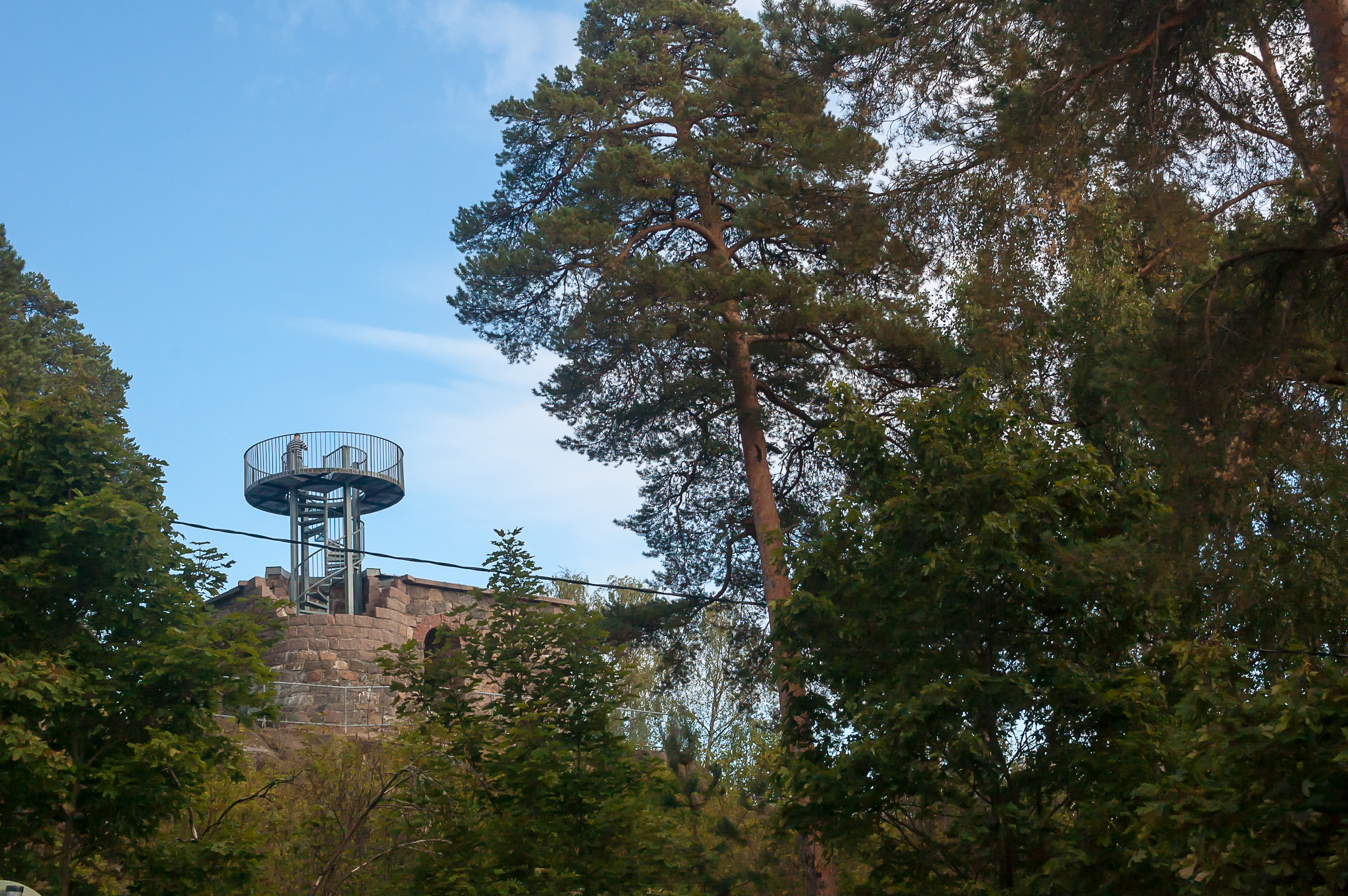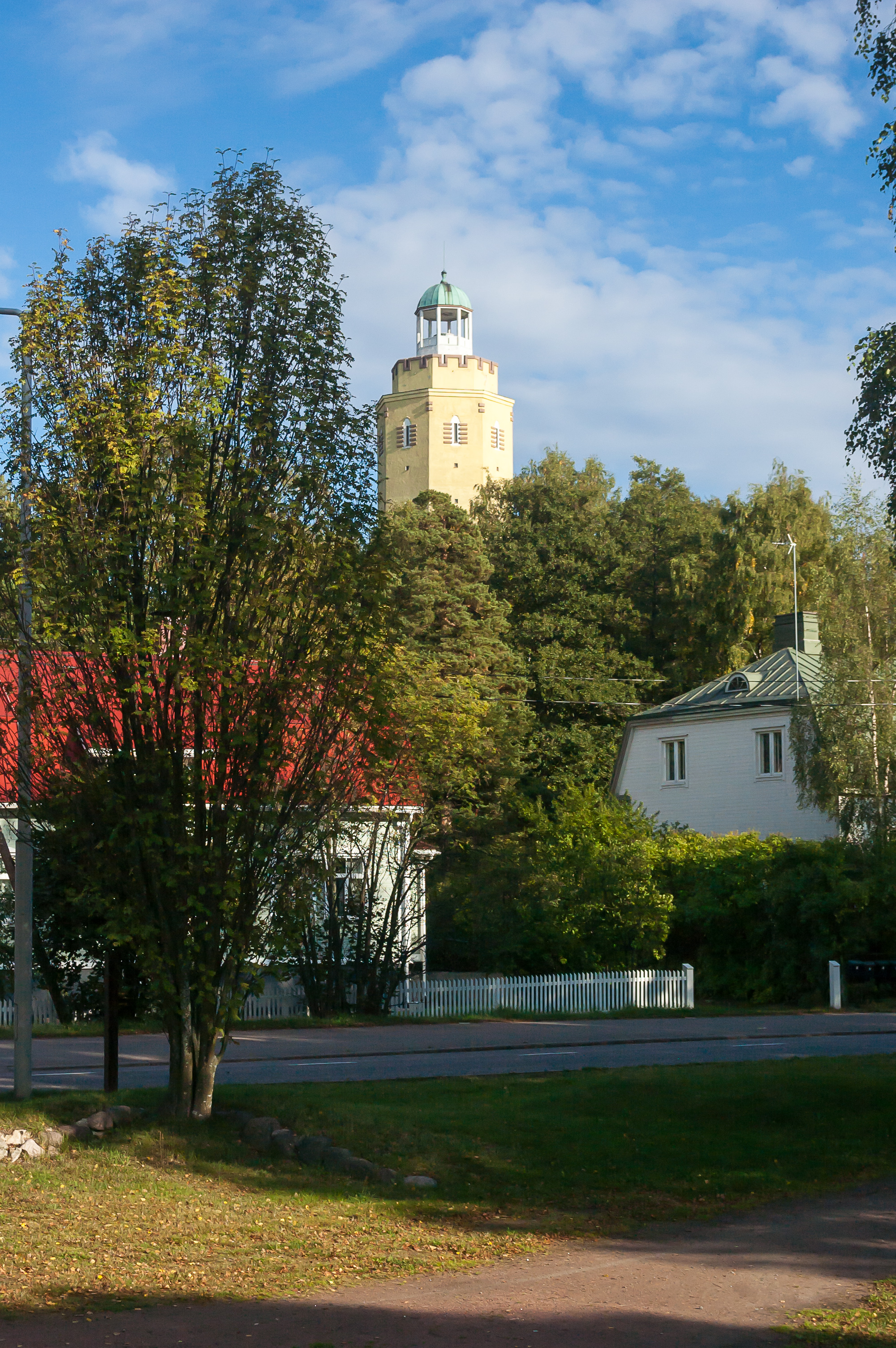 41. Высшей точкой острова Коткансаари является башня Хауккавуори-Някёторни (Haukkavuori Näkötorni, фин. Смотровая башня Соколиной горы), возвышающаяся на 72 м над уровнем моря. С вершины башни, говорят, теоретически можно разглядеть на севере город Коувола, а на юге остров Гогланд (Суурсаари). Башня построена в 1914-1920 году как водонапорная, и переделана в наблюдательную в 1960-х. Я подумал, что башня почти наверняка будет закрыта из-за сезона и/или вечернего часа, и не стал идти к ней.