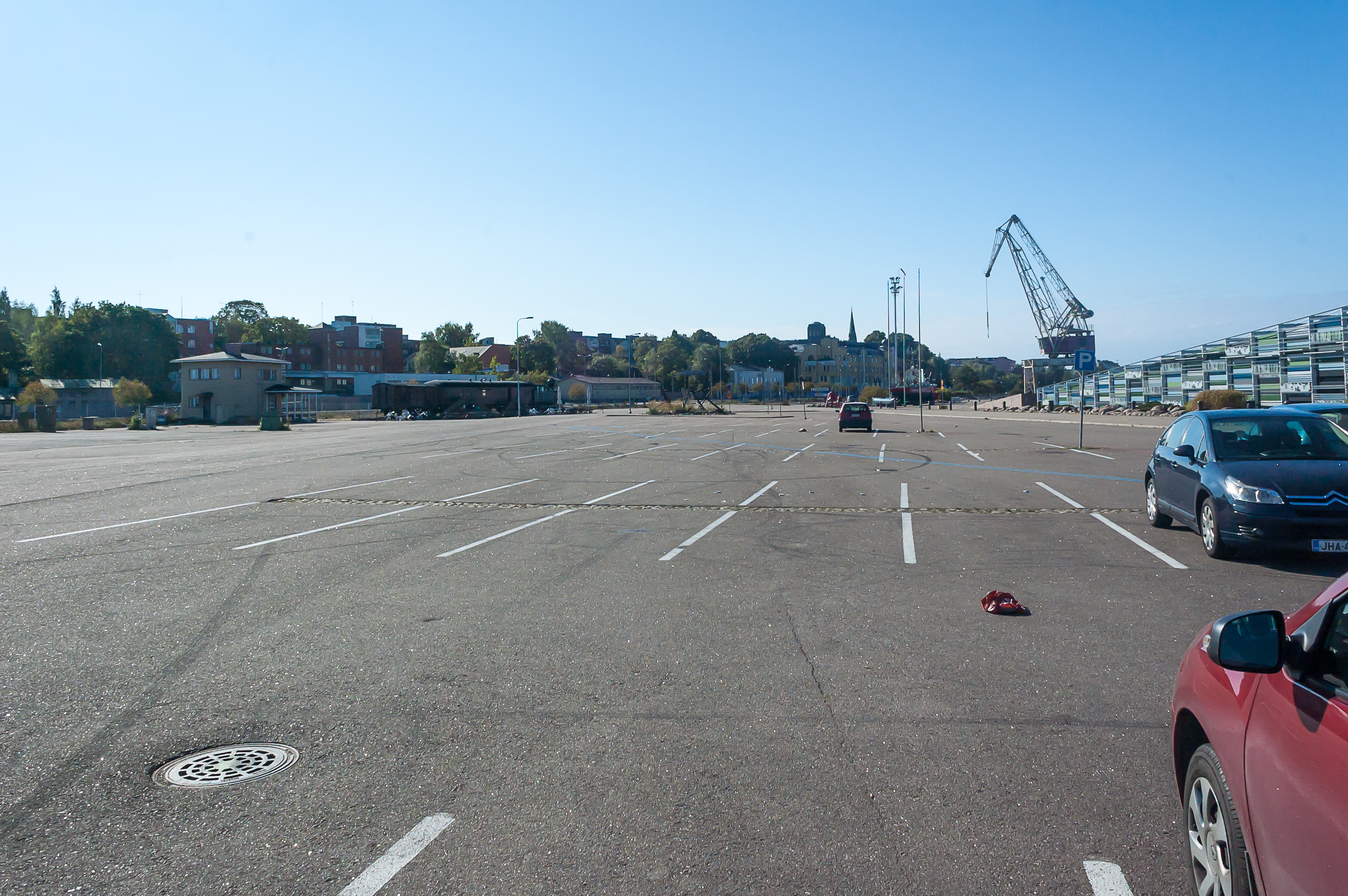 После ночевки в кемпинге Питкятхиекат под Хаминой я поехал в Котку. Я продолжил придерживаться туристического маршрута «Королевский тракт» по табличкам, но больше «музейных» участков дороги вроде бы не было. Осмотр Котки я решил начать с музея «Велламо», на парковку которого я и направился.