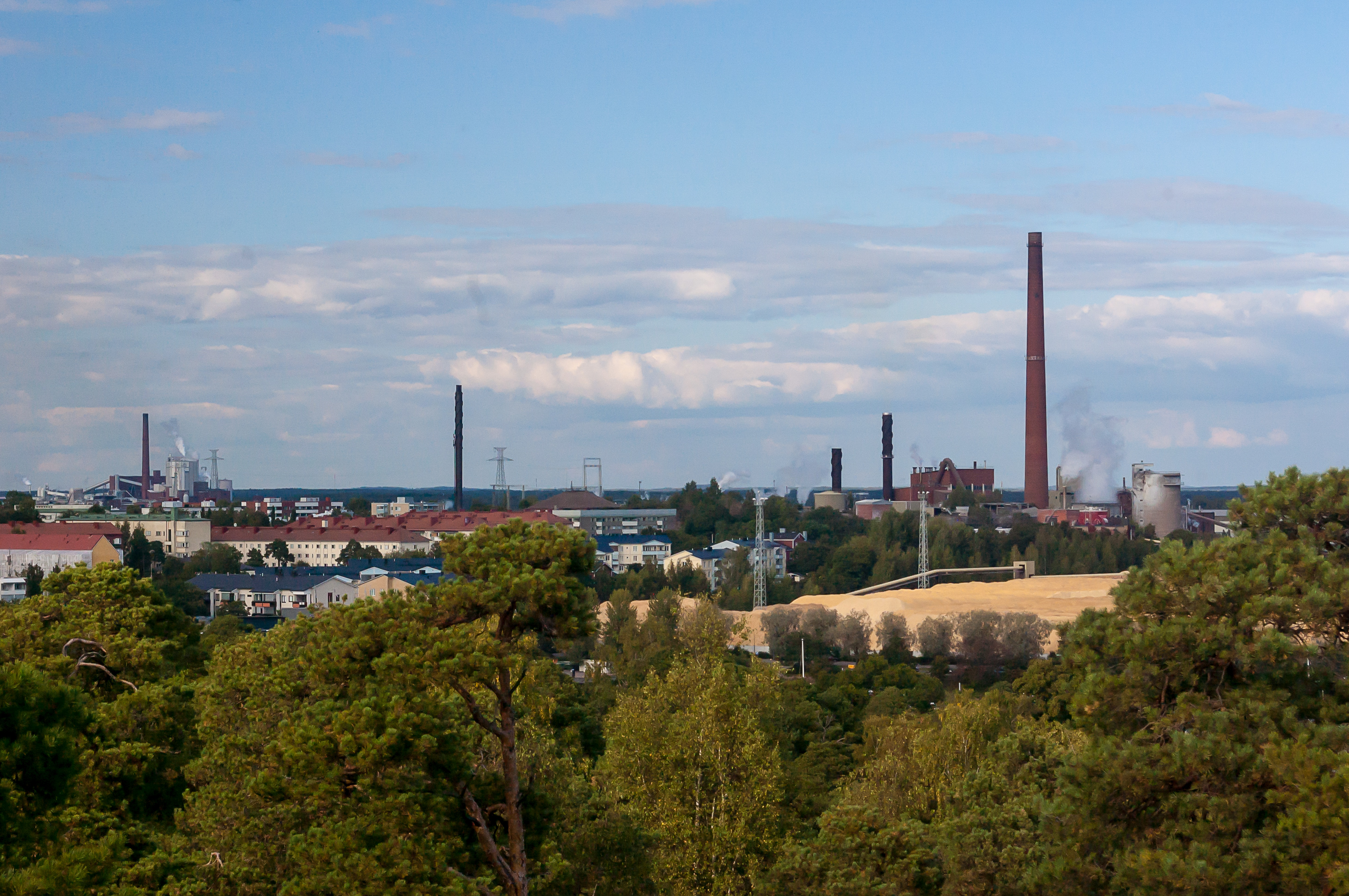 36. Немного видов с вышки. На северо-восток видна промзона острова Коткансаари. Не могу идентифицировать эти фабрики по отдельности, но желтая масса справа, похожая на огромную гору опилок, впечатляет.