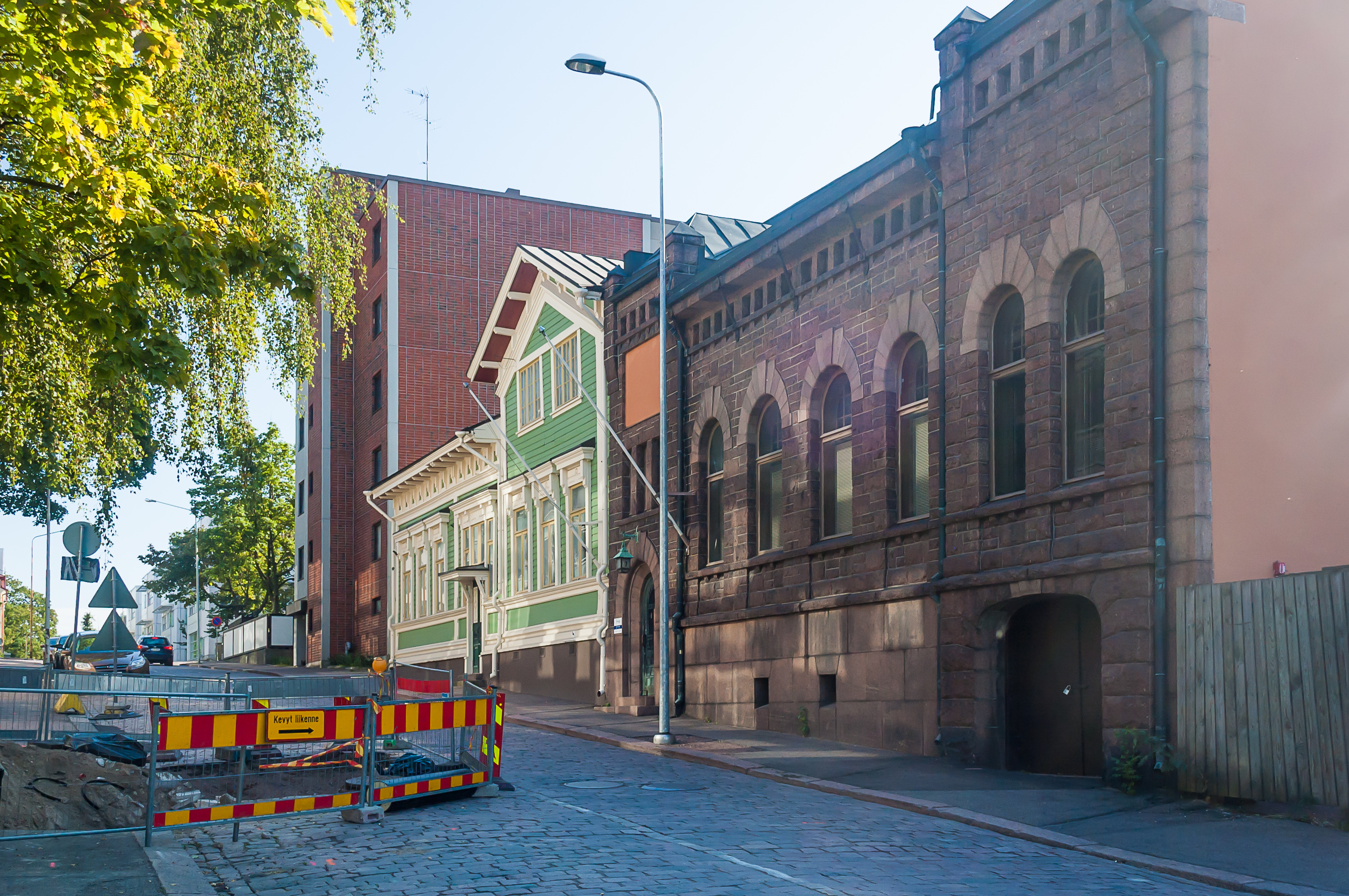 14. Улица Лайвуринкату (Laivurinkatu, фин. Капитанская улица), начинающаяся от гавани. Судя по мощению и старого вида зданию справа, мы сразу же оказались достаточно близко от центра города.