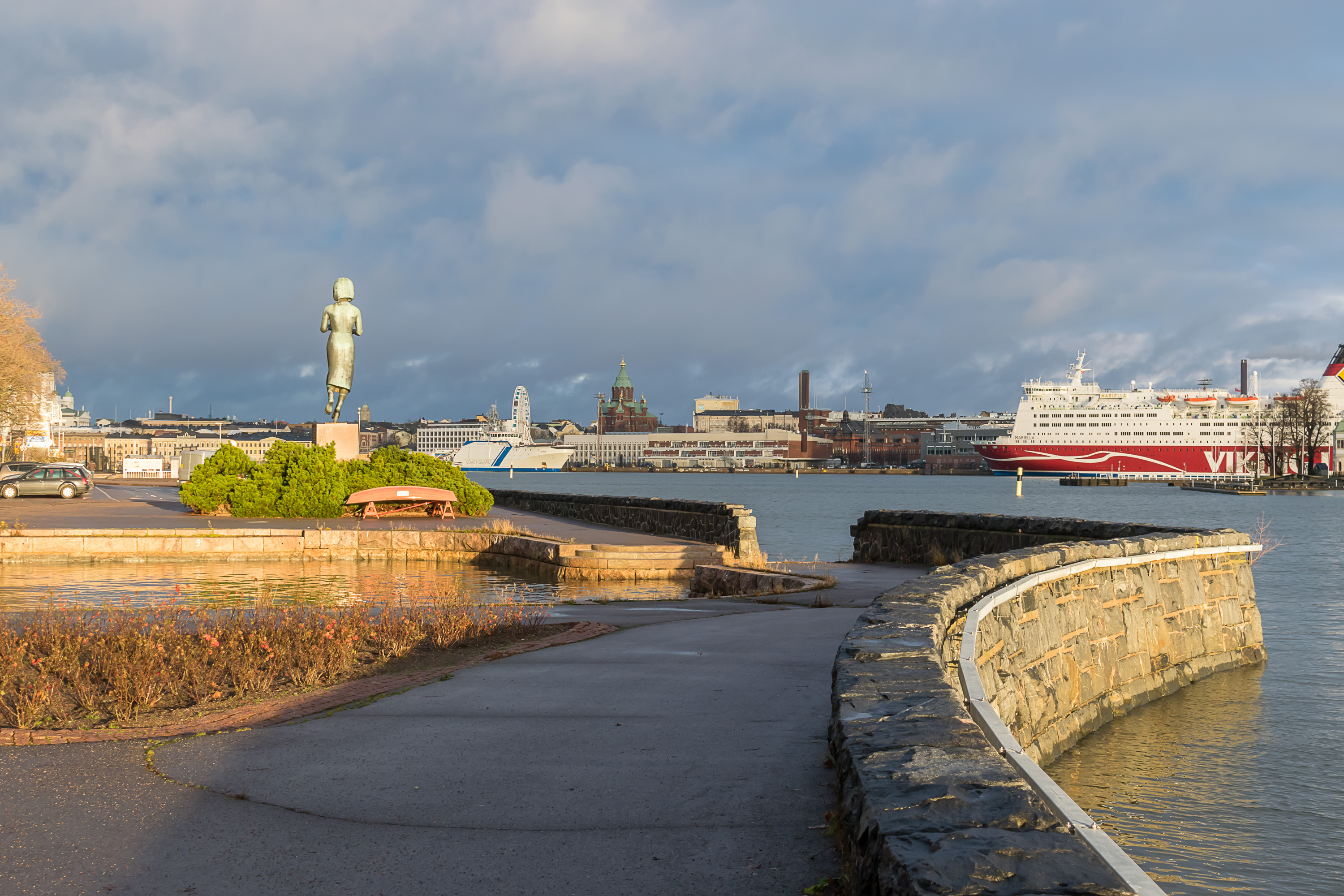 23. По набережной бегало много финнов (любят они пробежки — я в общем-то на протяжении всего дня их встречал), и я первым делом подумал, что статуя бегущей девочки тоже как-то относится к пробежкам. Оказалось, что она символизирует финляндско-советское сотрудничество. В маленькой декоративной гавани плавала дохлая чайка.