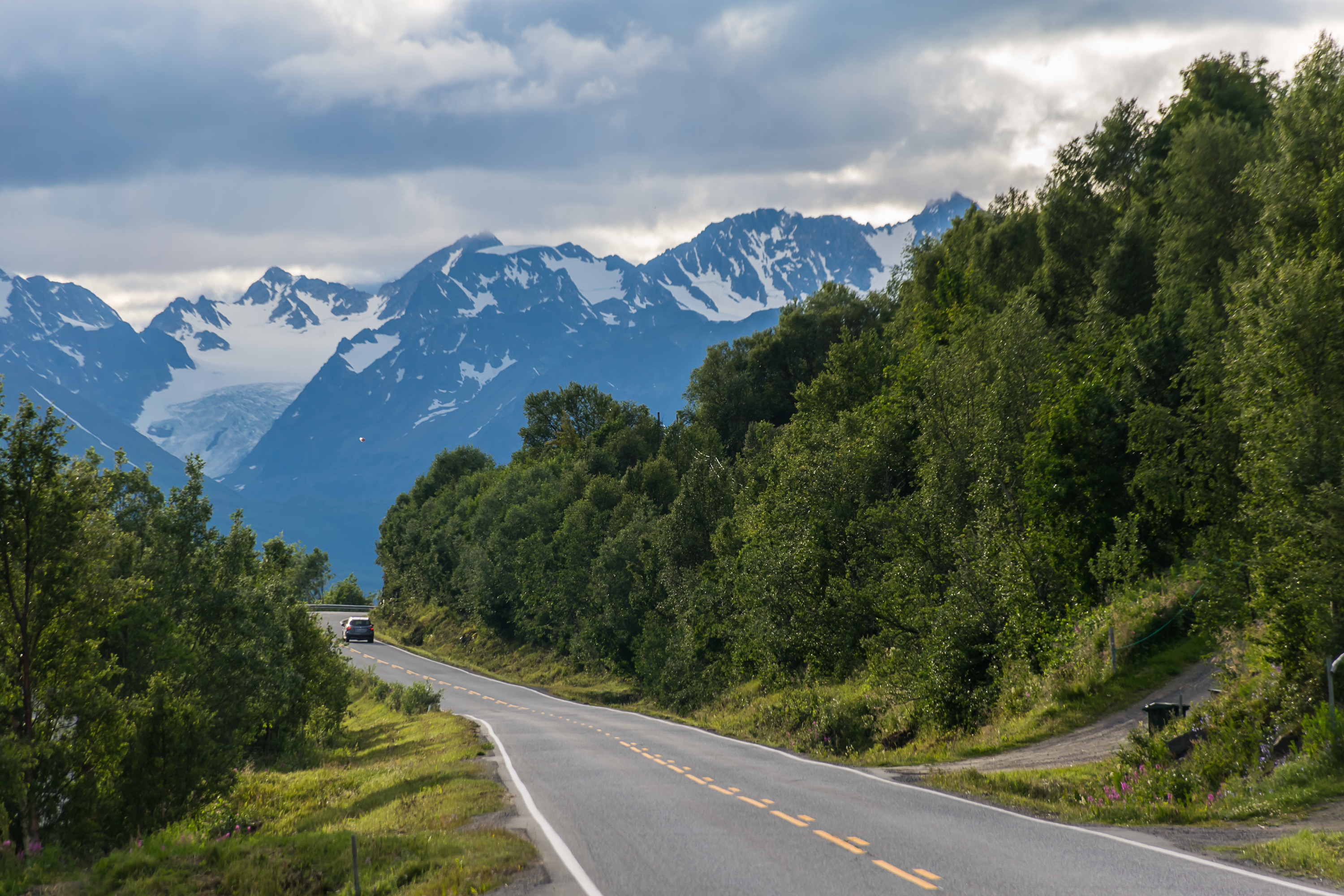 37. После музея мы поехали в нашу следующую точку, полуостров Люнген (Lyngen) — 350-километровый переезд, в ходе которого мы въехали из Финнмарка в Тромс (Troms), вторую по счету губернию Норвегии с севера.