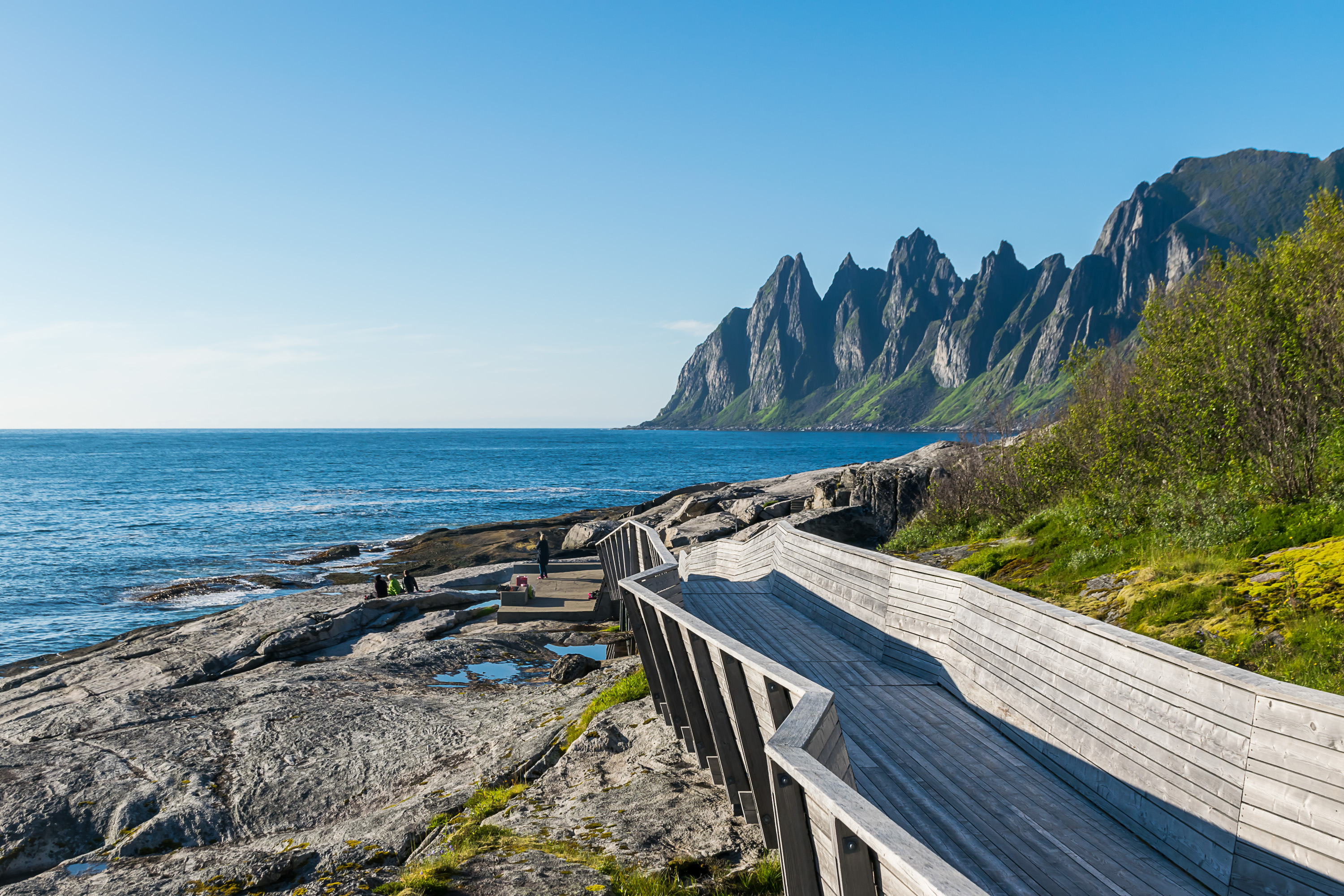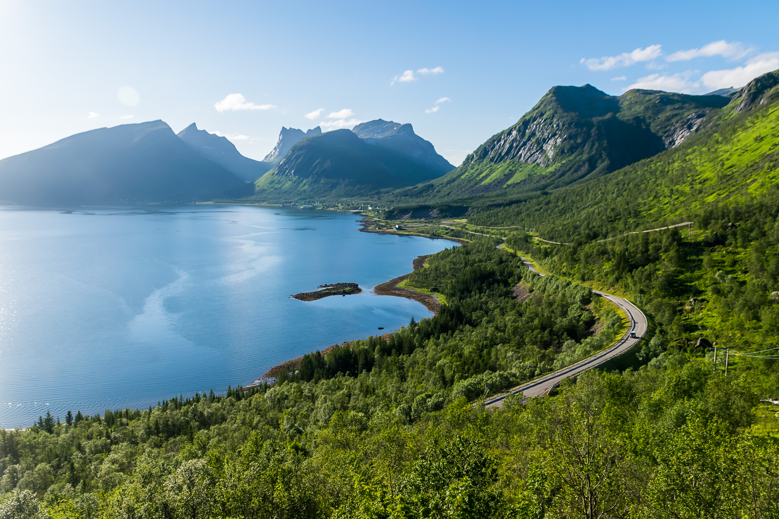 46. Сенья — на самом деле весьма обширный остров (второй самый большой в Норвегии, и втрое больше, чем Магерёйя), и большая часть его площади тоже не столь уж интересна. На юго-западе острова есть маленький национальный парк, но больше всего известны и легче всего доступны маленькие фьорды на западном и северо-западном побережье. Дорога вдоль этого побережья, по которой мы проехали, также считается национальной туристической трассой.