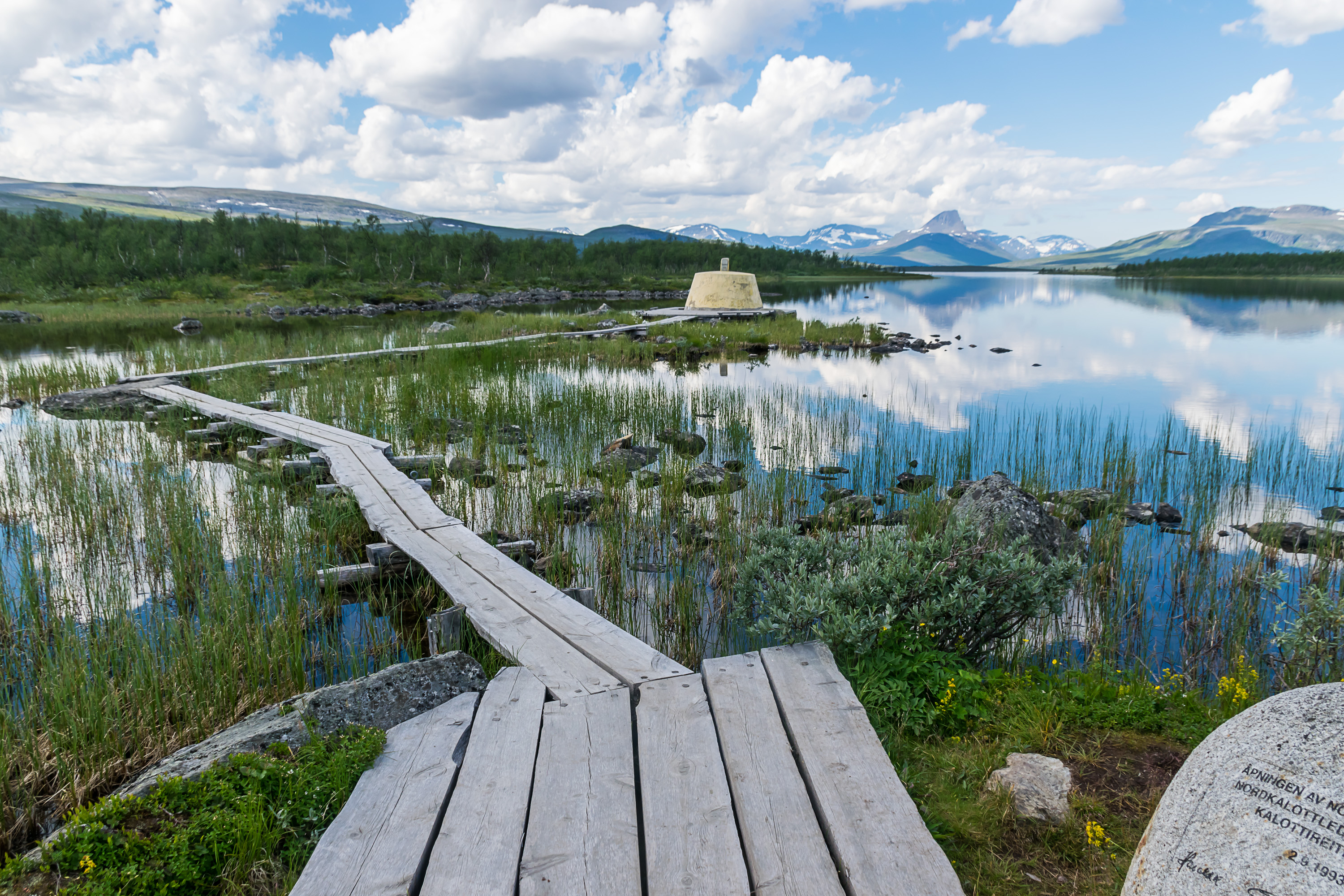 54. Последней точкой, которой мы собирались посетить в путешествии, был пограничный камень Трериксрёсет, (Treriksröset) в месте, где сходятся границы Финляндии, Швеции и Норвегии. Я, собственно, там уже был прошлой осенью. В этот раз хотелось посмотреть, как там летом, а еще мы забронировали резервируемый туристический домик (варауступа, varaustupa) у самого Трериксрёсета, и собирались там переночевать. Это у нас был первый опыт с такими домиками.