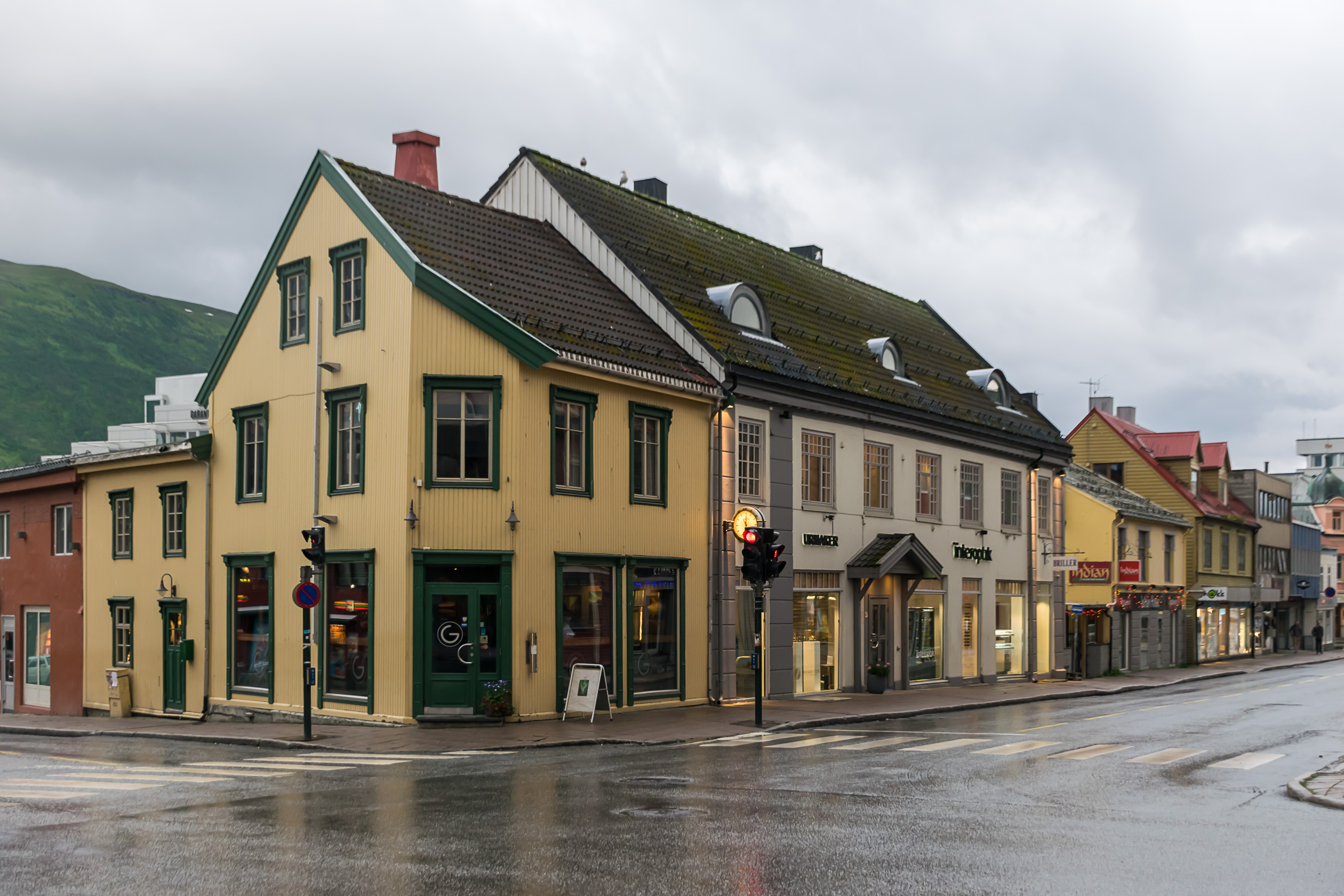 43. Вечерком мы прогулялись по Тромсё. Тромсё (Tromsø, нас. 60 тыс.) — крупнейший город и столица губернии Тромс, да по сути и всей Северной Норвегии. Город достаточно старый и примечательный, расположен на острове в лабиринте фьордов и проливов, с уютного вида деревянным центром.