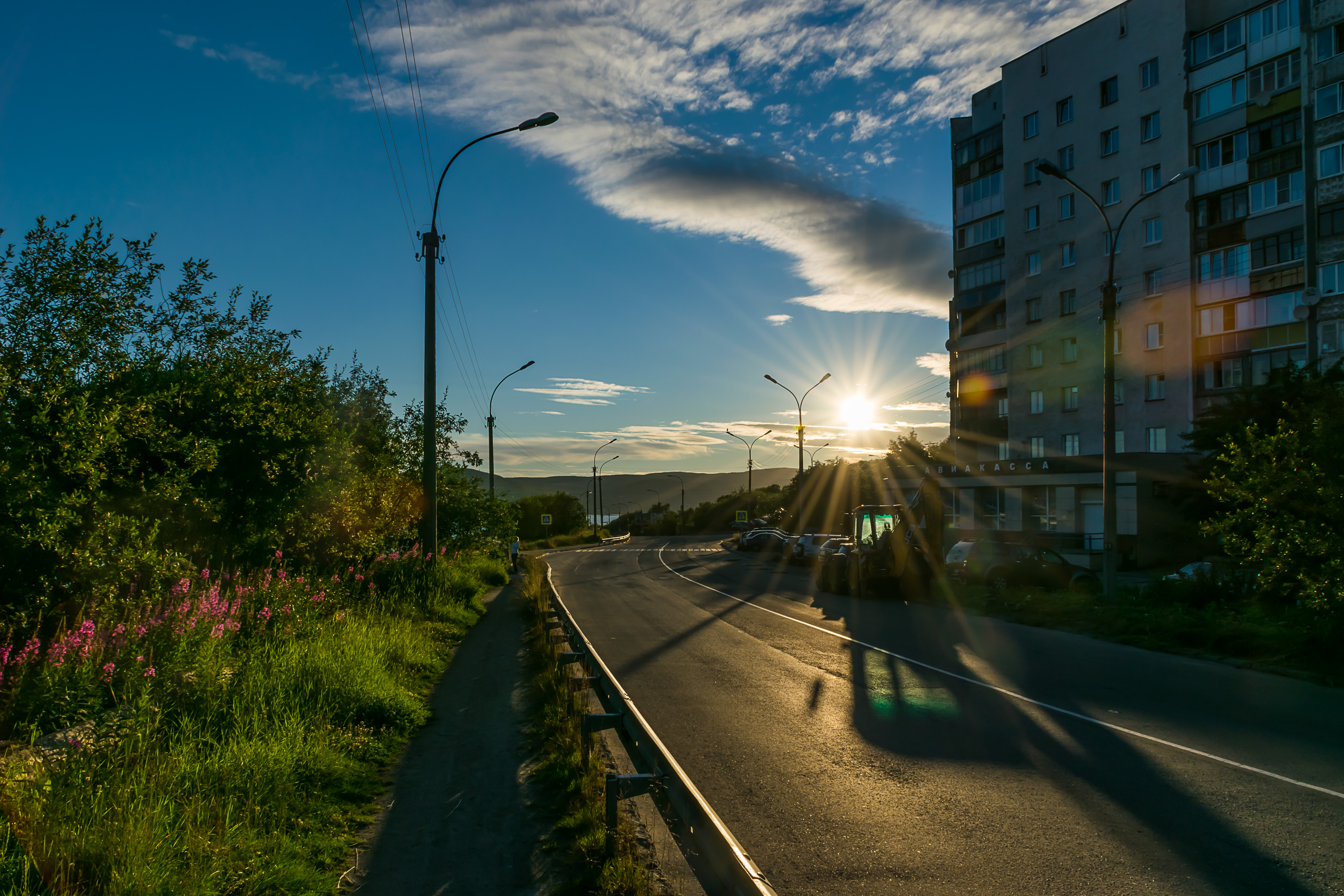 7. В Мурманск мы приехали в районе девяти вечера и, заселившись в гостиницу (небольшую, на первом этаже жилого дома на окраине), решили прогуляться, в процессе чего узрели наше первое полуночное солнце.
