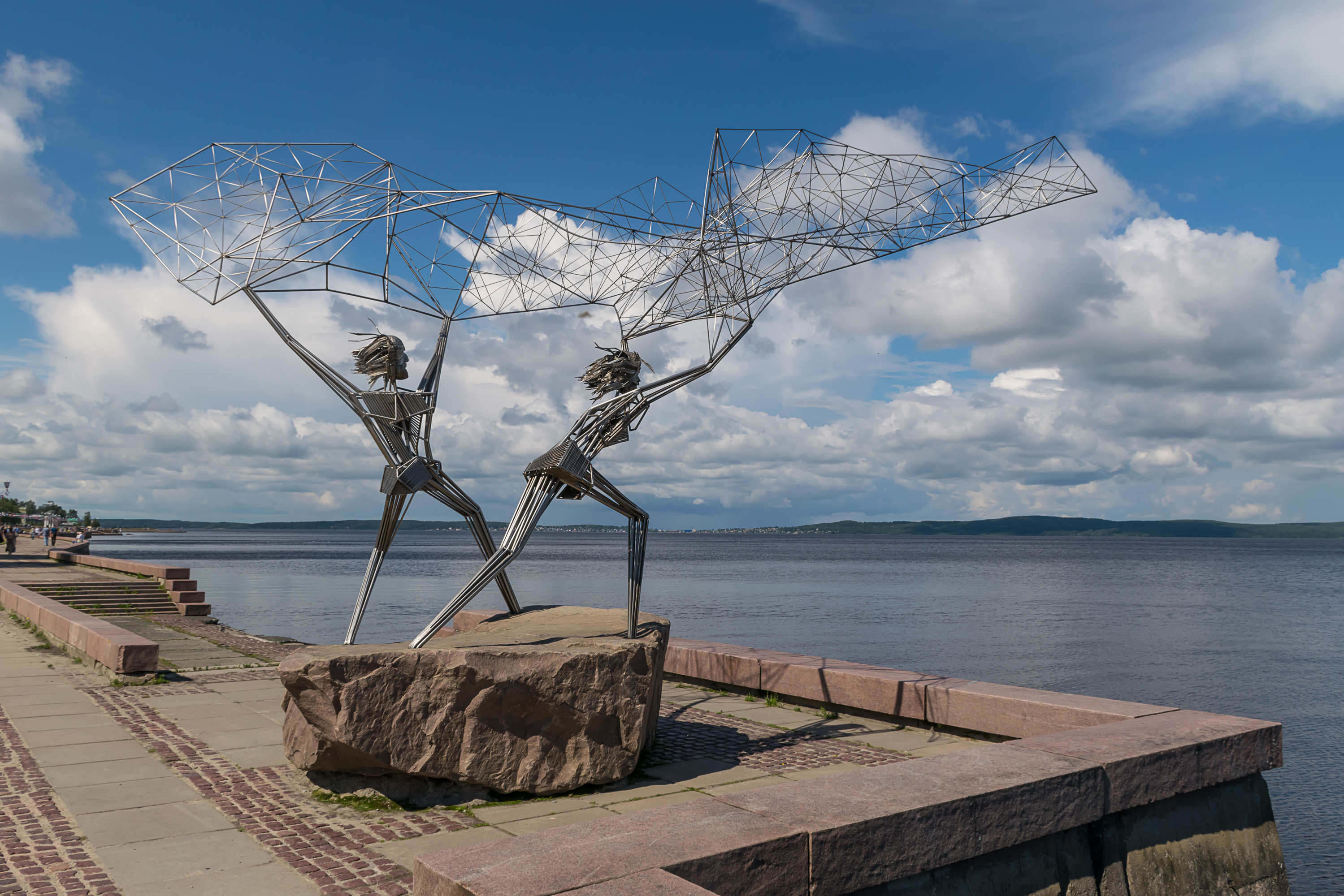 Петрозавод расположен в достаточно живописном месте, на берегу Онежского озера, второго крупнейшего озера Северо-Запада России, после Ладожского. Набережную, по-видимо, построили/реконструировали недавно, и, похоже, позаимствовали некоторые идеи от финских городов.