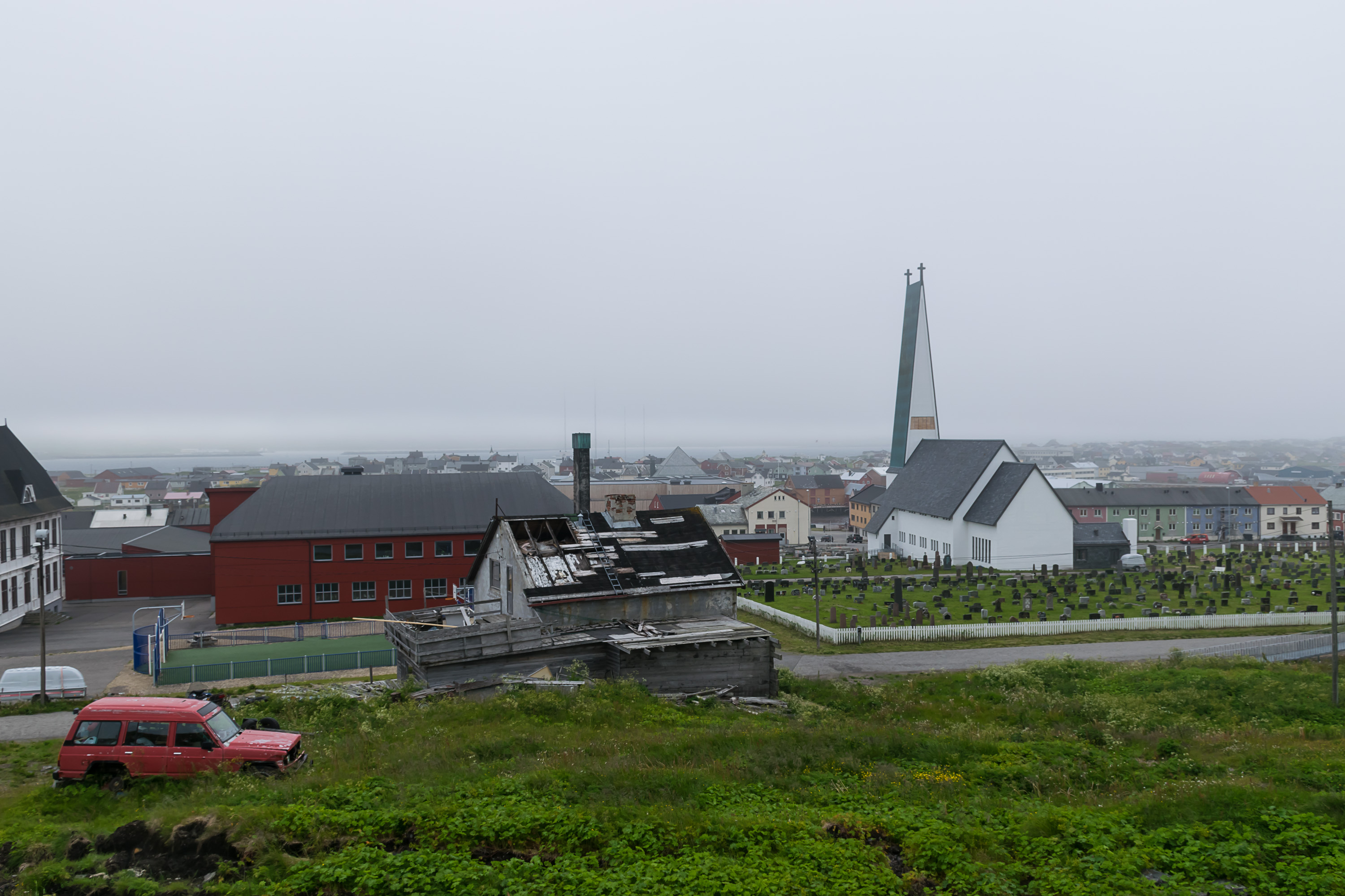 20. За Вадсё полуостров Варангер превращается в тундру — деревья полностью перестают появляться. Выглядело поначалу все еще идиллически, но вскоре погода снова испортилась, и последние километры мы ехали в густом тумане. Нашей целью был Вардё, крошечный городок на острове в самом конце Варангера (соединенный с большой землей туннелем). Там у нас на две ночи была забронирована комната в AirBnB. К этому моменты мы уже порядочно устали, и исследования Вардё отложили до следующего дня.