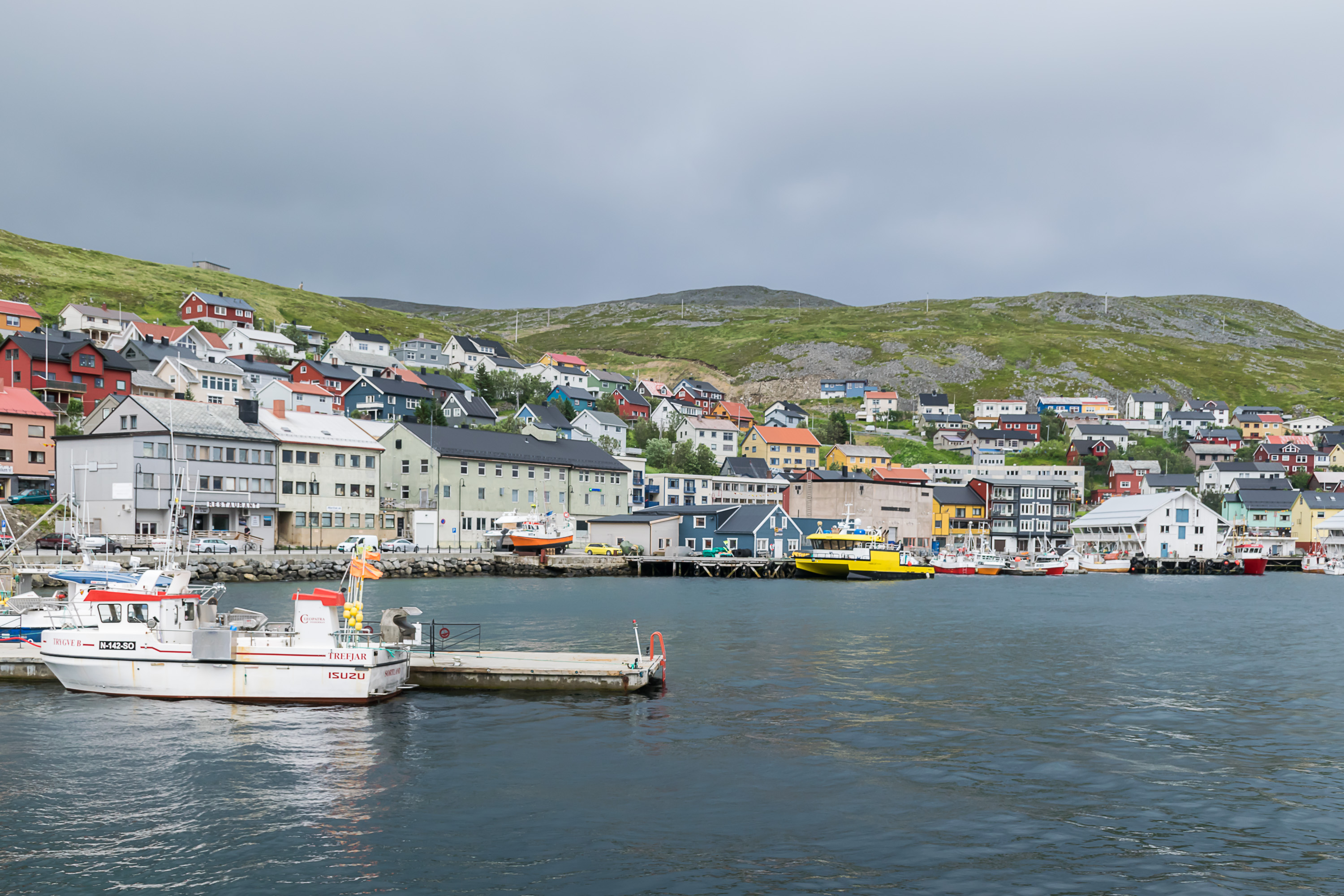 30. Очередной день мы начали с прогулки по Хоннингсвогу (Honningsvåg). Это крошечный рыбацкий арктический городок, как и в Вардё, но на его облик сильно повлиял огромный поток туристов на Нордкапп — ведь Нордкапп-то по сути самая известная достопримечательность всей Северной Норвегии, а Вардё — по-настоящему богом забытое место. В Хоннингсвоге необычно много крупных гостиниц и магазинов (в Вардё всего одна гостиница, и выглядела она так себе). Это, конечно, не плохо, просто по-другому.