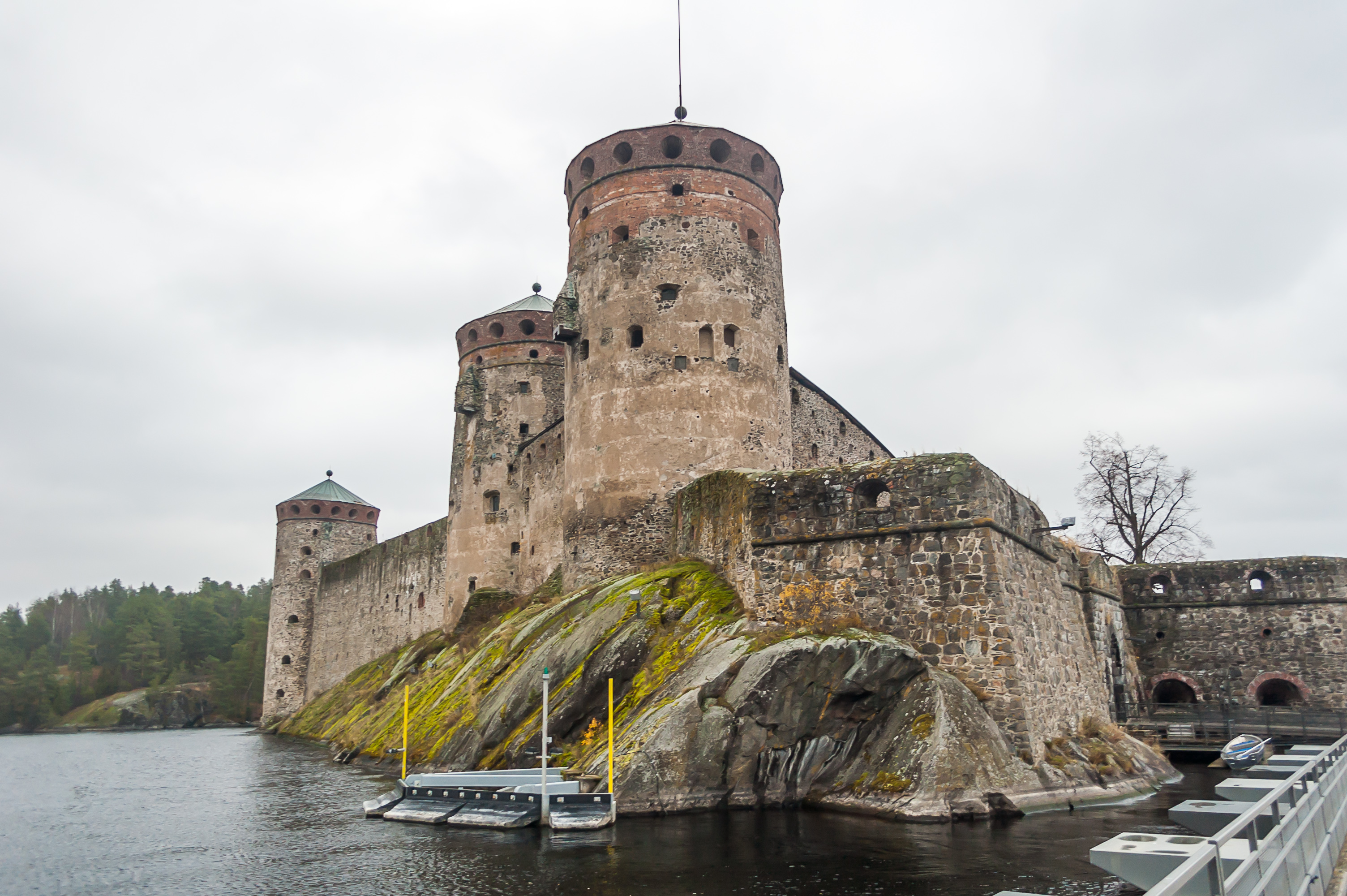 1. Замок Олавинлинна (Olavinlinna, фин. крепость Олафа) — конечно, основная достопримечательность Савонлинны, если не вообще всего Озерного края Финляндии. Он был основан в 1475 году Эриком Аксельссоном Тоттом (Erik Axelsson Tott), датско-шведским государственным деятелем, в качестве аргумента в продолжавшемся споре России и Швеции по поводу границы. Местом расположения замка был выбран островок в проливе Кюрёнсалми (Kyrönsalmi). Пролив был важным водным путем, а течение в нем было достаточно быстрое, чтобы он обычно не замерзал зимой.