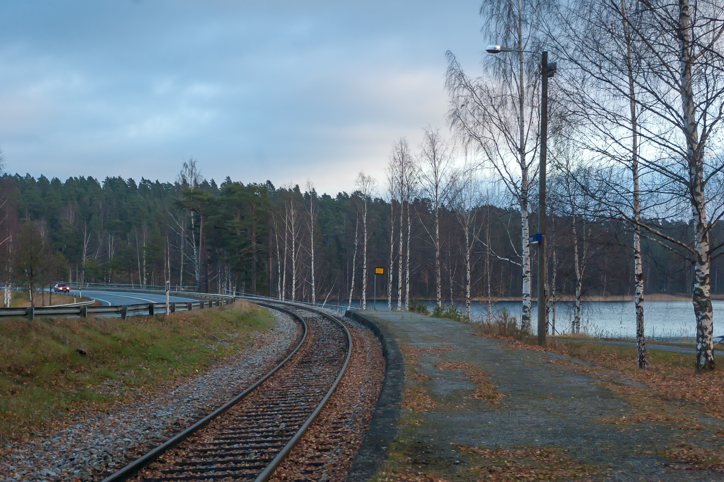 34. В Савонлинне есть железная дорога, с минималистичного вида платформой рядом с центральной площадью, но она видала лучшие времена. На данный момент пассажирской сообщение существует только с Париккалой. Линия на запад, на Пиексямяки, полностью закрыта и даже вроде бы частично разобрана.