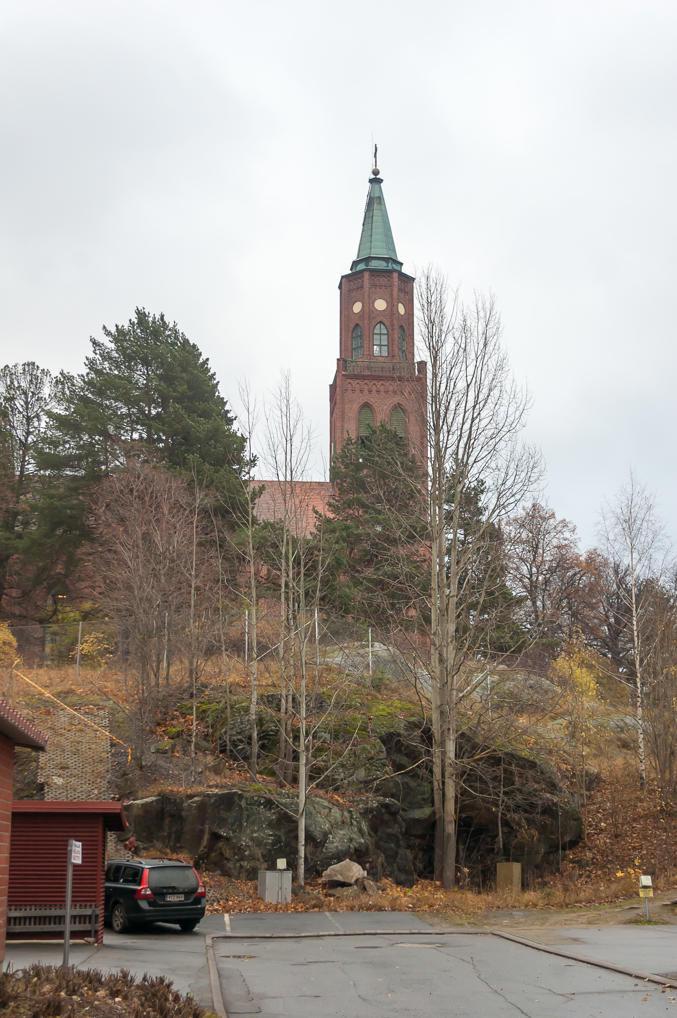 15. Городской собор стоит на скале, и видим с разных точек города. Он построен в 1878 году и стал центром Савонлиннской епархии. До сих пор он официально считается собором, а не простой церковью, хотя епархия со временем переехала сначала в Выборг, а затем, после войны, в Миккели.