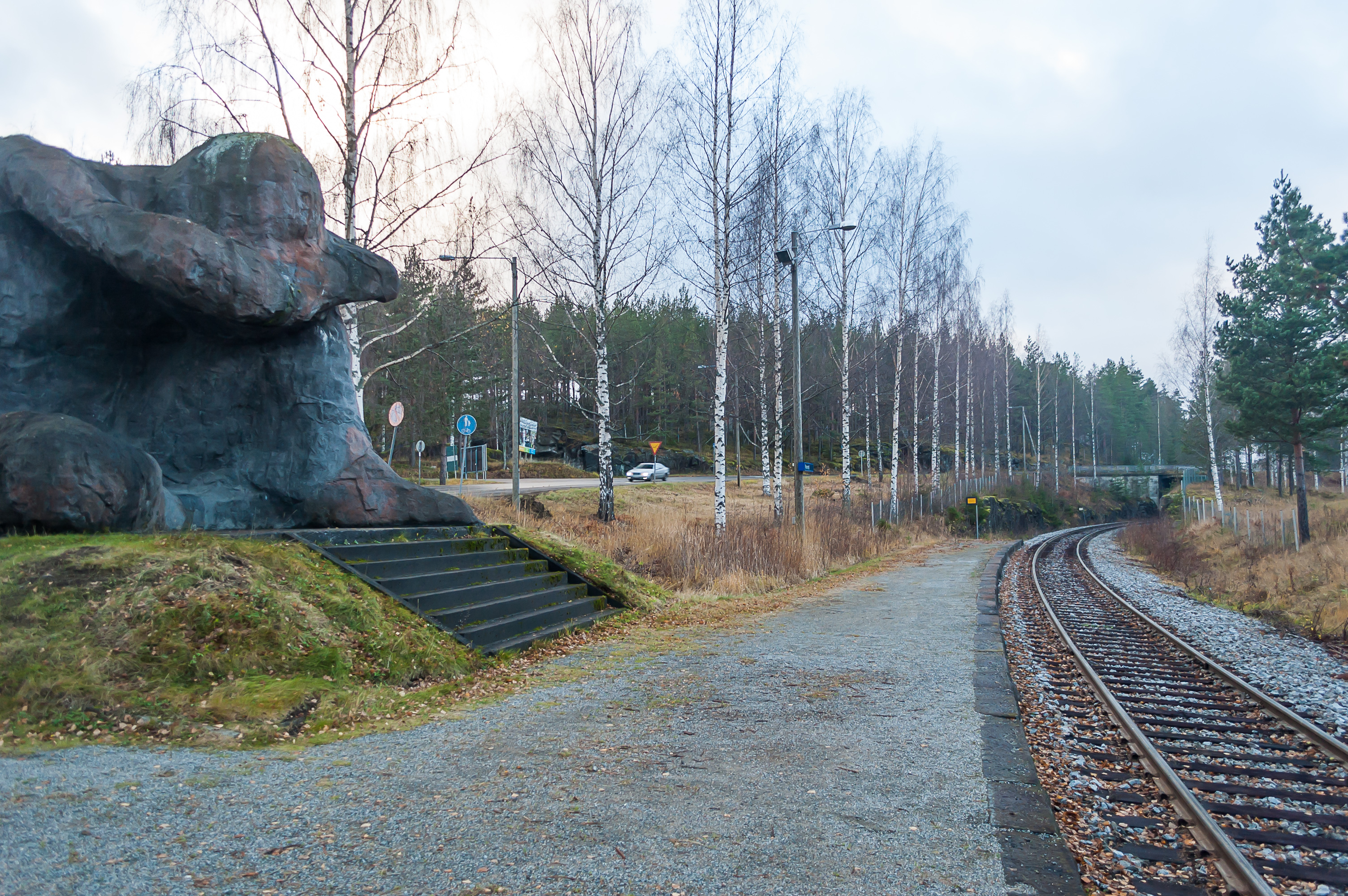 62. По пути еще остановились у ж/д станции под названием Ретретти (Retretti), недалеко от Савонлинны, с огромной бесформенной статуей у платформы.