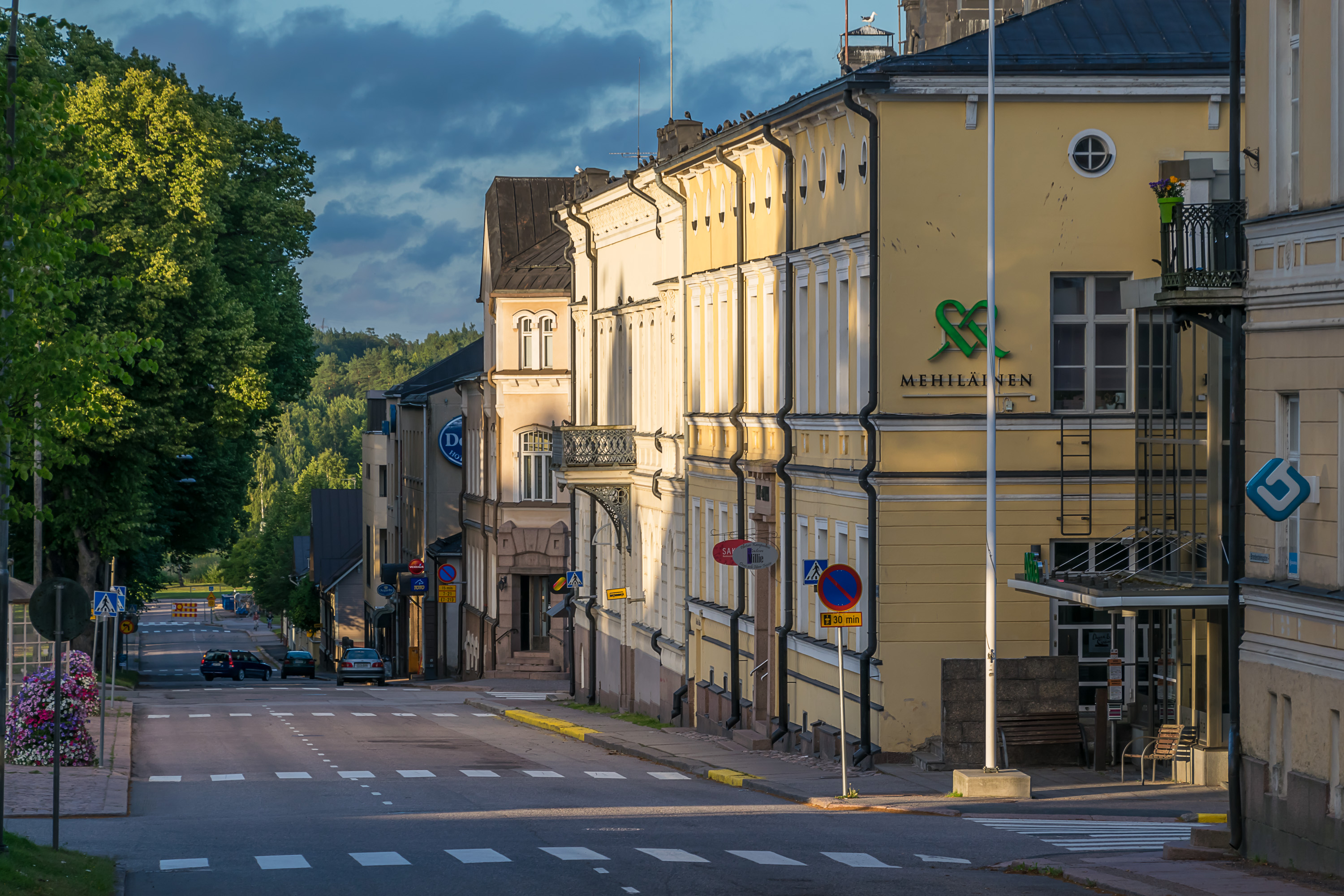 21. Главная улица Ловийсы представляет собой широкий, но довольно короткий бульвар; фактически две параллельные улицы. Северная сторона, Маннерхейминкату (Mannerheiminkatu, фин. улица Маннергейма) — главная дорога сквозь город, по которой проходит трасса Региональной дороги 170. А когда-то это была главная Национальная дорога 7, по которой ездили на Котку и Петербург.