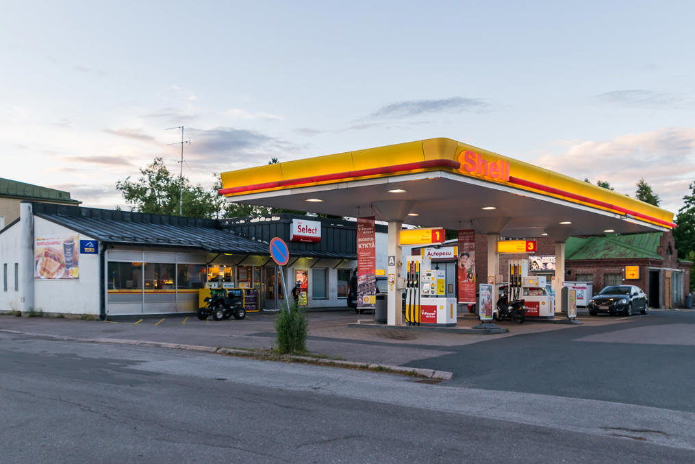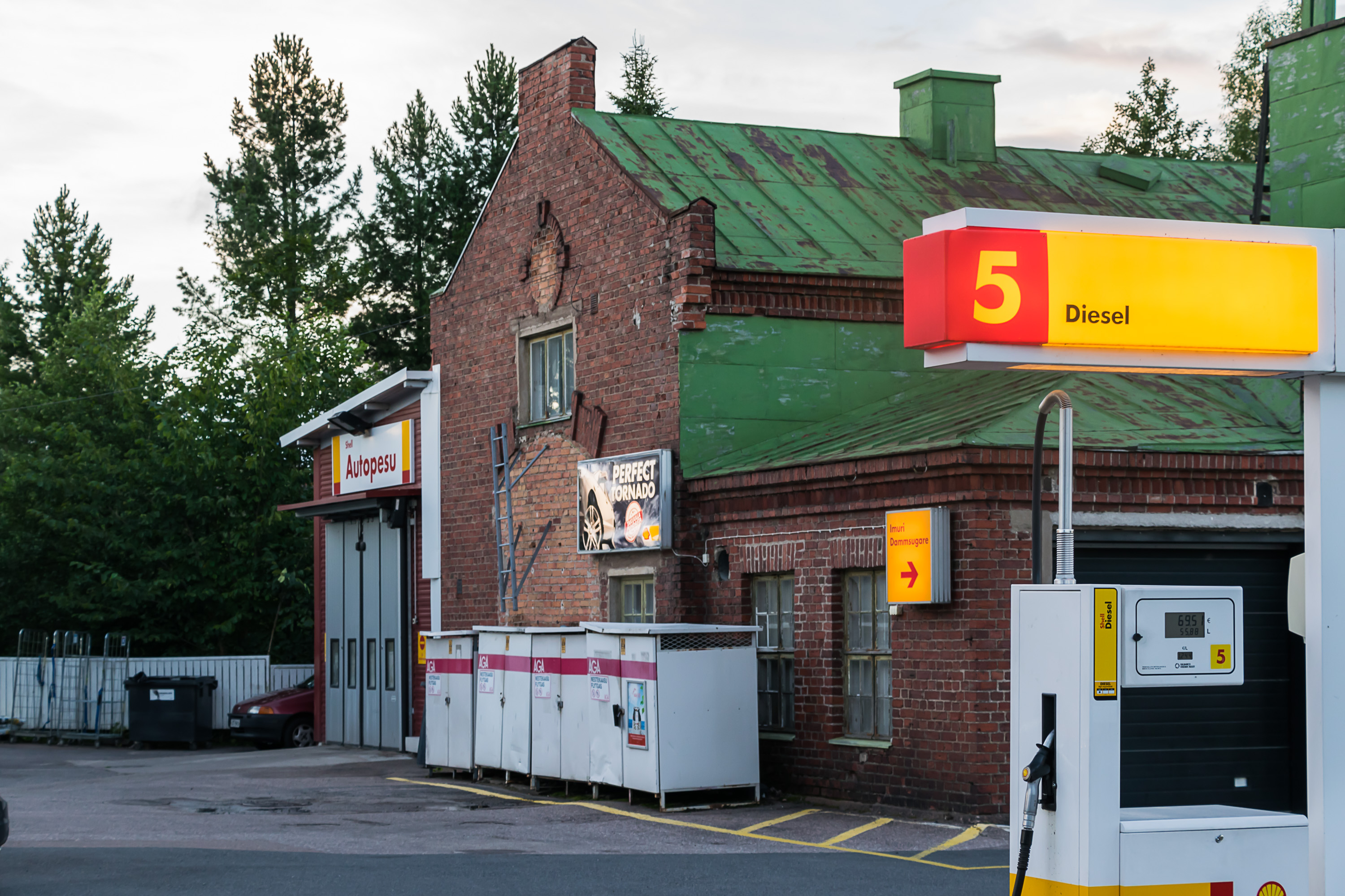 46. Маленькое индустриального вида здание за заправкой используется ею как автомойка, без особого внимания к облику здания. Нехарактерно для Финляндии.