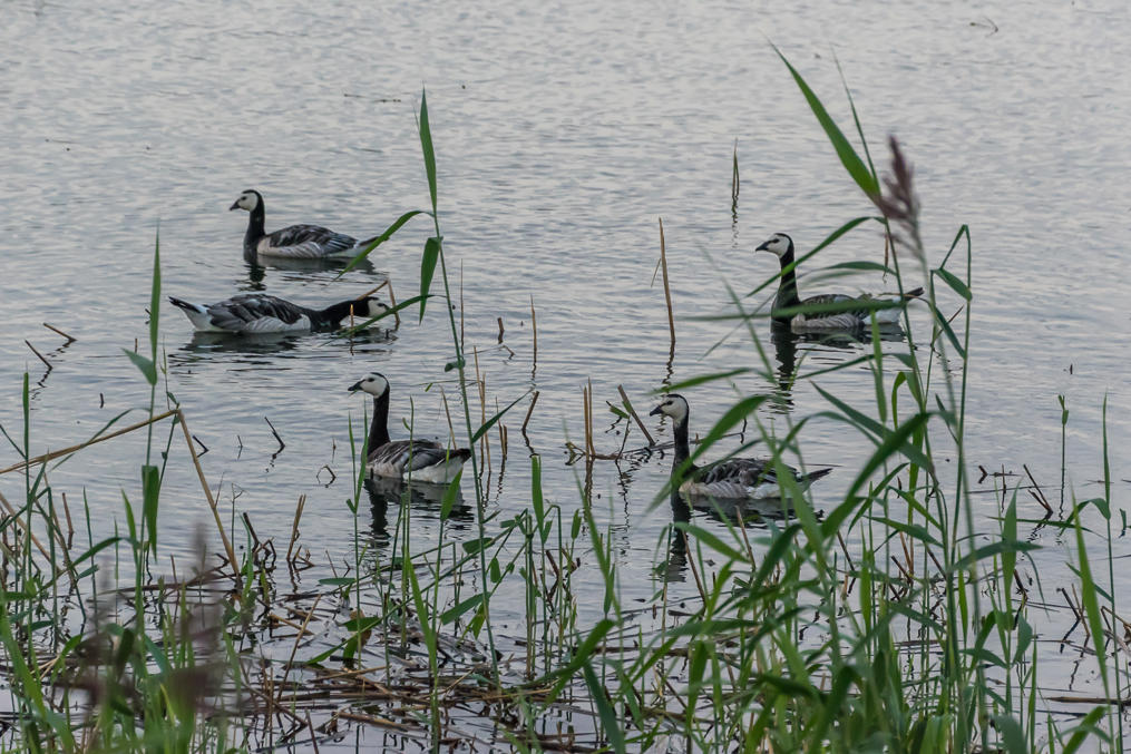 61. Иду в сумерках обратно в Тамминиеми. Казарки плавают у берега залива.