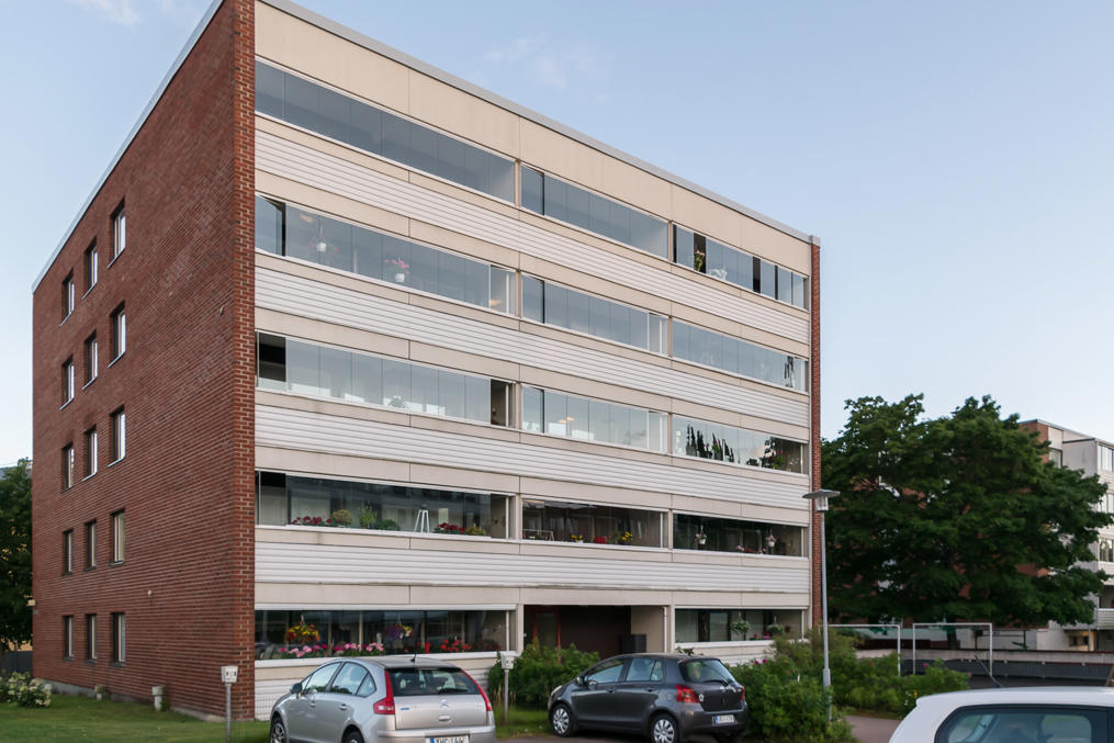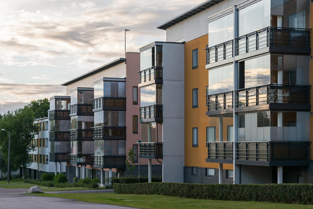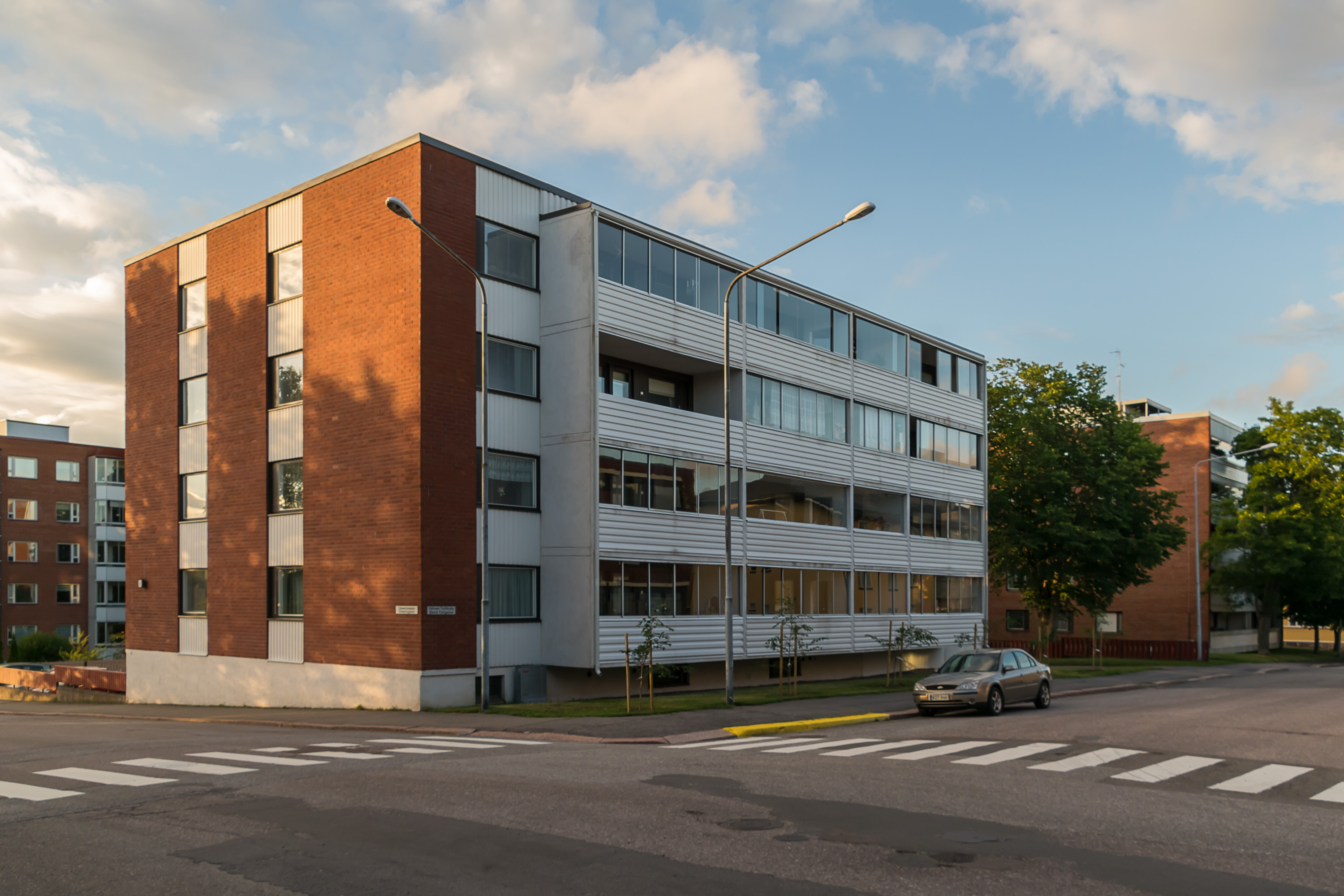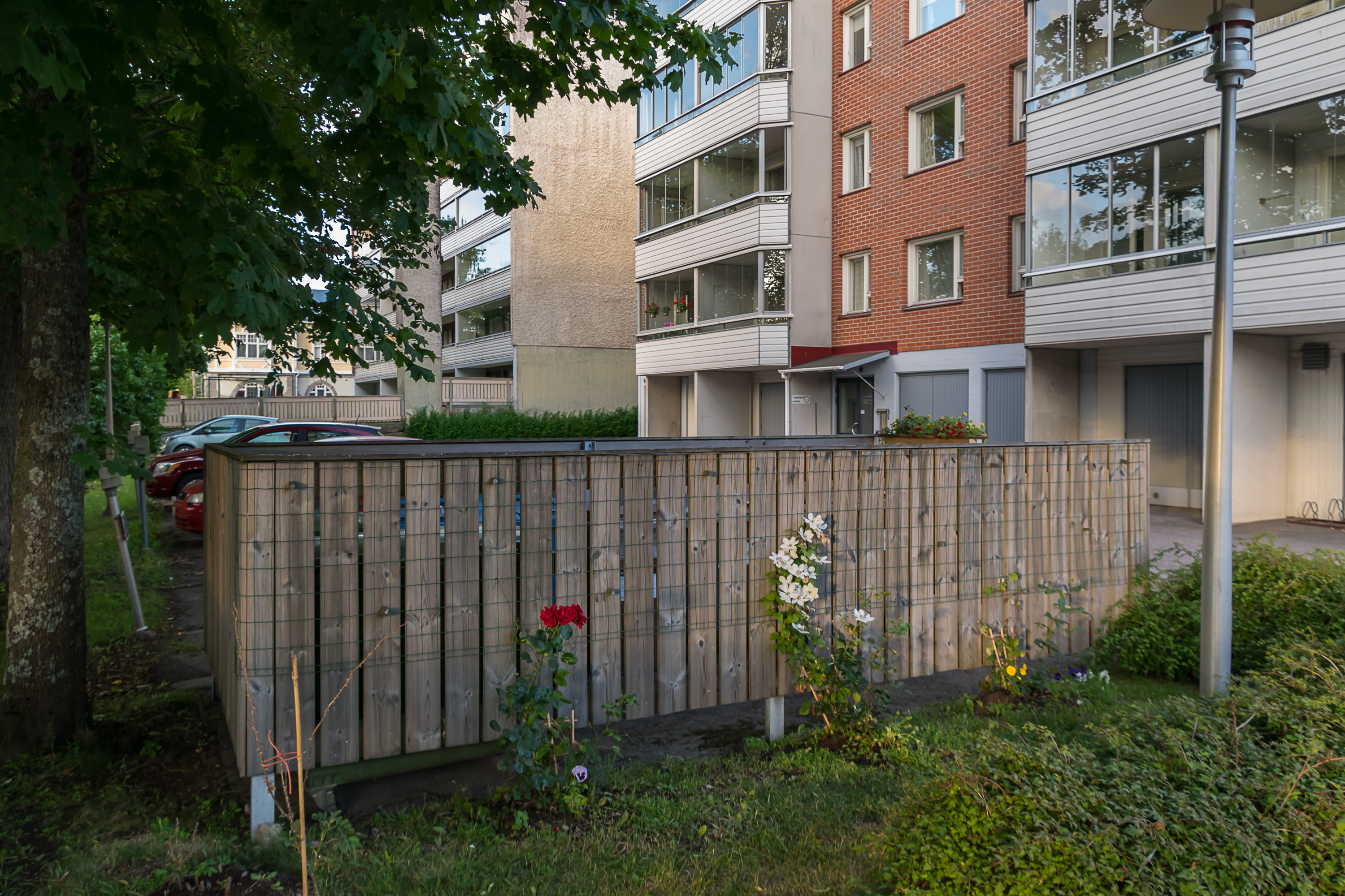 29. В финских многоэтажках (особенно поновее) часто бывают прекрасные зеленые дворики. Но не всегда. Тут вот мы имеем парковку прямо под окнами.