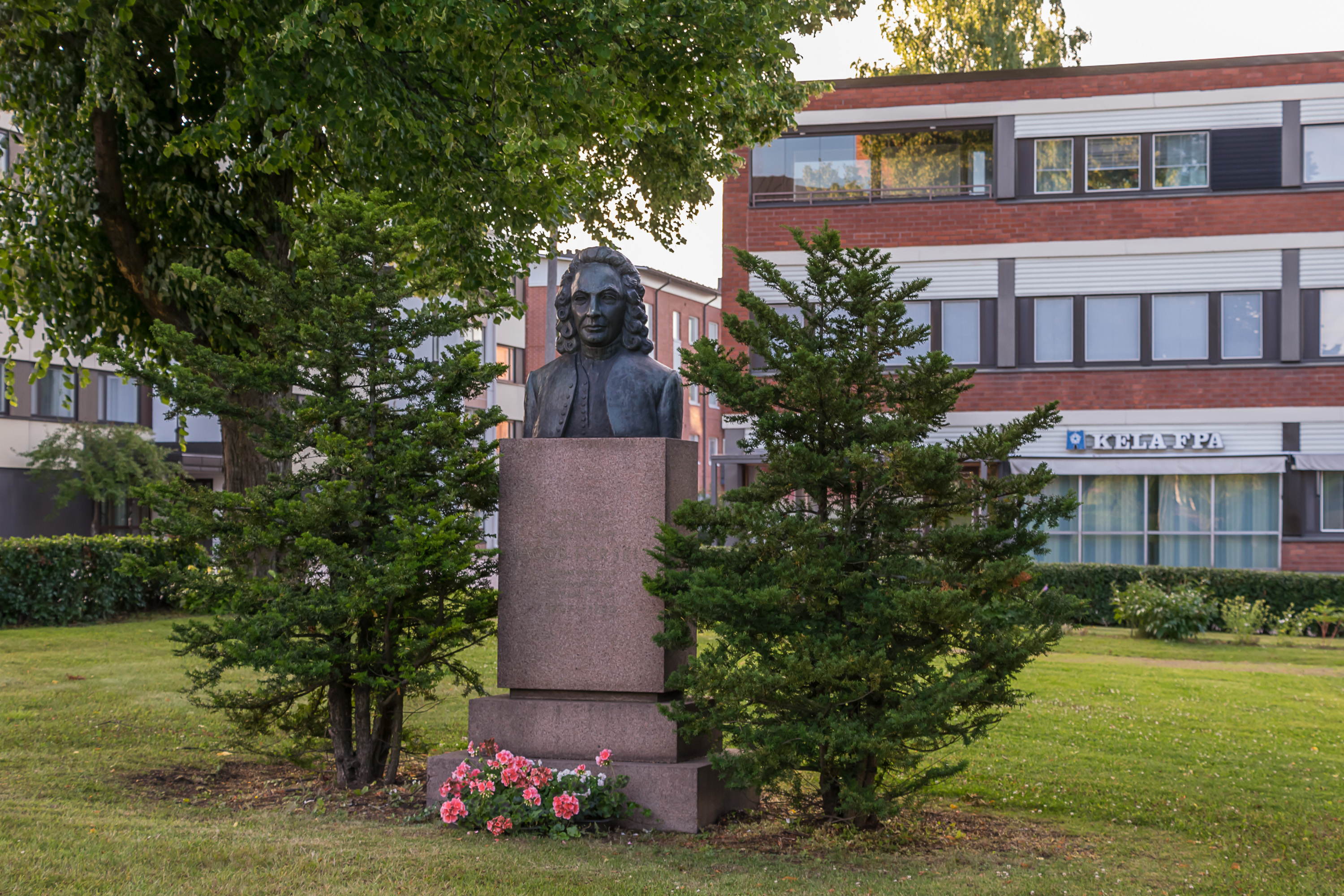 24. Памятник Якобу Форселлю (Jacob Forsell), одному из первых владельцев железообрабатывающего завода в Руотсинпюхтяя под Ловийсой, и основателю династии, которая продолжила управлять Руотсинпюхтяя еще с век или около того. В доме на заднем плане видно местное отделение "Кела", финской государственной социальной службы.