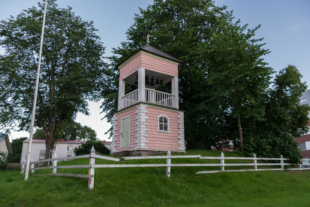 40. Странная маленькая колокольня стоит вроде бы как-то сама по себе на отшибе. Мне удалось нагуглить, что она относится к Казанской православной церкви, которая размещается в соседнем домике. Домик этот на церковь абсолютно не похож, так что мне и не пришло в голову его фотографировать. А может, я и неправильно понял, об этой церкви в интернете почти никакой информации нет, даже по-фински и по-шведски.