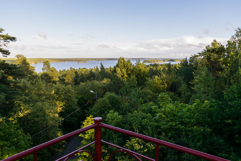 8. На вершине Мюллюхарью стоит смотровая вышка, не очень большая, зато выкрашенная в красный и с красивыми перилами. Вышка зовется Куккукиви (Kukkukivi, фин. Кукушкин камень?). Наверху сидели, культурно пили и беседовали два финна, но они вскоре спустились, так что я смог подняться наверх.