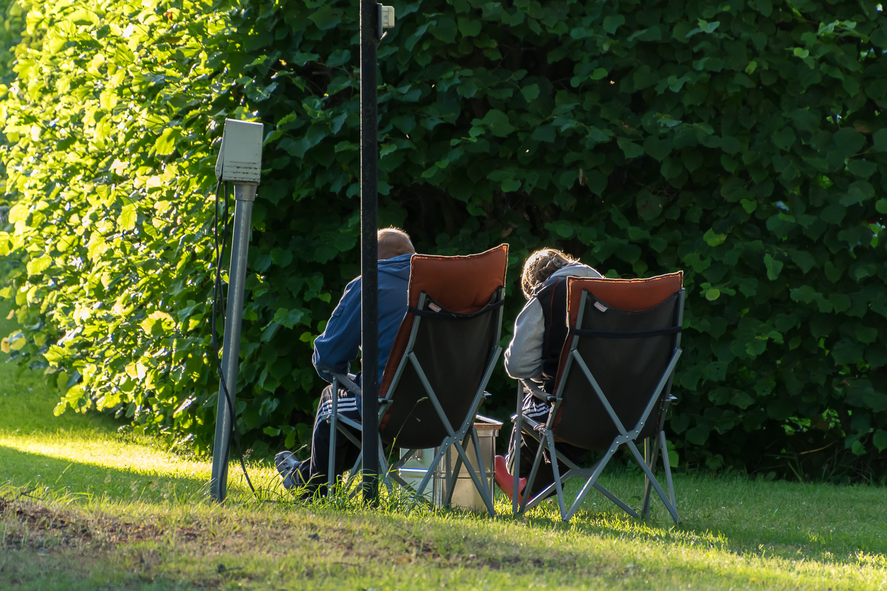4. Финны постарше расслабляются рядом со своим автодомом. А к розетке, по-моему, холодильничек с пивом подключен.