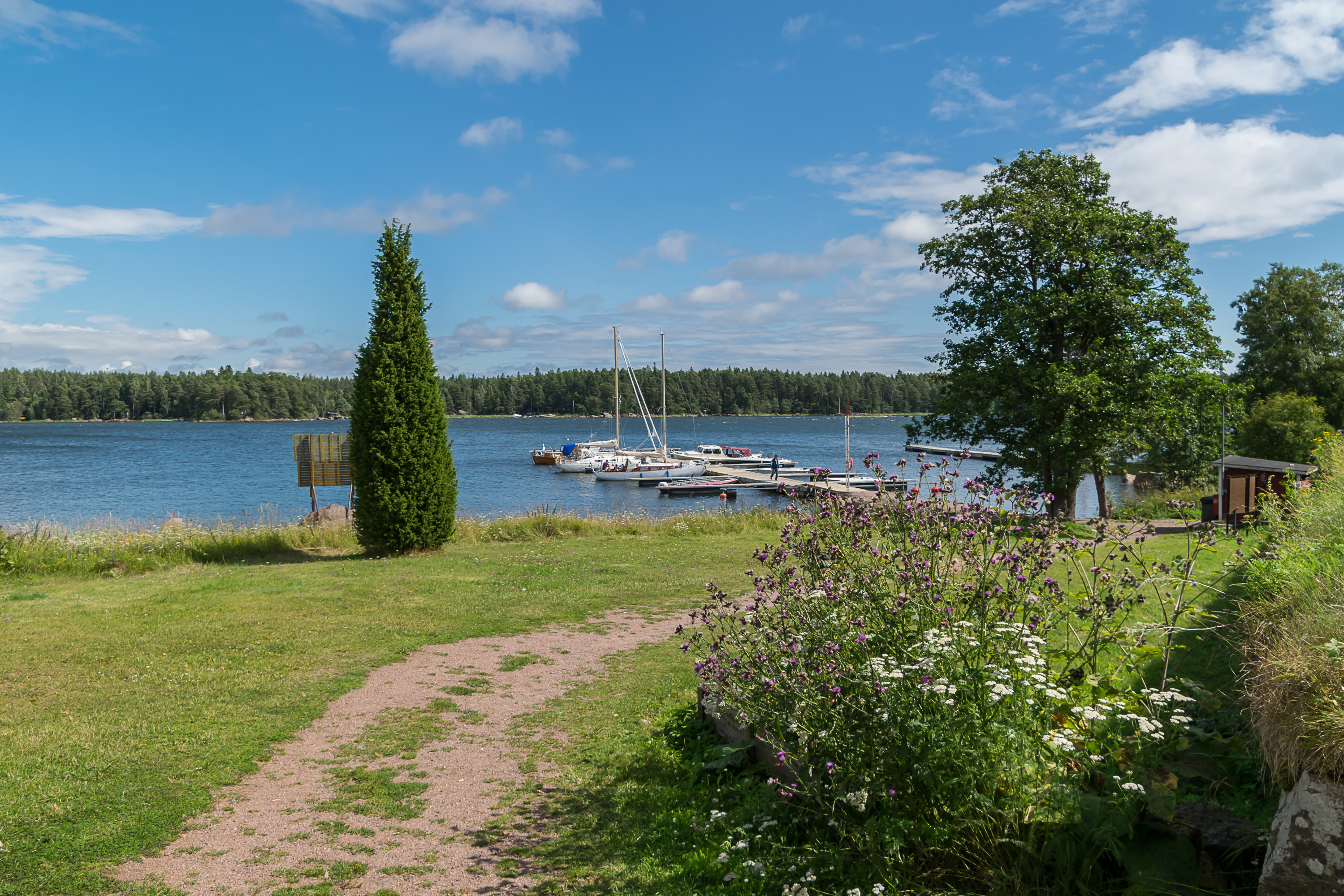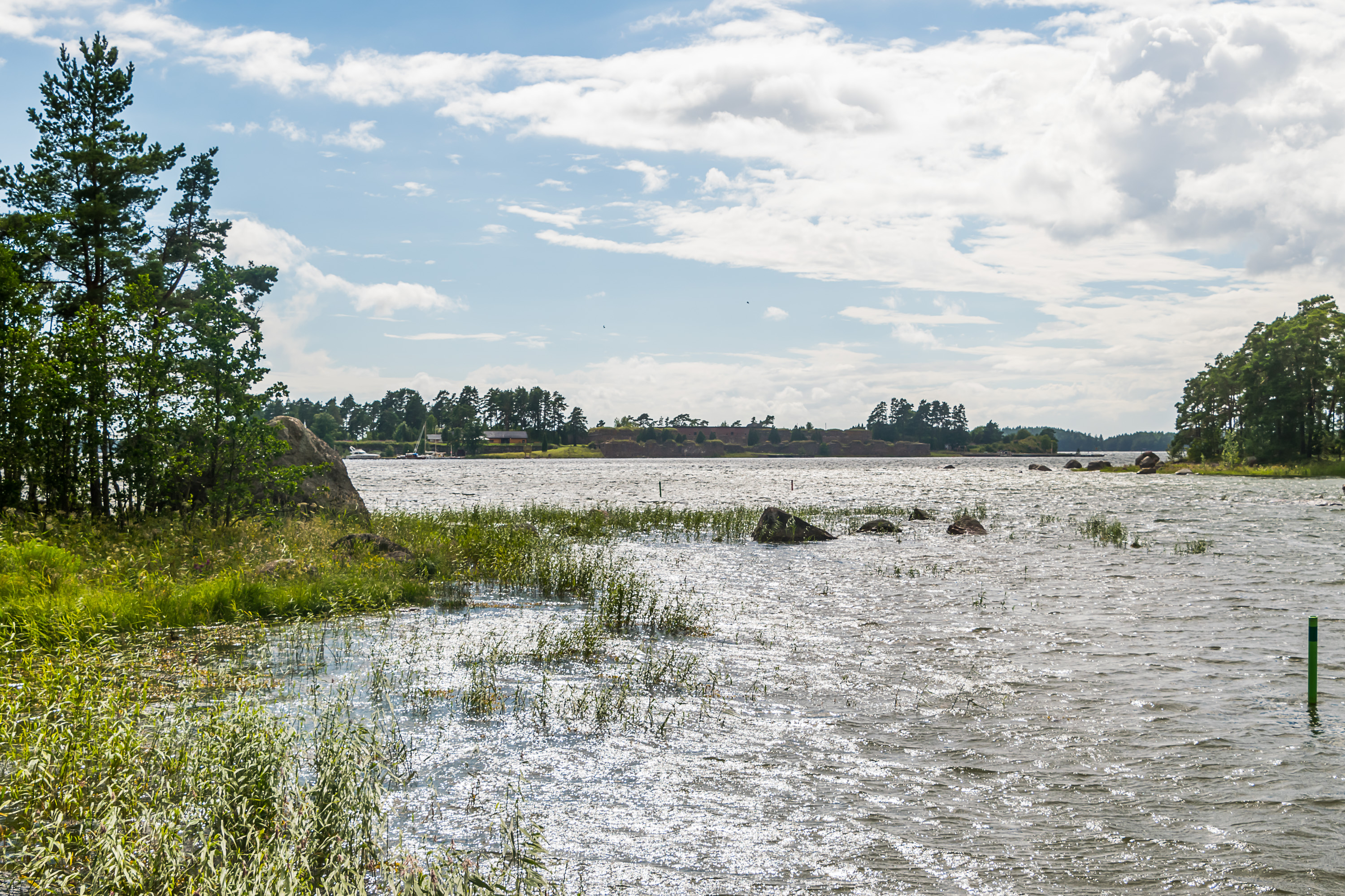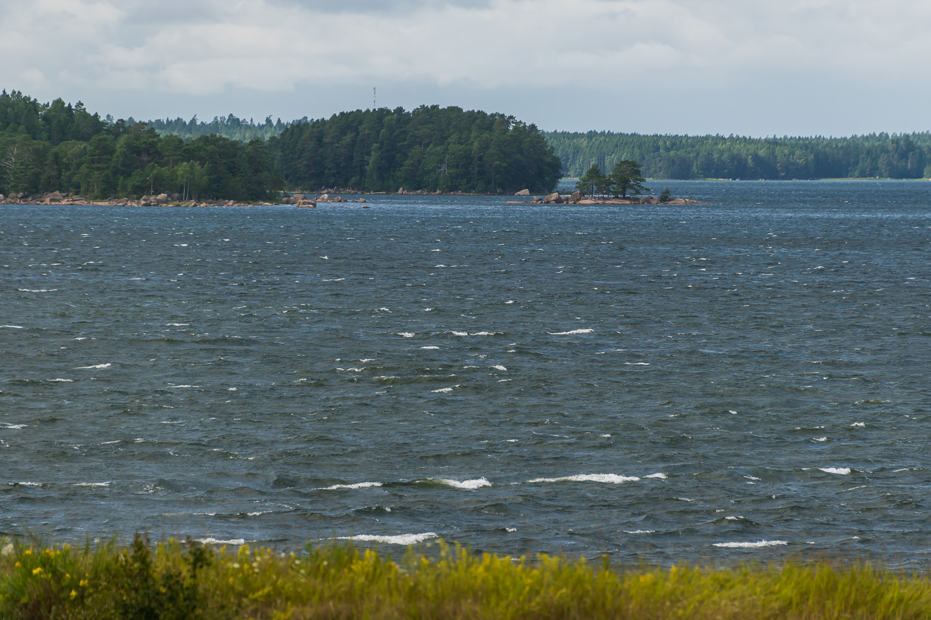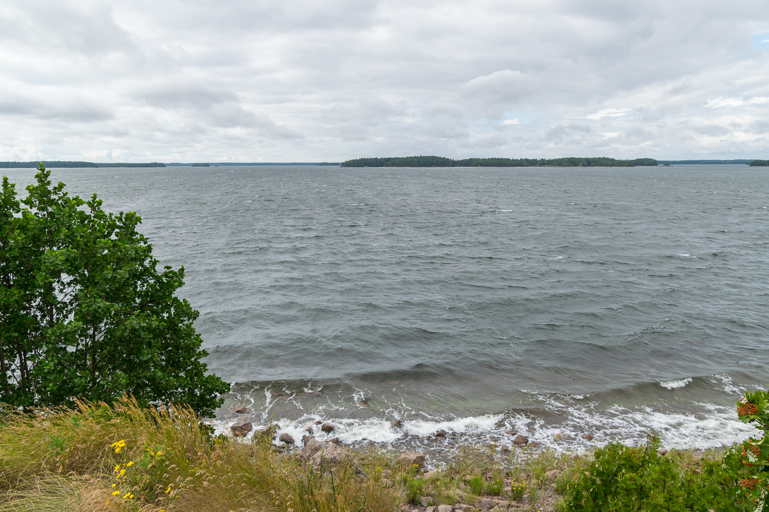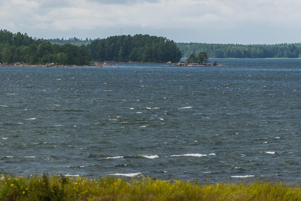 12. Море. Архипелаг (мне нравится, как по-шведски будет "архипелаг" — "шергорд", skärgård) продолжается к югу — Свартхольм находится недостаточно далеко от берегов, чтобы тут было совсем открытое море. Его кусочек виден на горизонте только на юго-востоке.