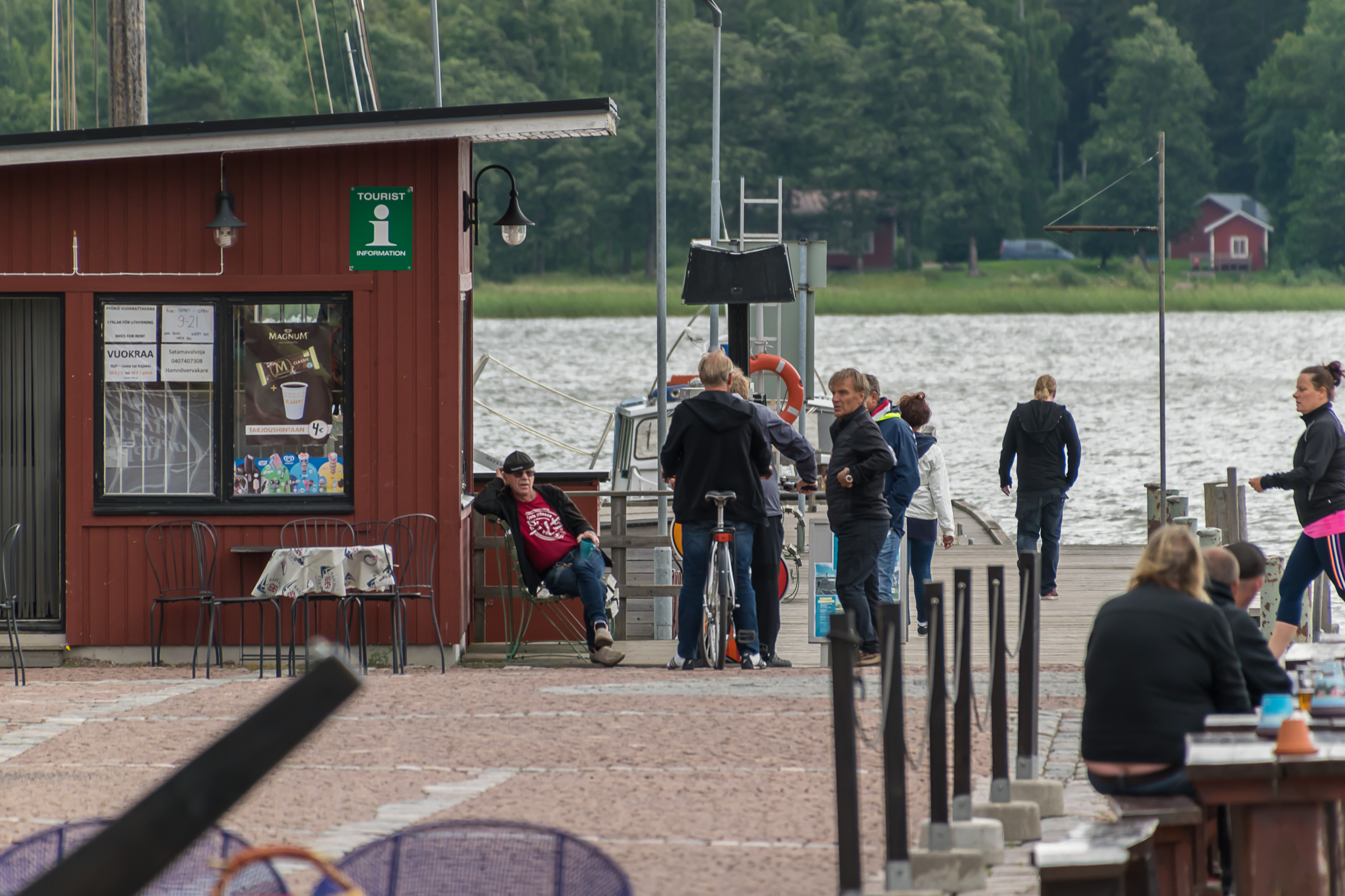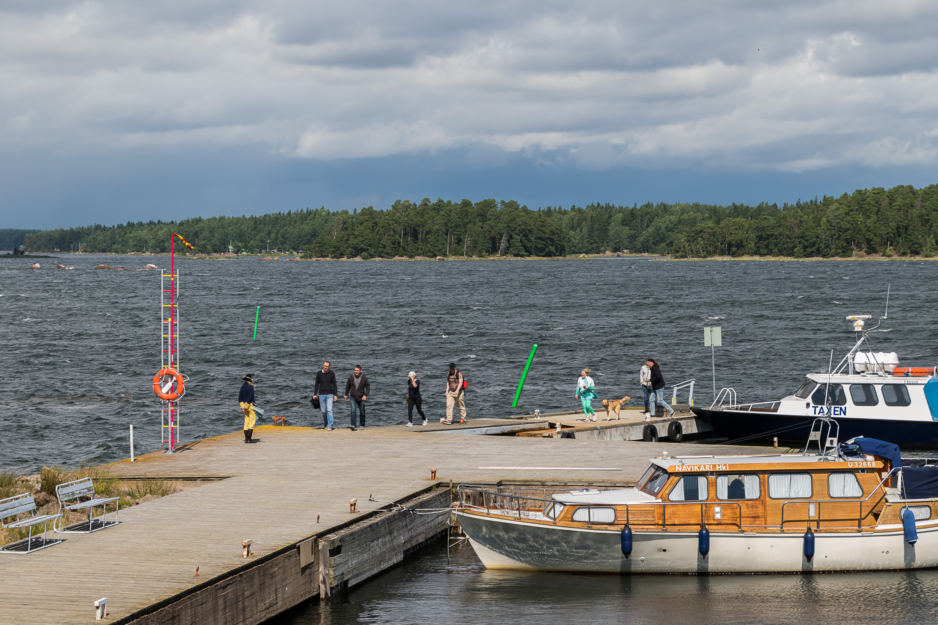 3. Местный народ, правда, выглядел слегка с похмелья. Но может они всегда так воскресным утром-то. Свартхольмский катер пришлось поискать — указателей никаких нет, и он стоит в самом конце длинного пирса (на заднем плане посередине фото). Нашел в конце концов, конечно.