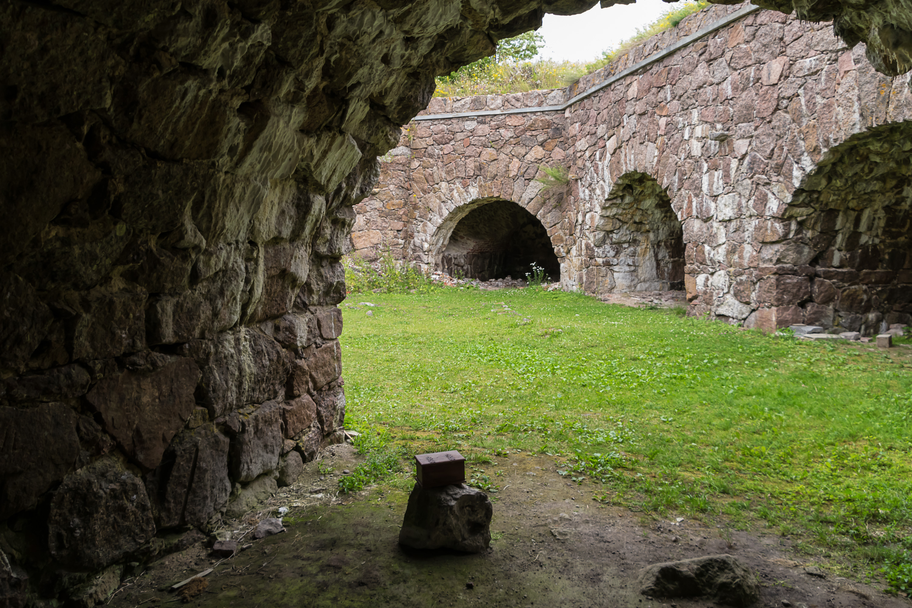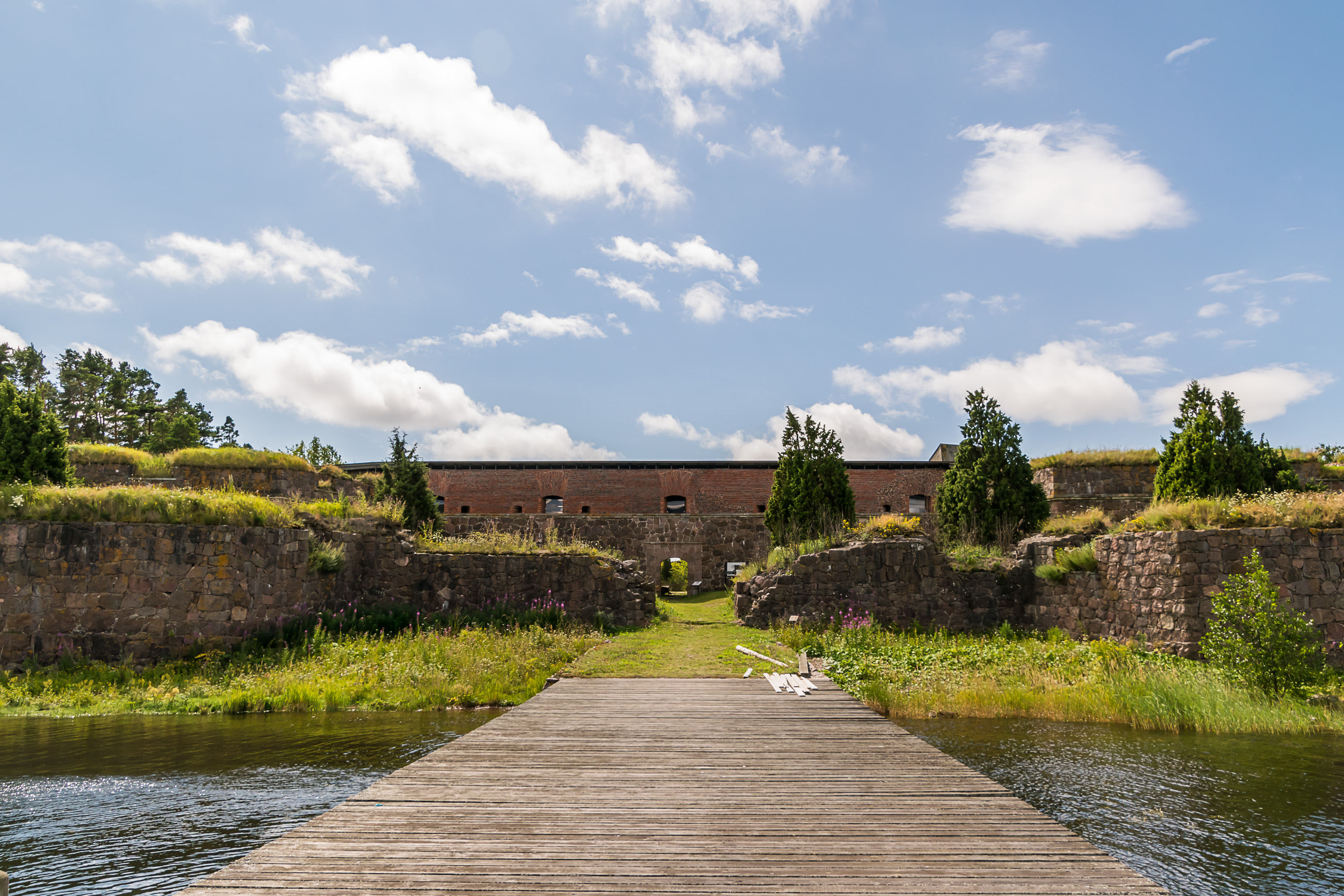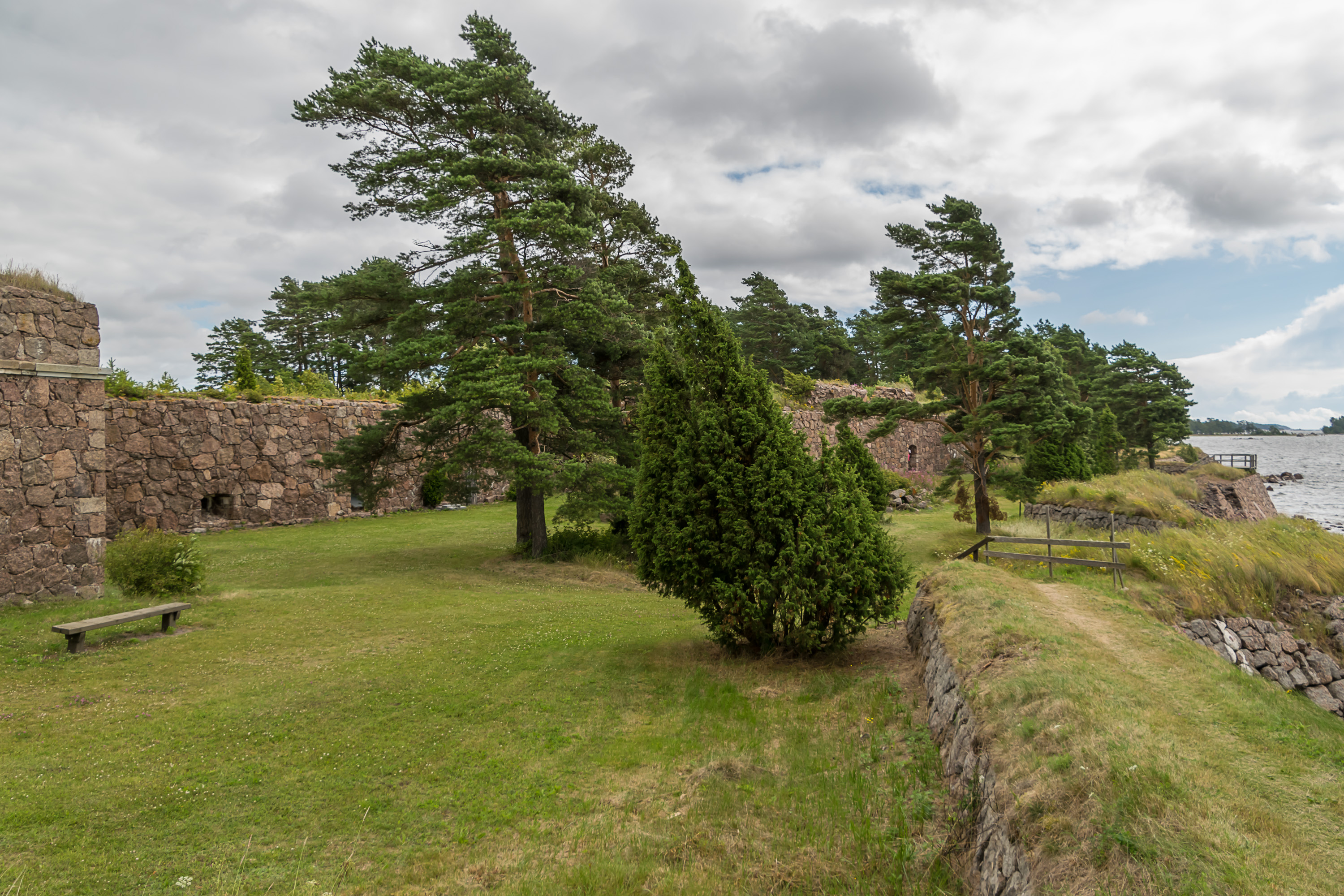 Я вкратце описал историю Ловийсы и Свартхольма в предыдущем посте, так что тут длинного урока истории не будет. Крепость сооружалась под началом фельдмаршала Августина Эренсверда (тот же парень, что построил Суоменлинну) после Войны Шляп 1741-1743 года. Она имела квадратную форму, с четырьмя бастионами по углам, двумя равелинами рядом с крепостью, и внешней стеной неправильной формы вокруг острова. Крепость использовалась в качестве военно-морской базы, но ввиду недостаточного финансирования и так и не завершенного строительства она не смогла оказать серьезного сопротивления в Финской войне 1808-1809, и сдалась русским. После присоединения Финляндии Россией крепость использовалась как тюрьма. Здесь сидели некоторые декабристы (хотя их, по-моему, и так по всем крепостям в стране распихали). Свартхольм был обстрелян и разрушен британским флотом в Крымскую войну в 1855 году, хотя он на них не лез и вообще военного значения уже не имел. Развалины хорошо сохранились, и во второй половине 20 века крепость частично восстановили. В наши дни Свартхольм — как идеальное место для пикников, так и исторический памятник; в Ловийсу стоит приехать ради одного только Свартхольма. Принадлежит Свартхольм Метсяхаллитусу, финскому Лесному ведомству.