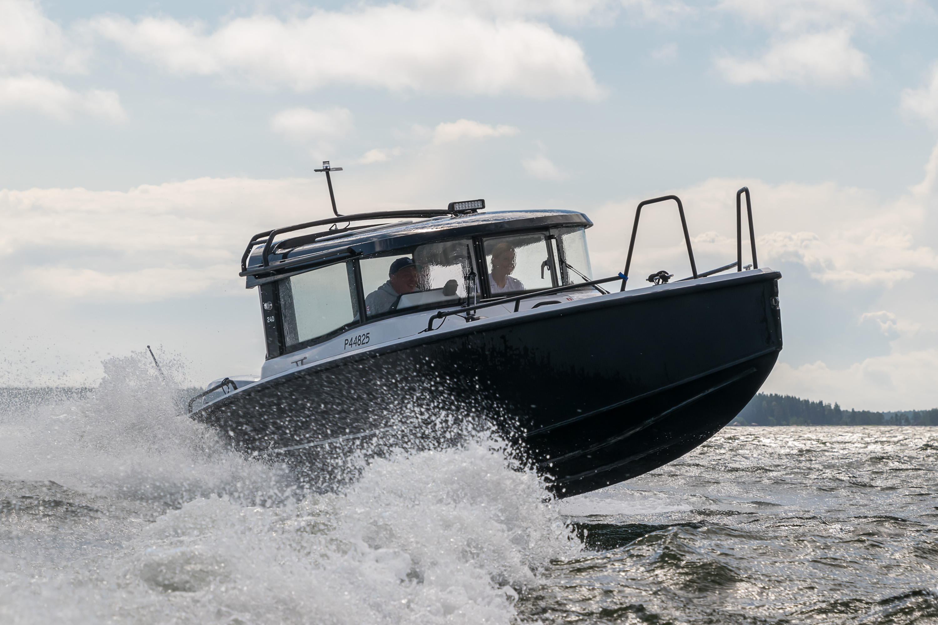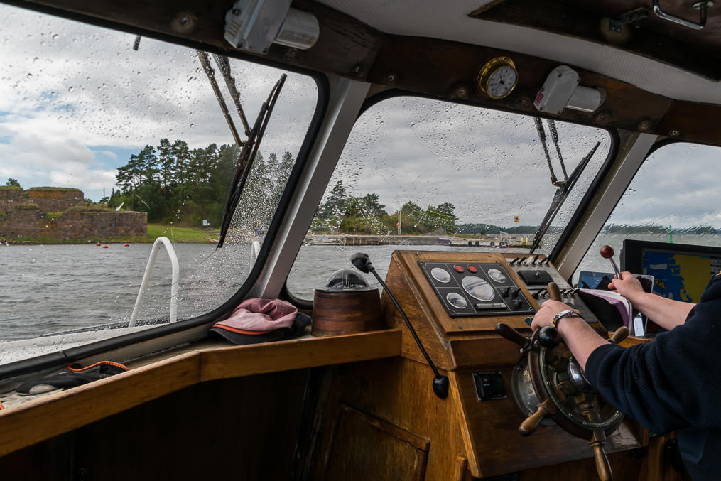 4. Плыть в Свартхольм само по себе уже довольно увлекательно. Катер маленький и весело скачет по верхушкам волн, а окна иногда целиком обдает водой — абсолютно не те ощущения, как, например, на суоменлиннских паромчиках в Хельсинки. Сзади катер открытый, интереснее всего сидеть там. Управляет им женщина лет пятидесяти, и мужик ей помогает. Дорога занимает чуть менее получаса.