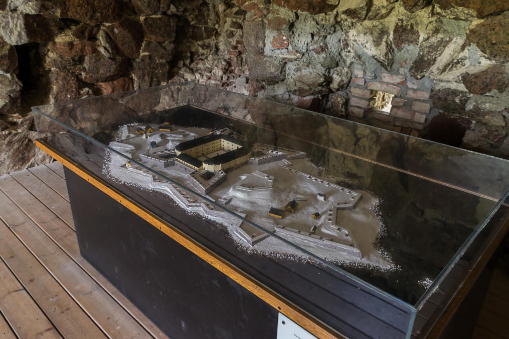 21. Маленькая экспозиция (бесплатная) в севером здании казарм, точнее, над его руинами. Так Свартхольм выглядел целым. В принципе он и сейчас примерно так и выглядит, только квадратное здание посередине разрушено, а от остальных мелких домиков не оставлось и следов. И сосен еще много выросло.
