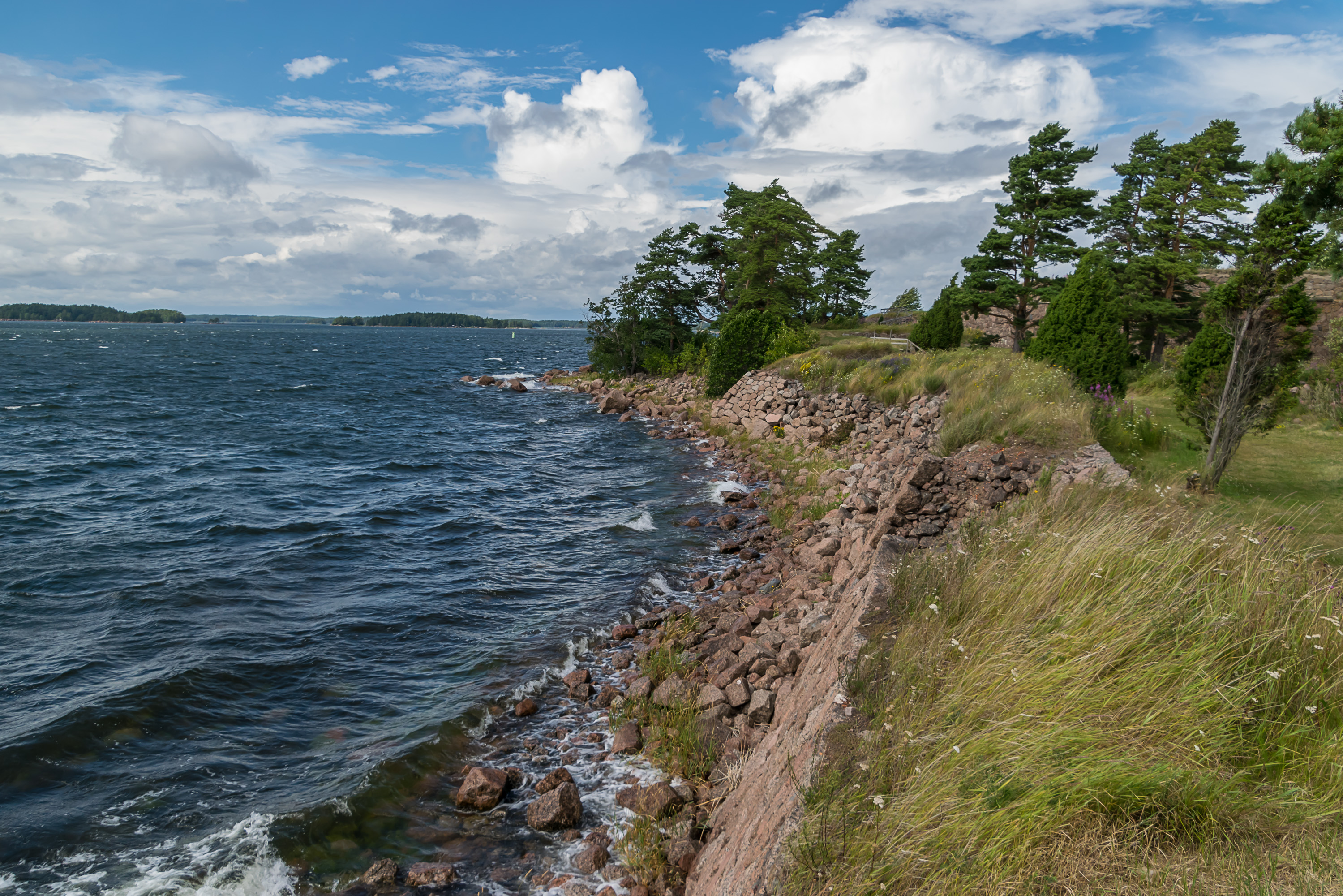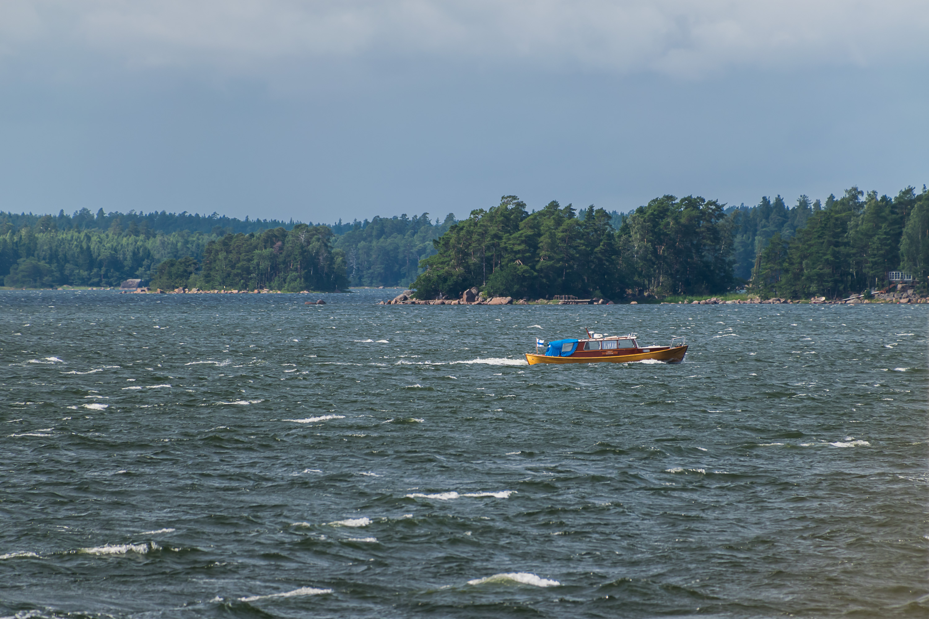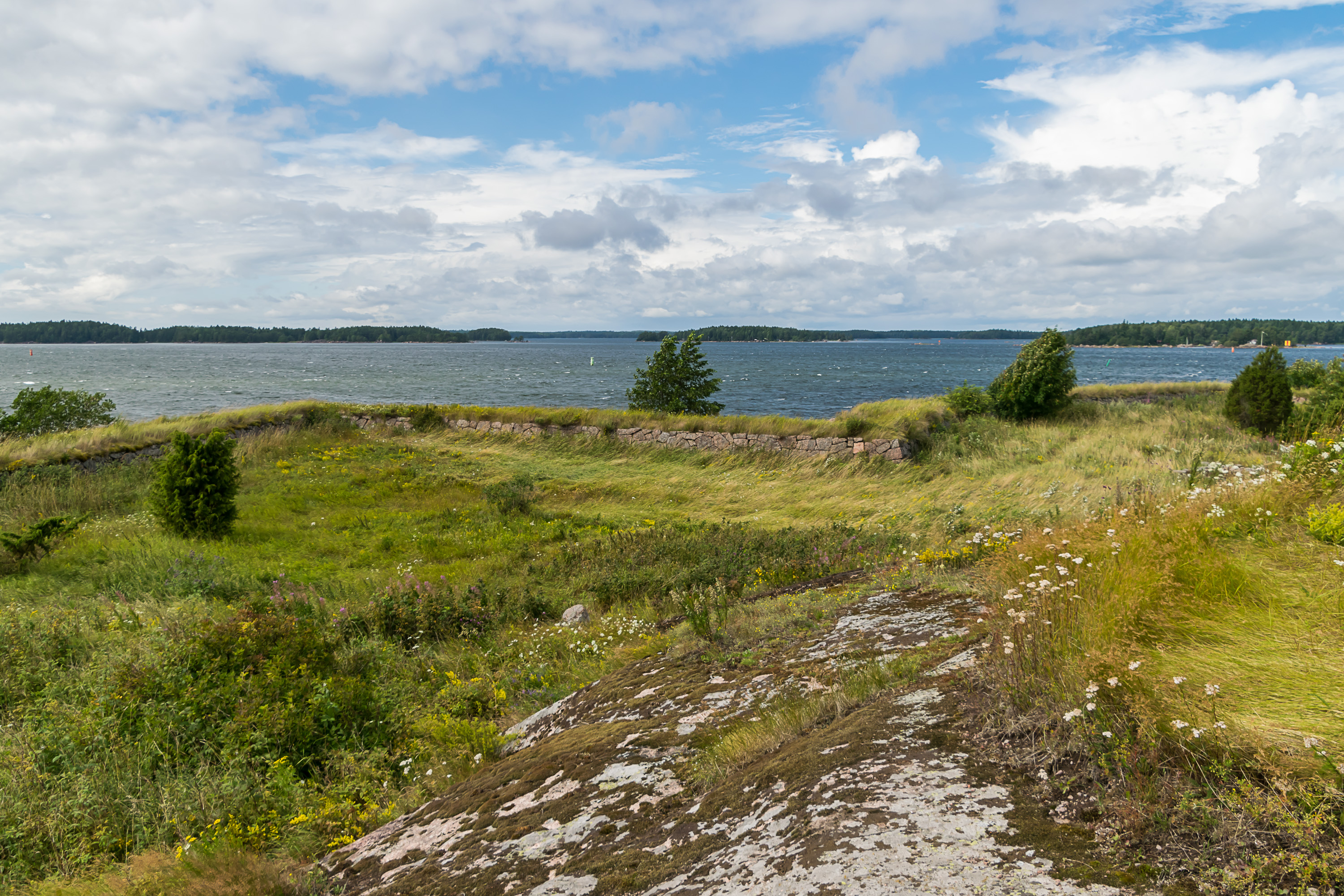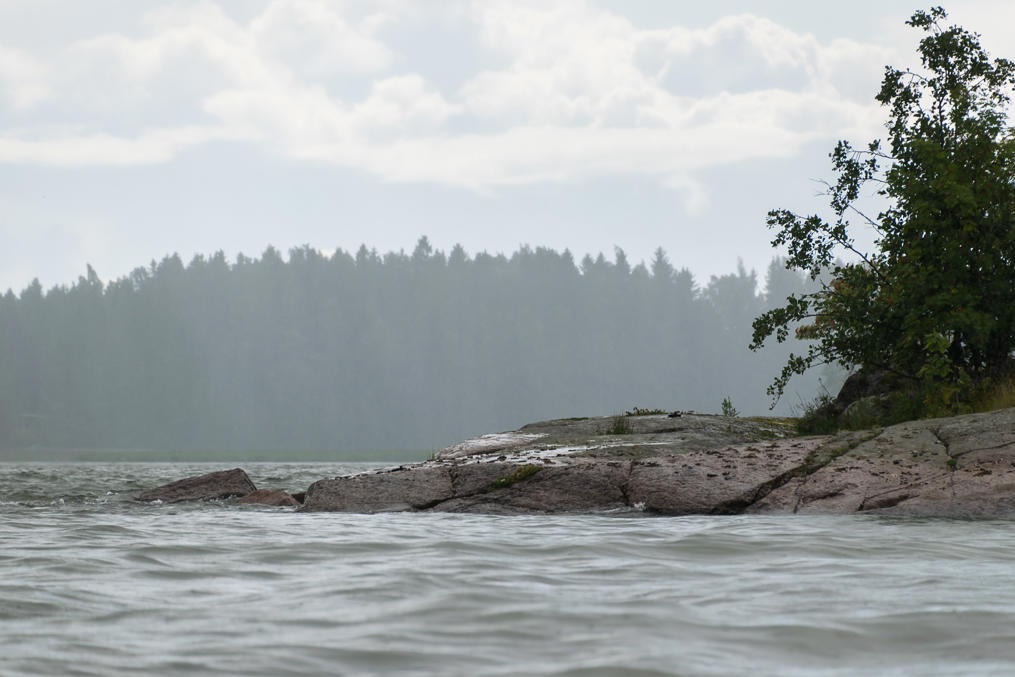 52. Проходим мимо каких-то шхер. На обратном пути начался ливень, достаточно сильный, чтобы я капитально вымок, пока бежал от катера к машине. Там я немножко его переждал и поехал к началу тропы Эренсверда, чтобы осмотреть береговую крепость, про которую будет следующий пост.