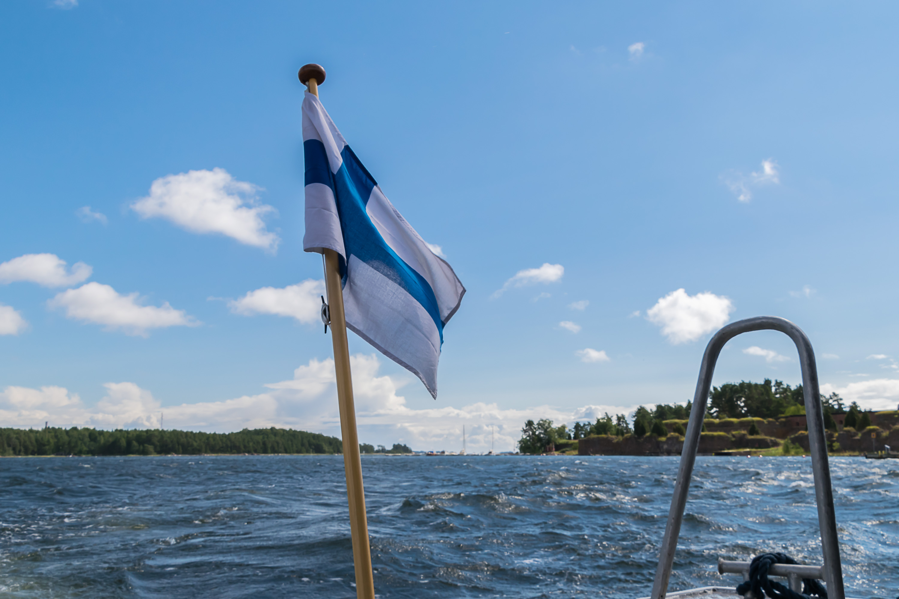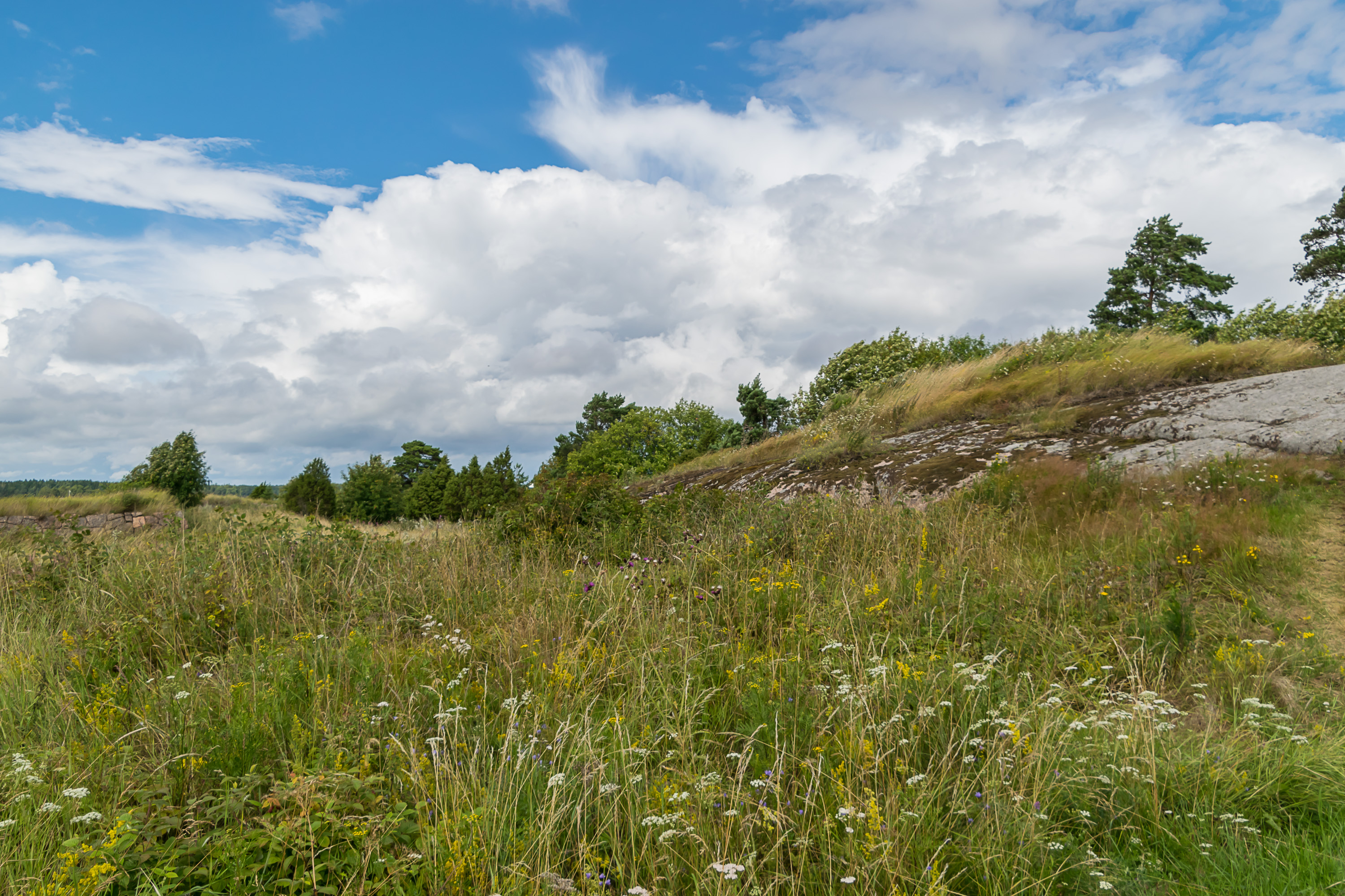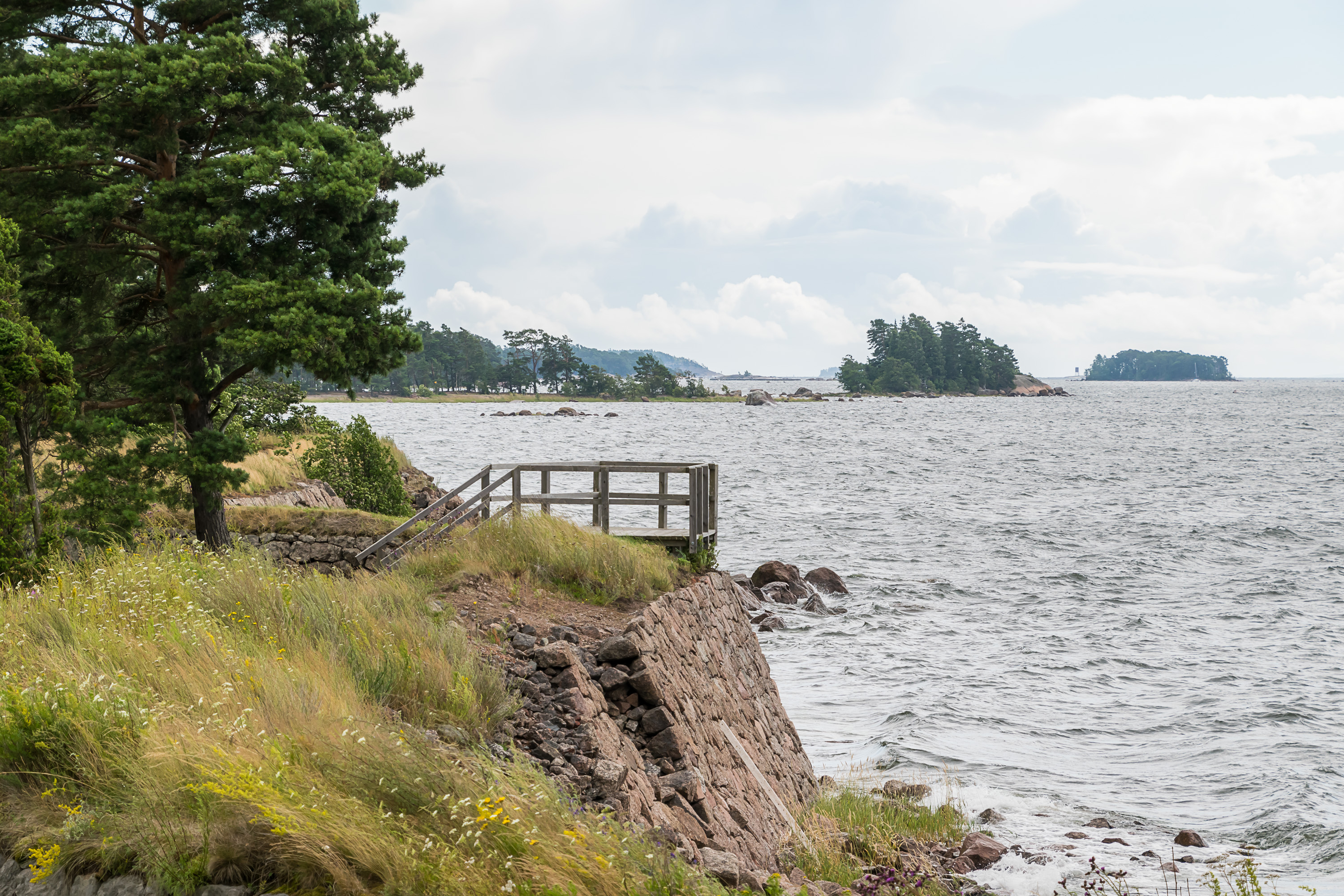 52. Проходим мимо каких-то шхер. На обратном пути начался ливень, достаточно сильный, чтобы я капитально вымок, пока бежал от катера к машине. Там я немножко его переждал и поехал к началу тропы Эренсверда, чтобы осмотреть береговую крепость, про которую будет следующий пост.