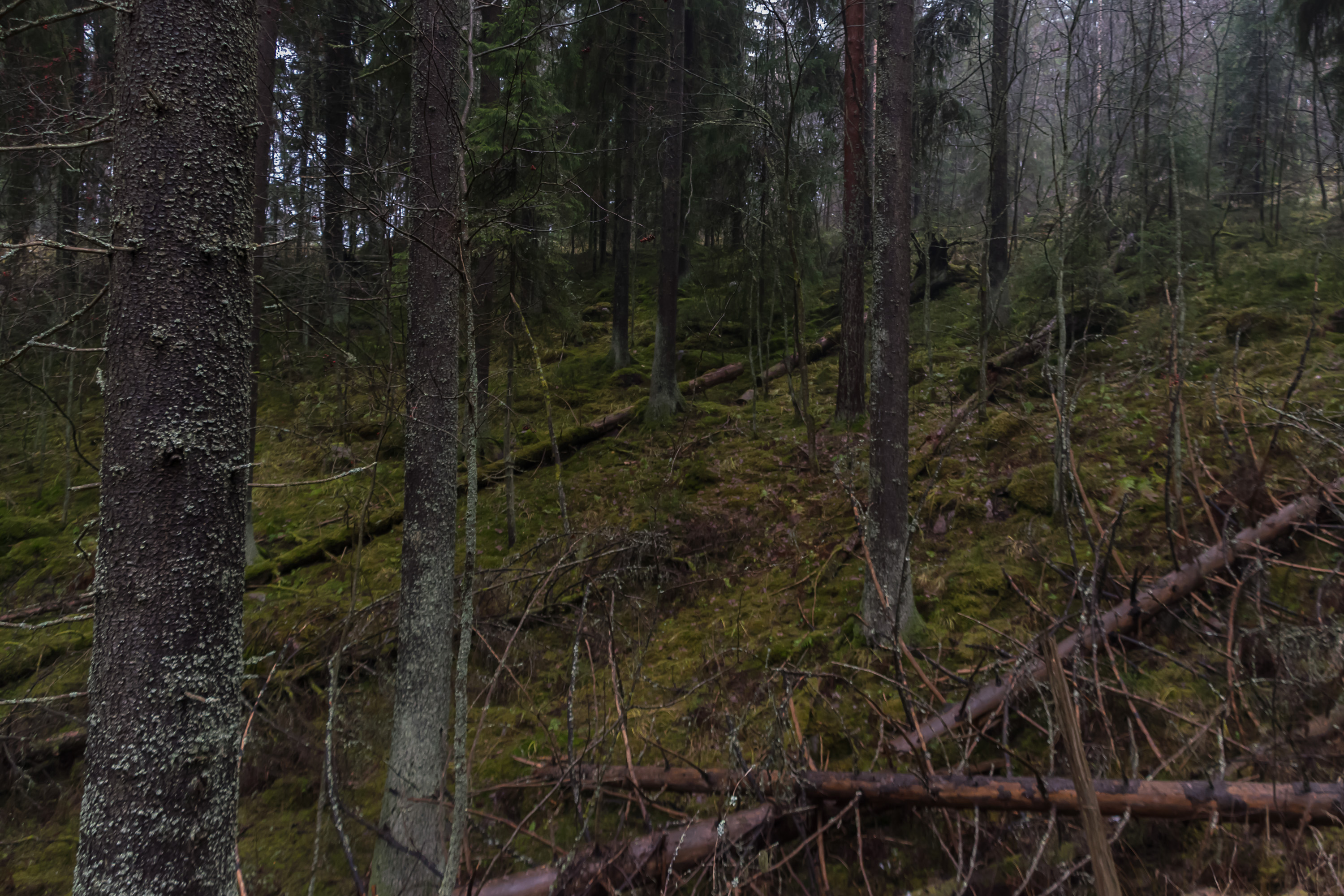 12. Пересекаем один из холмиков пониже. Большая часть Лахти довольно плоская, но при этом местами торчат довольно крутые холмы, в основном поросшие нетронутым лесом.