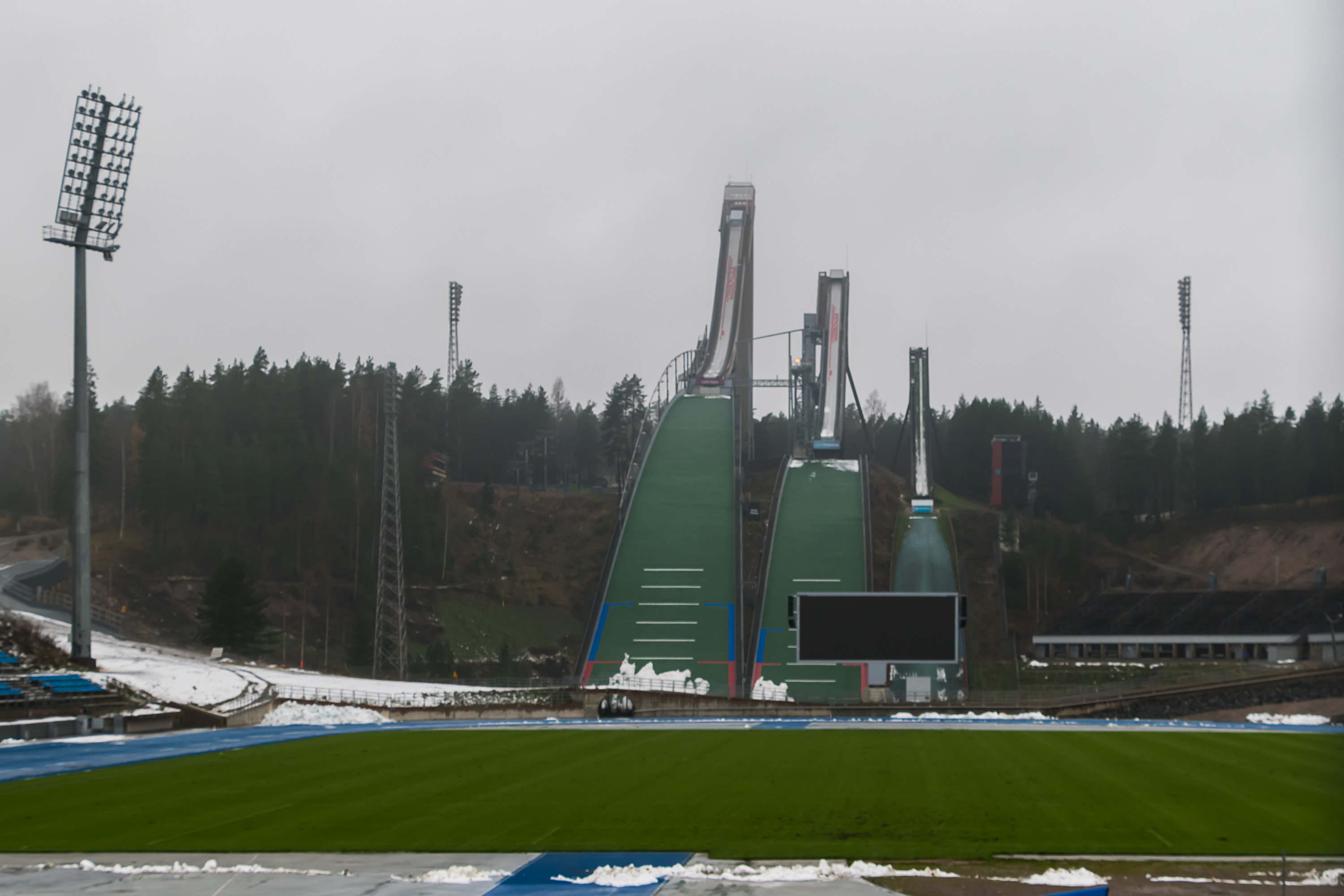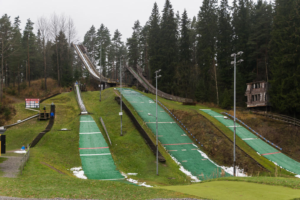 28. За "Зимней страной Рёлли" есть еще пять лыжных трамплинов гораздо меньше, предназначенных для детей. И на них, натурально, тренировались дети! (для этих трамплинов снег не обязателен, хотя и для больших на самом деле вроде как тоже не обязателен)