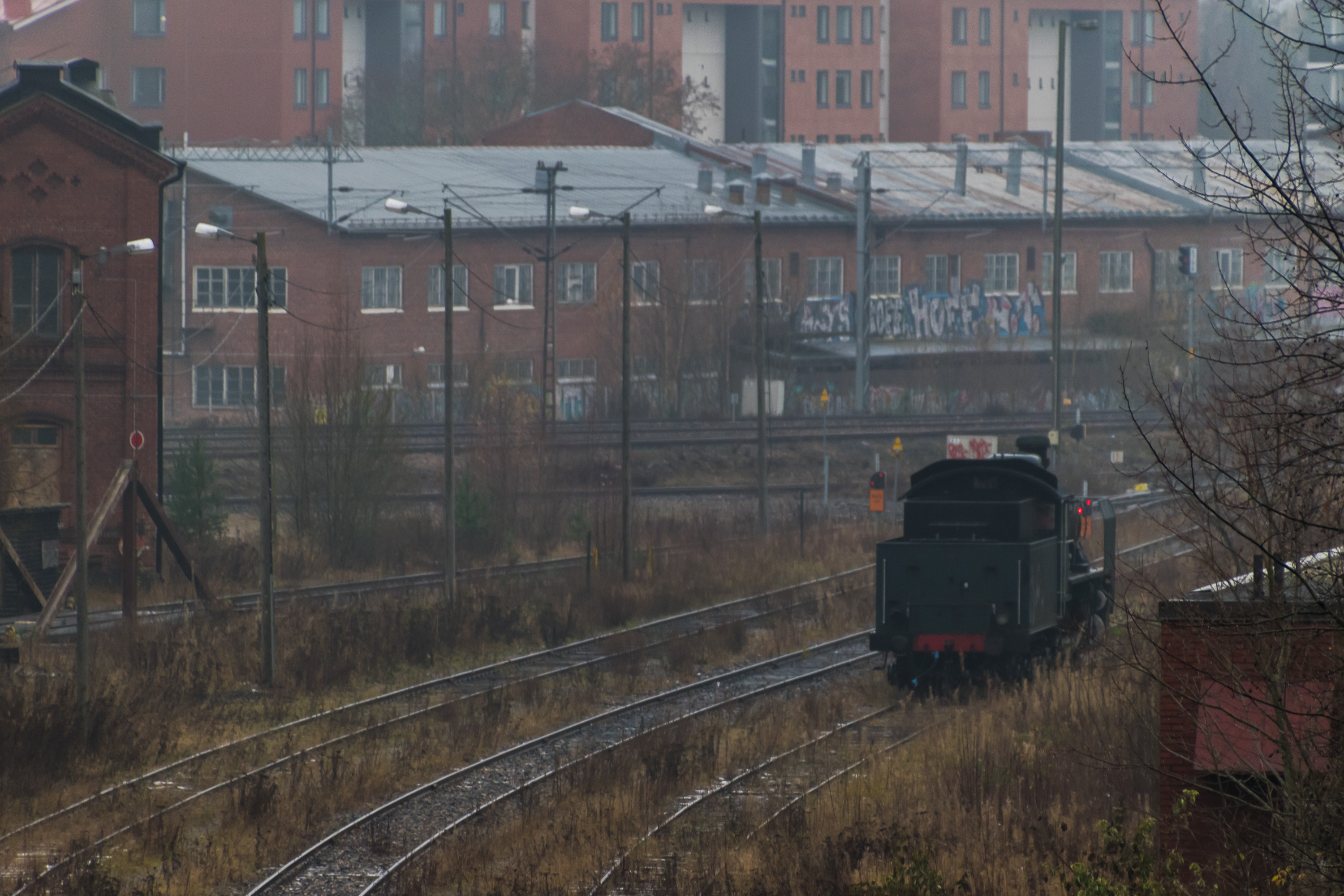 20. Возможный паровоз стоит на коротком подъездном пути, который раньше вел в озерный порт Весиярви. Старый порт был перестроен и грузового порта там больше нет, так что подъездной путь частично разобран.