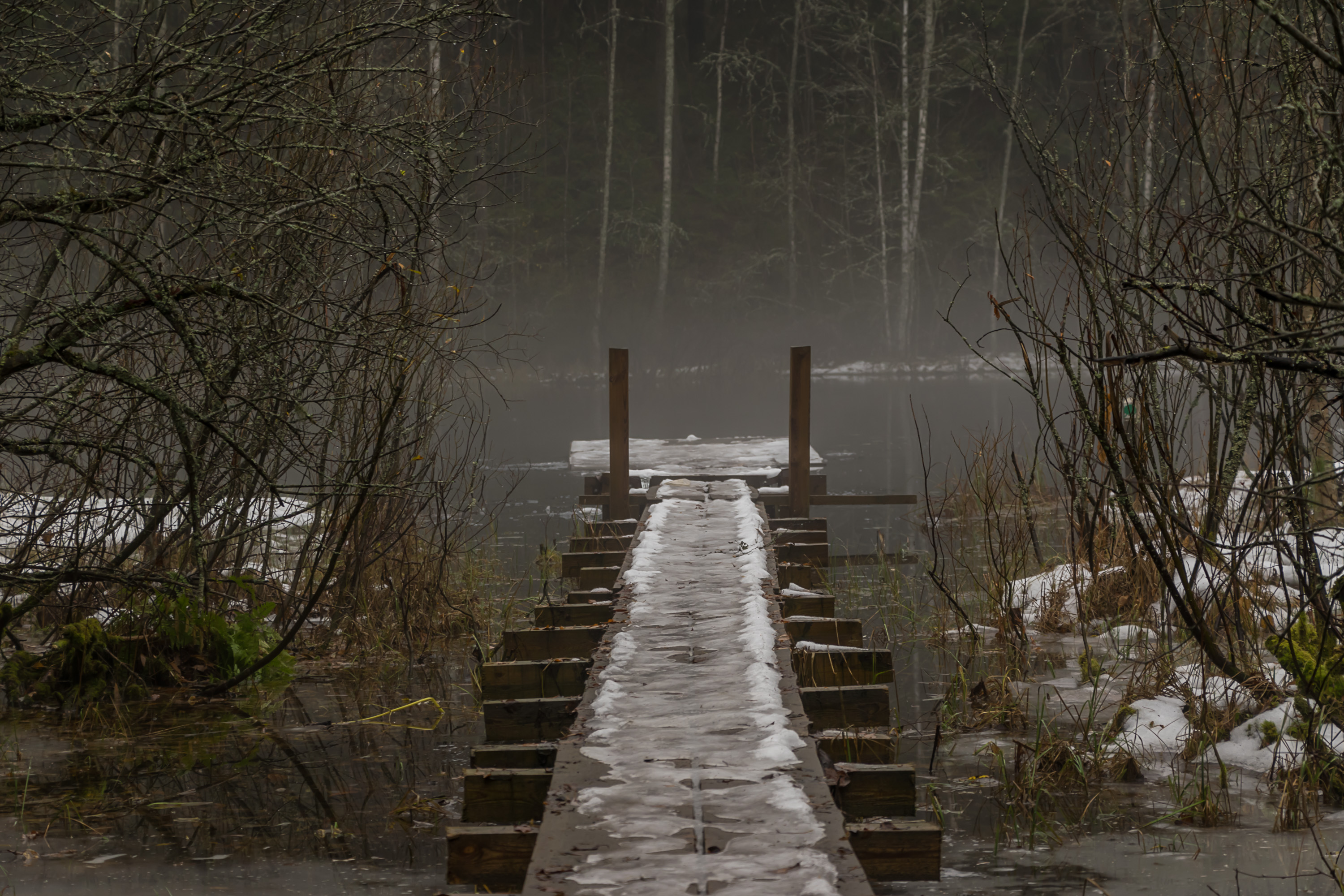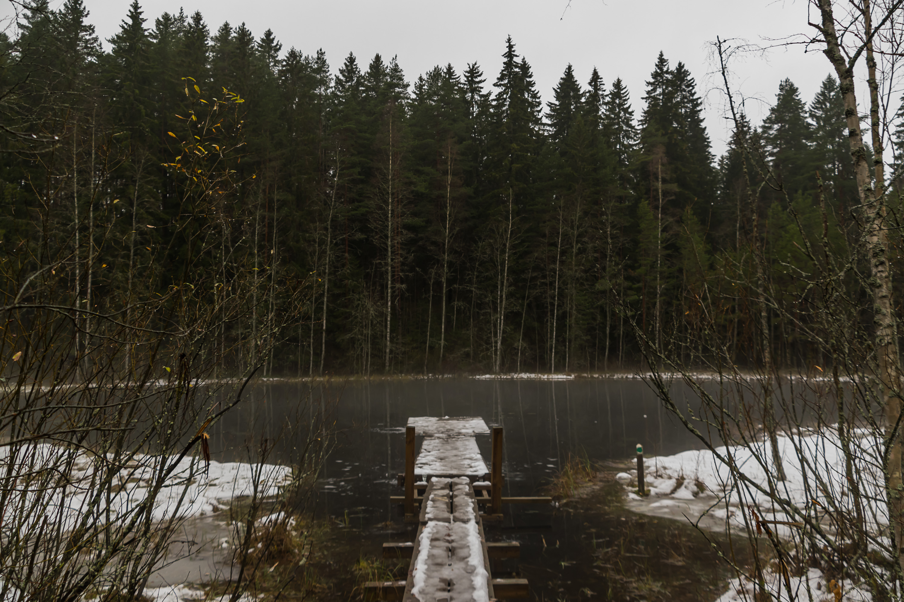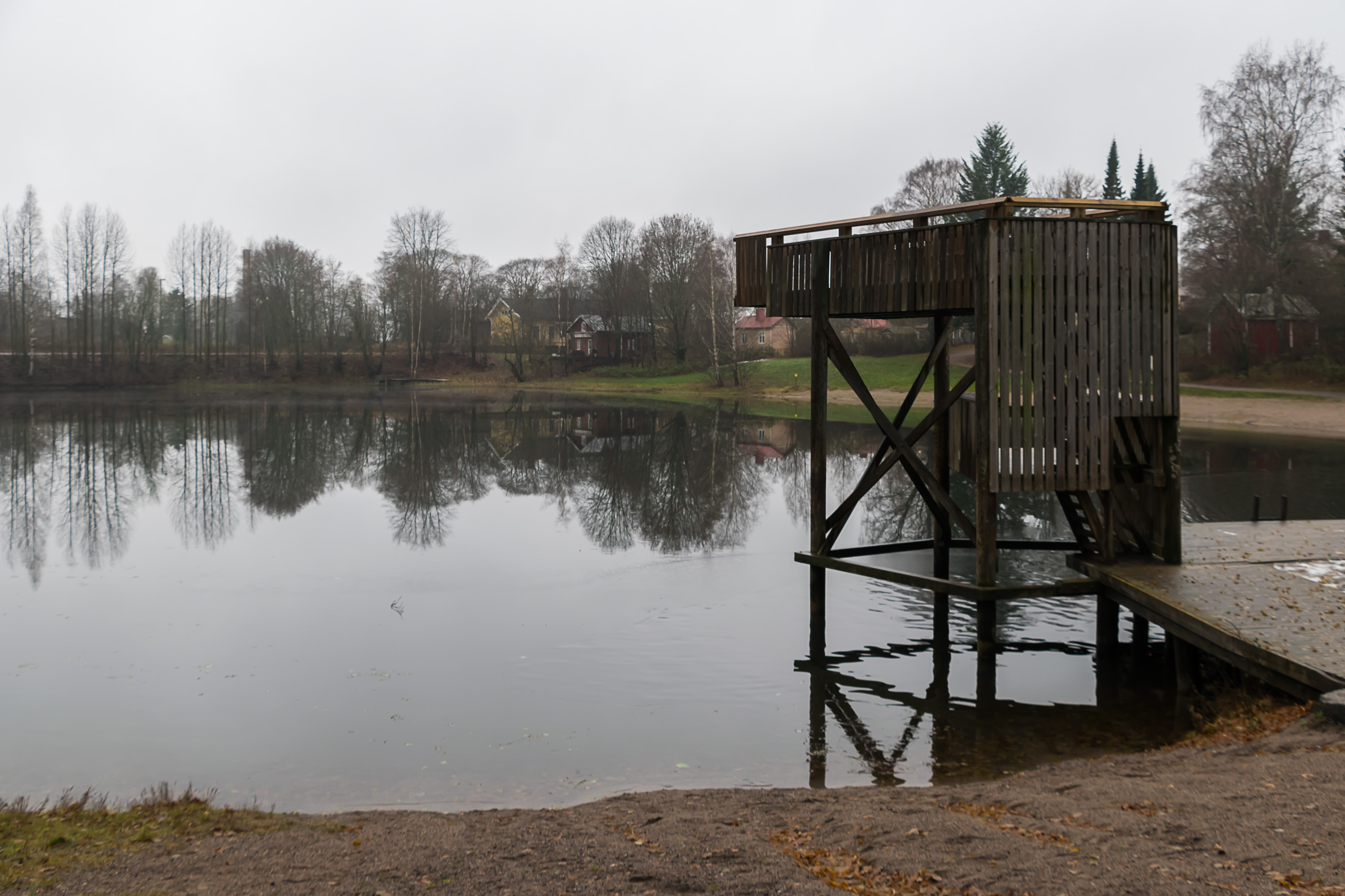 Ноябрь в Финляндии не очень любят. По-фински он называется marraskuu, что буквально означает "месяц смерти". Дни уже очень короткие, погода почти все время пасмурная, а снега еще нет — из-за чего и ночи еще темнее (снег-то хотя бы светлый), и для зимних видов спорта еще рано, и на улицах сыро и тоскливо. Так, по крайней мере, финны говорят. Лично мне ноябрь кажется куда как лучше ледяного февраля. И погода мне такая нравится. И мне не кажется, что так уж некрасиво — по крайней мере, краски еще не совсем исчезли.