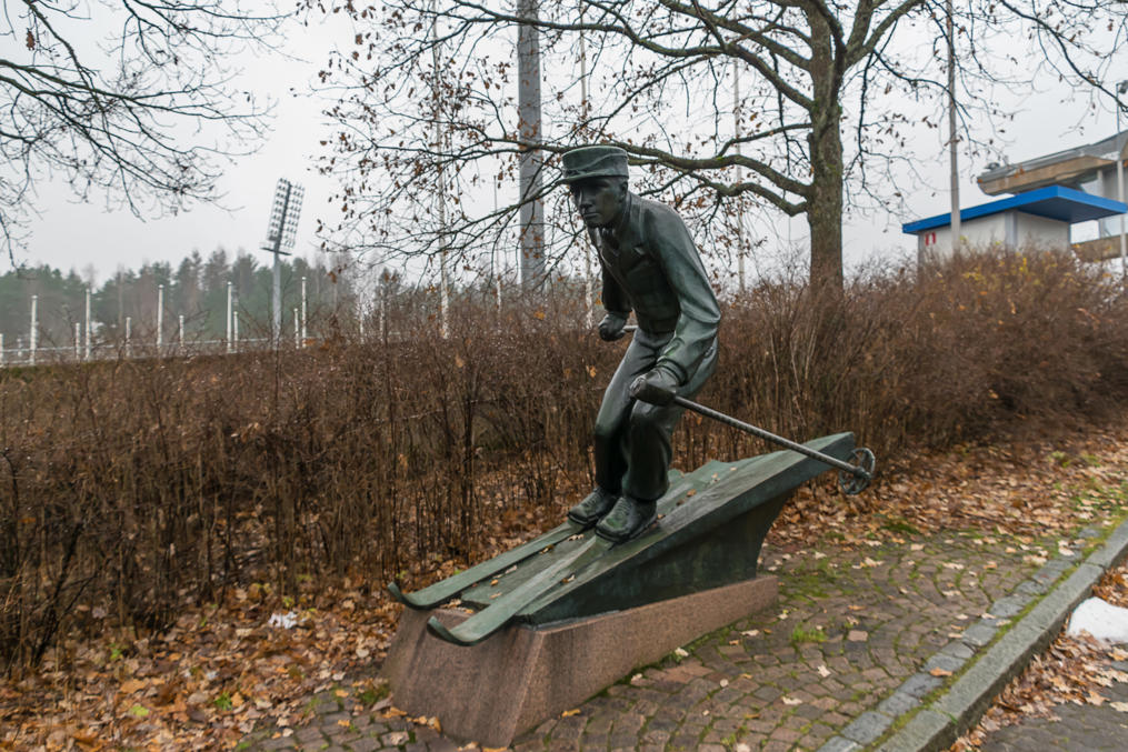 25. Памятник лыжнику (1938), моделью для которого послужил Тапани Нику (Tapani Niku), известный в те времена финский лыжник. Я сначала подумал, что это какой-то герой войны, из-за кепки — очень похожей или вообще той же, что в финских войсках носили в годы Зимней войны/Войны-Продолжения (можно увидеть, например, в трейлере нового фильма "Неизвестный солдат"). Кстати, она получила прозвище verikauha (верикауха) — "черпак для крови".