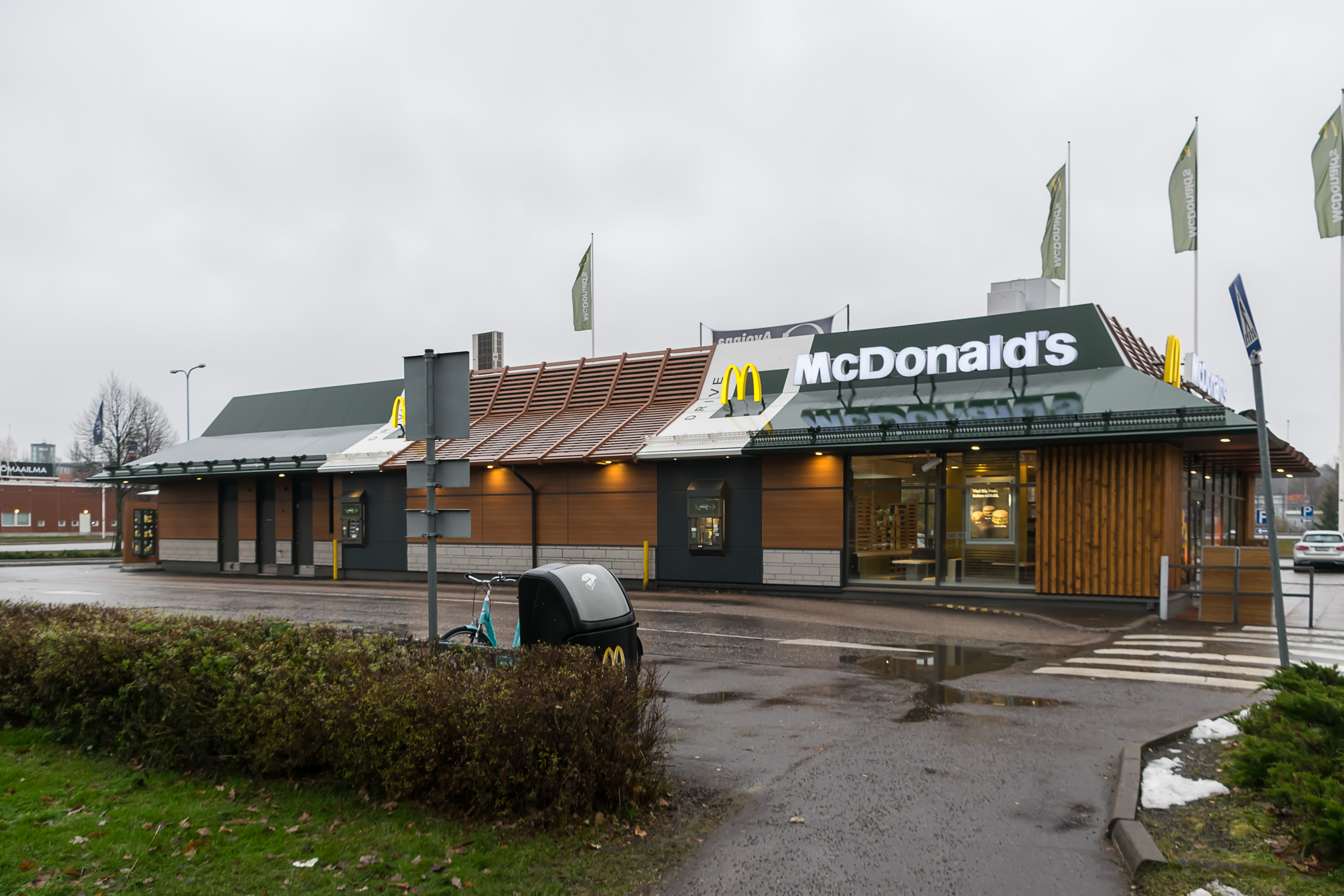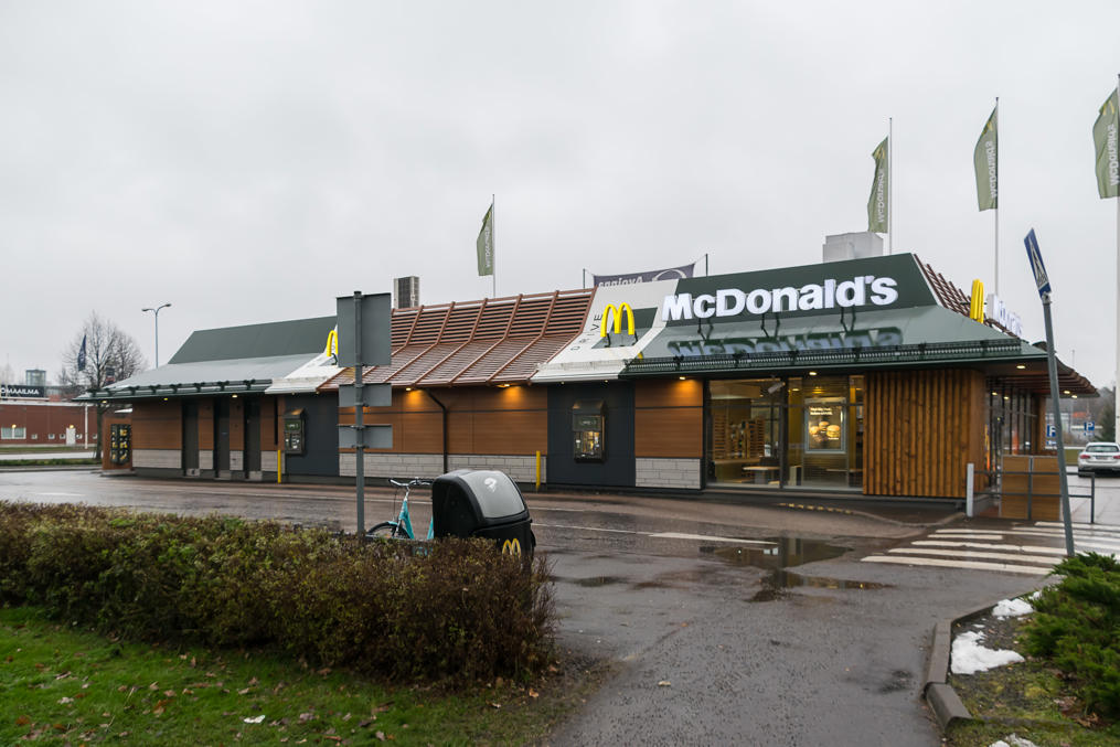 1. Примерно в 8:20 по финскому времени мы слезли с поезда, который немедленно укатил дальше в Хельсинки. Мы решили, что неплохо было бы чем-нибудь позавтракать. Круглосуточный Макдоналдс выглядел очевидным вариантом, хотя в Лахти единственный Макдоналдс располагается довольно далеко от центра.